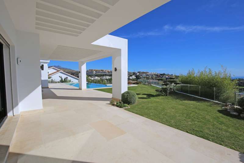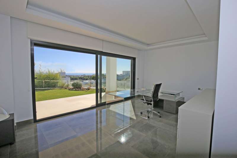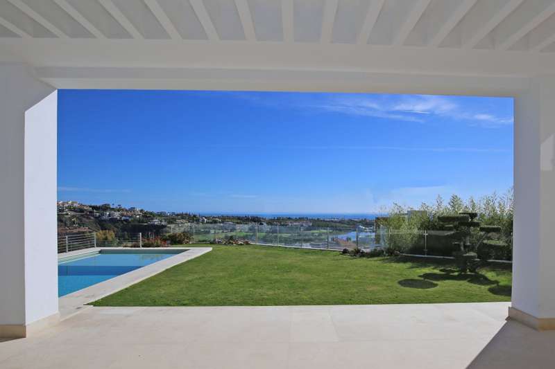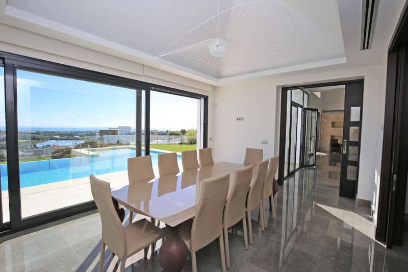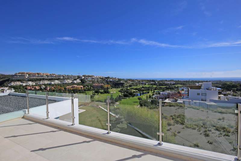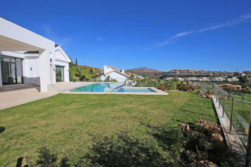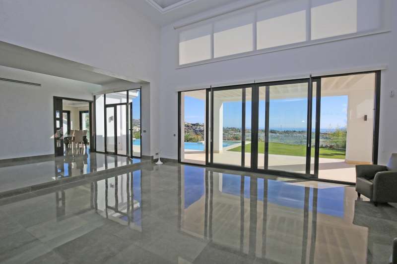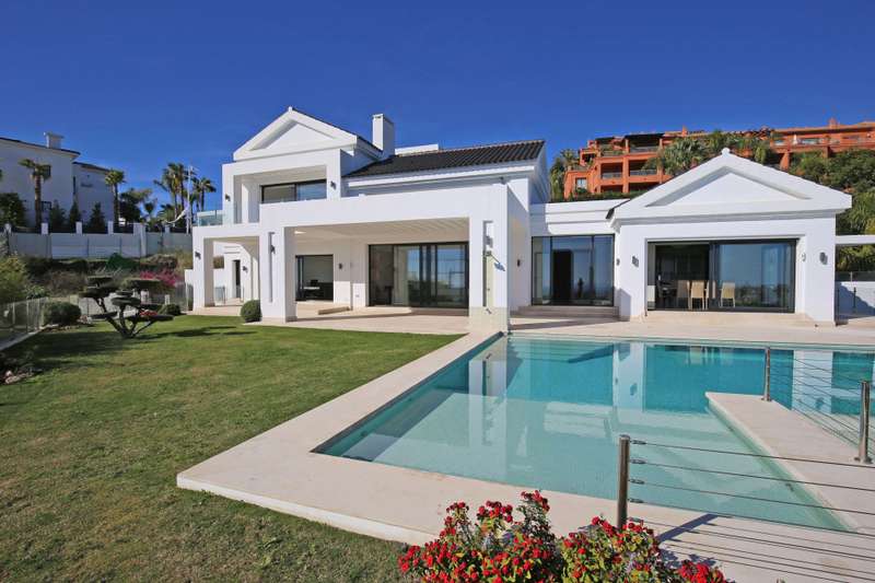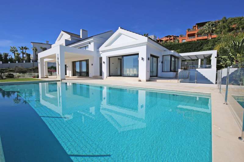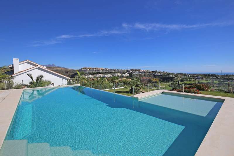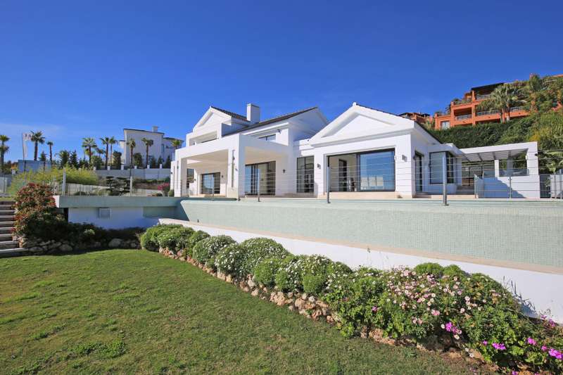 Stunning south facing six bedroom villa in the prestigious and gated community of Los Flamingos Golf; just a ten minute drive to Puerto Banus, Estepona town centre and all amenities. This fantastic property was completed in 2016 and consists of five bedrooms; six bathrooms; an open plan living room with sliding doors leading to the private garden and swimming pool with spectacular sea, golf and mountain views; dining room; fully fitted kitchen; home cinema room; wine cellar; games room; gymnasium; sauna; Turkish bath; and a guest apartment with independent access and kitchenette. Other features include hot and cold air conditioning, underfloor heating, electric blinds, elevator, alarm system, marble floor, fitted wardrobes throughout, full demotics, 24hr security, spacious driveway and a private garage.