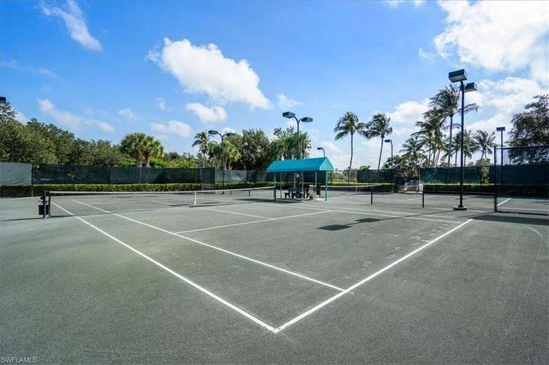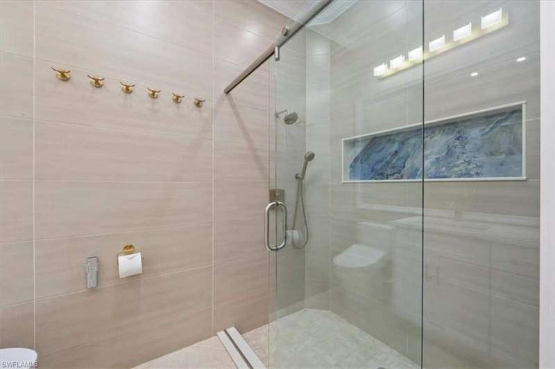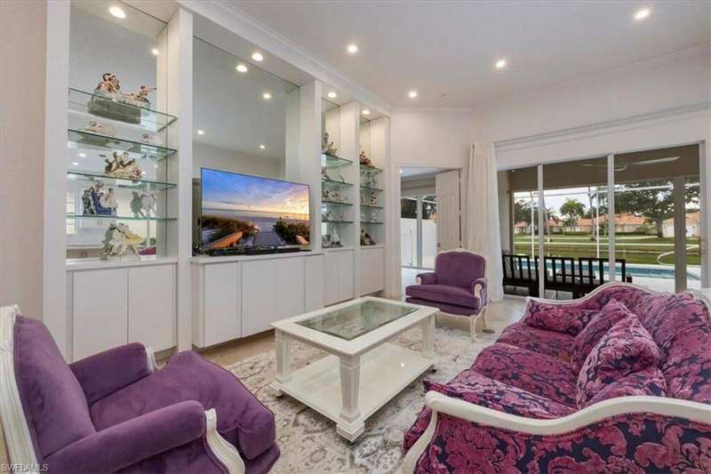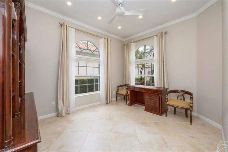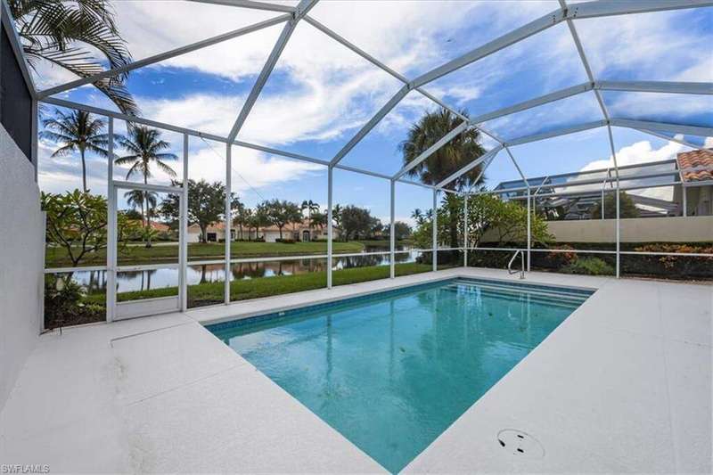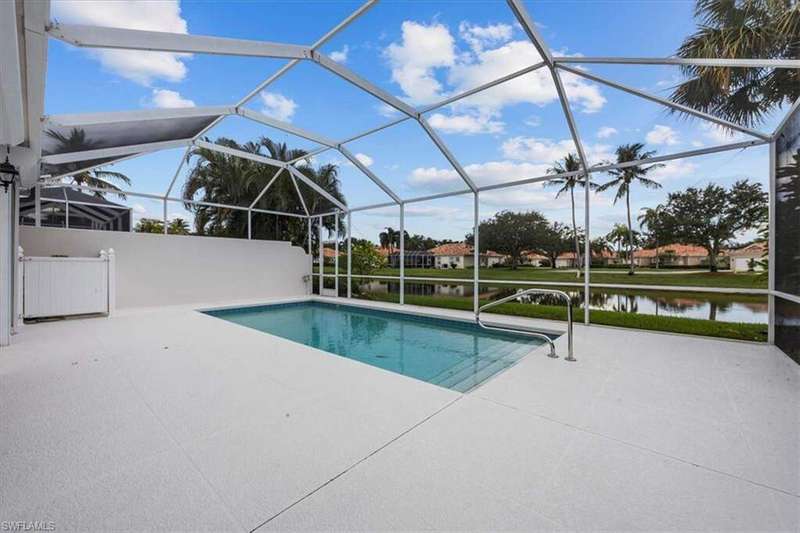 Sunset views and resort-style living in Village Walk in beautiful Naples, FL! Enjoy breathtaking sunsets every night from your own private, western-facing, solar-heated saltwater pool. This outstanding, reimagined Oakmont floor plan offers 3 bedrooms, a den/home office, 3 full baths, and a 2-car side-load garage with an epoxy floor and brick paver driveway. The stunning kitchen showcases custom cabinetry, quartz countertops, a freestanding island, and Cafe appliances - perfect for entertaining. The primary suite features generous closet space and a beautifully renovated bathrooms (2 primary bathrooms) highlighted by a striking tiled feature wall. Additional upgrades include 20-inch porcelain tile set on the diagonal, roof replaced in 2019, new AC in 2023, freshly painted exterior with the new hoa approved color pallet, crown molding, hurricane protection, and a custom built-in bar. The home's private setting backs to a cul-de-sac with no direct neighbor behind and is surrounded by lush landscaping and charming potted plants. Located in an interior section of the community, this residence offers peace and privacy while being close to everything. Village Walk is one of North Naples' most sought-after communities-just under 5 miles to Vanderbilt Beach and the shopping and dining at Mercato. Residents enjoy an active lifestyle with tennis, pickleball, a fitness center with lap pool, two resort pools, a restaurant, miles of scenic walking paths, and more!