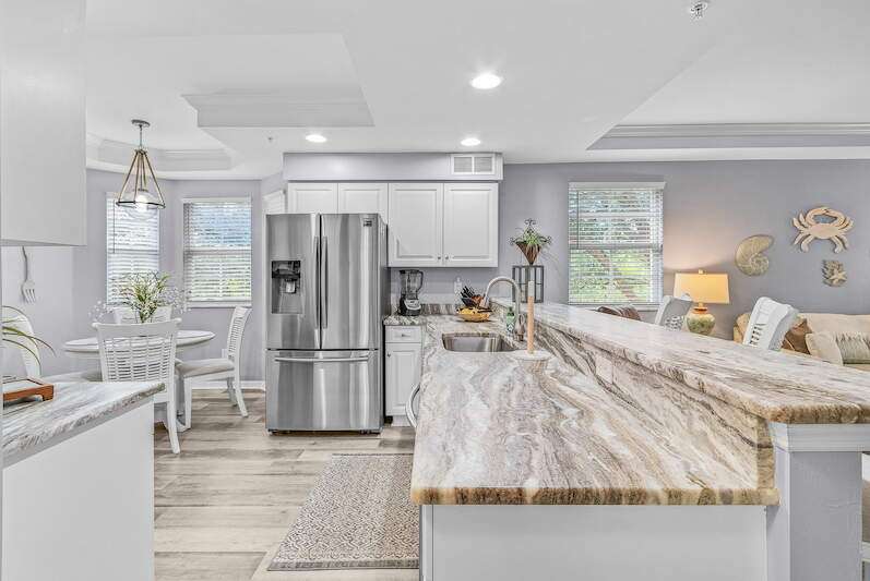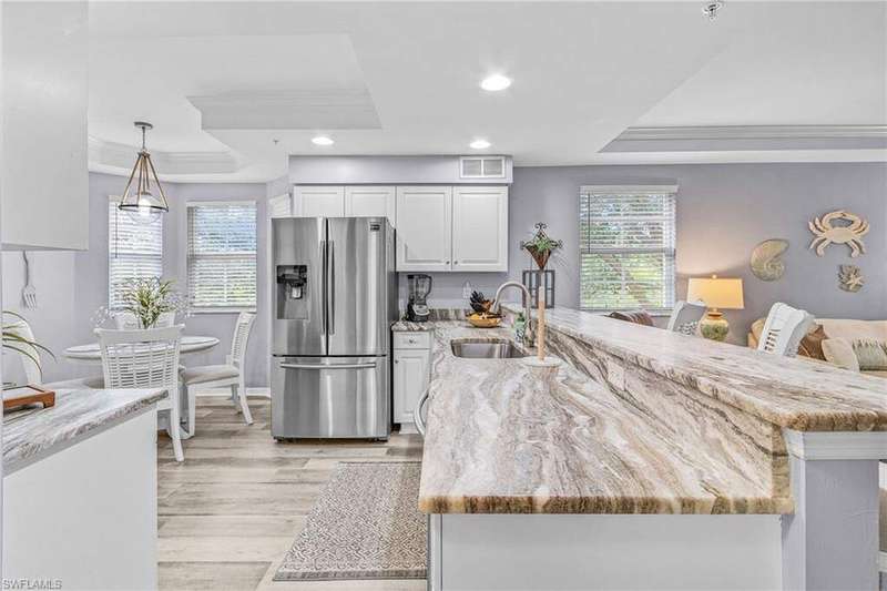 Why wait for interest rates to go down when home prices will just go up? Seller is offering to buy-down the interest rate at 1% for 2 years! Come and walk right into your TURNKEY Florida Oasis ready to enjoy right away! This beautiful end-unit condo spaciously designed, boasting 1,395 sqft will not disappoint with its nautical decor and warm natural light throughout. As you walk in you can see why the end-units are the upmost desirable with the extra space and sunshine kissing each room. Onto the beating heart, The Kitchen, which is enhanced with stainless steel appliances, unique top shelf granite counter tops & breakfast bar, overlooking the main entertaining area making it a breeze to host guests. The owner's quarters are fit for a king and queen, with a view of the water & nature and an en-suit which has been completely/artfully updated. Centrally located, right behind Publix and many other popular businesses, the highly sought after Island Cove Gated Active Community offers comfort in security, fun in its full list of amenities & Waterfront Direct Gulf Access (no bridges) while being one of the BEST bang for your buck when it comes to HOAs. Do you want to have your boat on the property? There are plenty of available docks/boat lifts for lease and options available for sale. *VETERAN FRIENDLY*