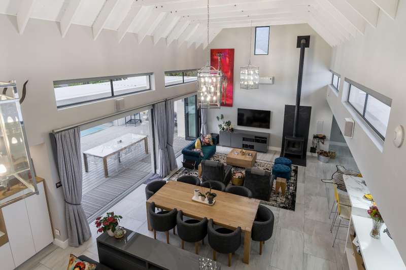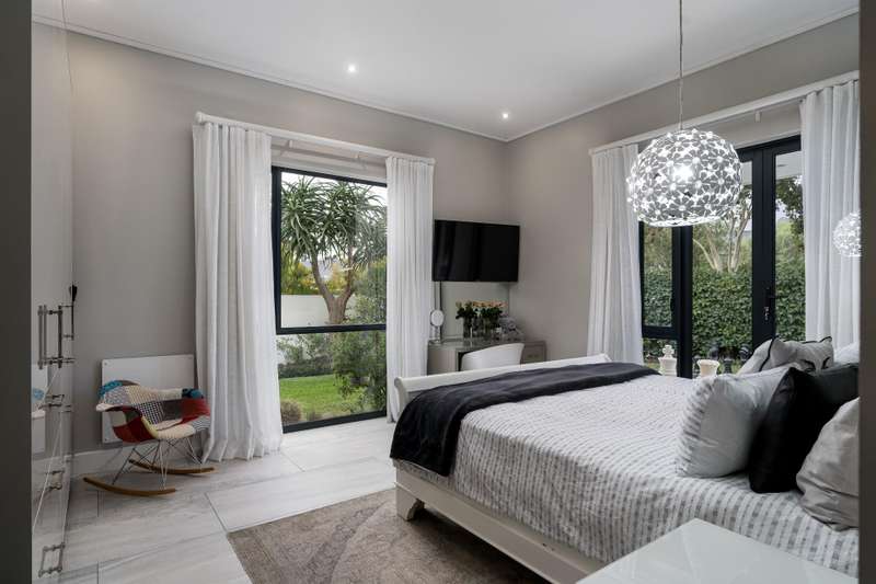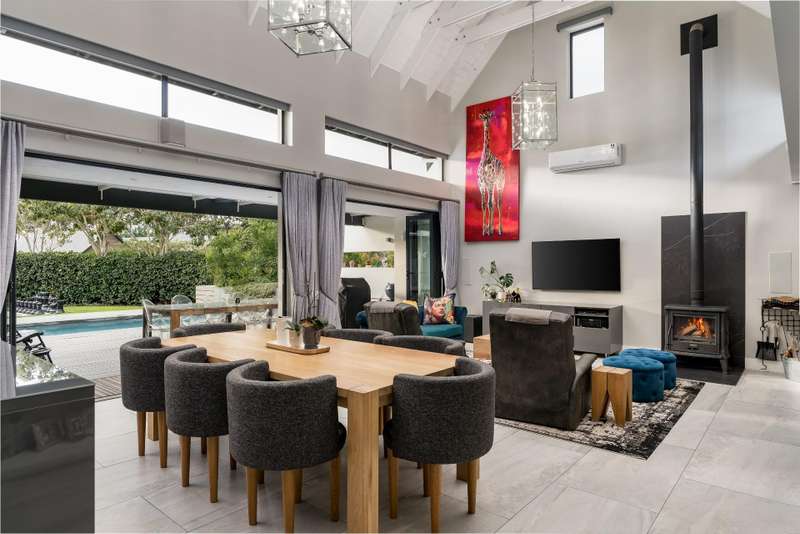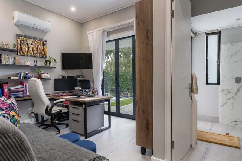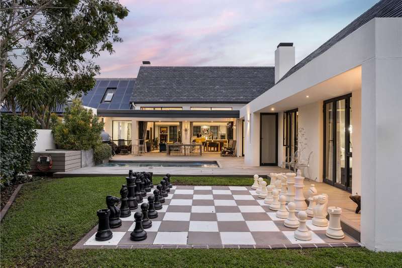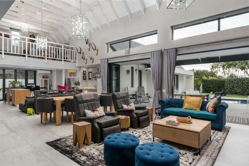 Exclusive Sole Mandate Welcome to an exceptional property within the prestigious Pearl Valley Golf & Country Estate, a true haven for golf enthusiasts. This meticulously designed four bedroom home seamlessly blends practicality with luxurious and easy living. The modern open-plan layout features a striking North-facing double-volume entertainment area, filled with natural light and opening onto a sunny patio, swimming pool, a unique chessboard, and a private garden. Upon arrival, you are greeted by an impressive six-car driveway and a vibrant indigenous garden. A charming peek-a-boo view towards the front door reveals the inviting pool and playful chessboard nestled within the lush garden. The heart of this home is the expansive double-volume multi-use kitchen and living area. A wood-burning fireplace creates a cozy ambiance in winter, while high ceilings and large sliding doors offer an airy and open feel for enjoying summer days by the pool. The beautifully appointed ELK kitchen features various working levels with top-of-the-range Dekton porcelain surfaces inspired by natural marble. Soft-closing drawers provide ample storage, and a spacious scullery with discrete sliding doors offers added convenience. The scullery also leads to a practical drying yard and thoughtfully designed elevated herb and vegetable planter boxes. Every detail of this property reflects careful consideration and expert craftsmanship, from the high-end modern finishes to the bespoke wine bar and elegant indoor braai area, perfect for hosting gatherings of any size. Fully automated, remote-controlled blinds allow you to adjust the natural light as needed. A clever loft study offers a secluded space for work, a library nook, or an art studio, overlooking the living area. Three sun-filled bedrooms, each with its own en-suite bathroom and direct garden access, provide private retreats. Further down the corridor, a generously sized walk-in linen cupboard and storage room have been thoughtfully integrated. Above the triple garage, a private apartment with its own entrance offers an exclusive space for guests, extended family, or live-in staff. This apartment is fully equipped with a kitchenette and lounge for added comfort and independence. The garage provides ample storage throughout and includes a conveniently placed laundry area. The outdoor experience is equally well-planned, featuring a 7000-liter capacity reserve slim-line water tank with two pumps running the reverse osmosis irrigation system. A large-capacity generator combined with sun panels, an inverter, and a battery system ensures uninterrupted 3-phase electricity comfort. The meticulously landscaped garden creates a private oasis, enhancing the tranquility and exclusivity of the outdoor spaces. This property is more than just a home; it's a statement of refined living, offering an extraordinary lifestyle within one of South Africa's most coveted golf estates.