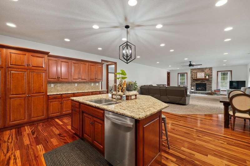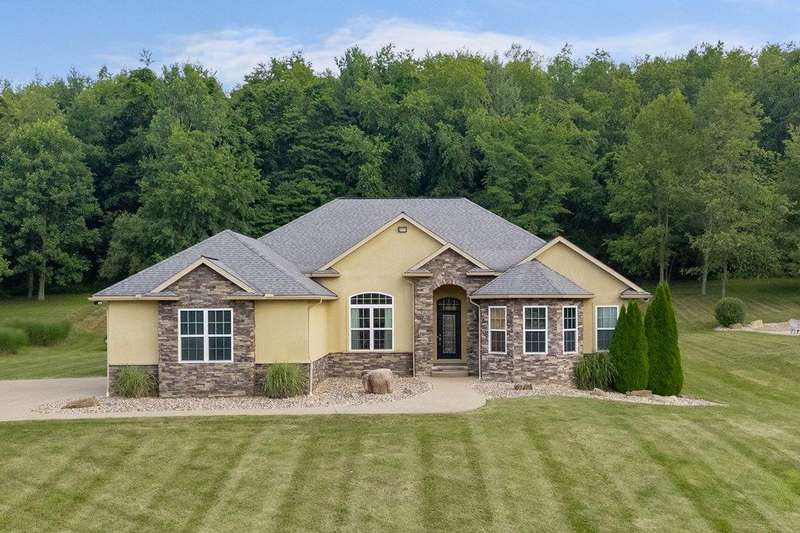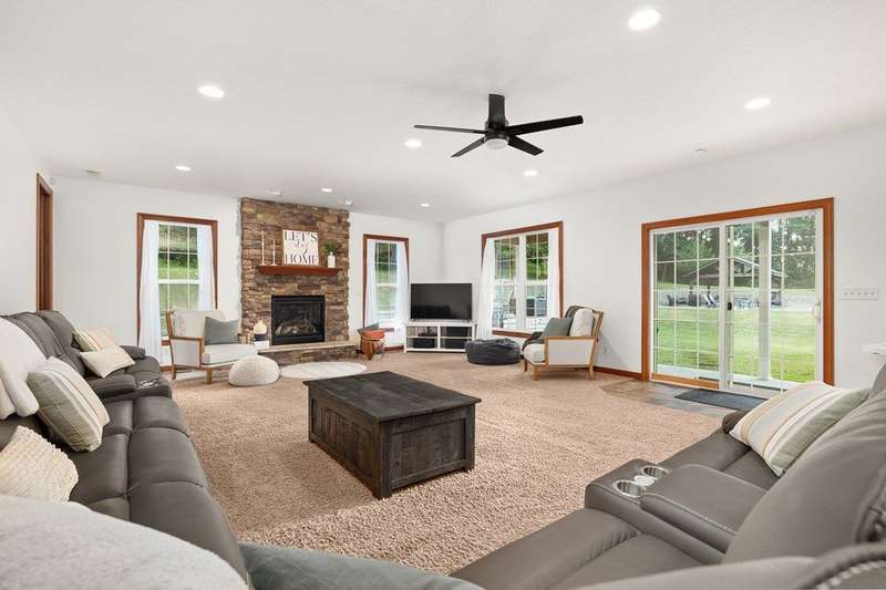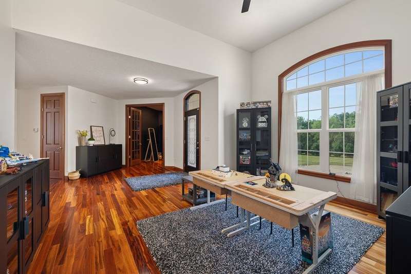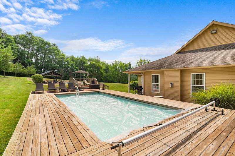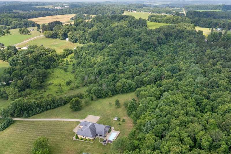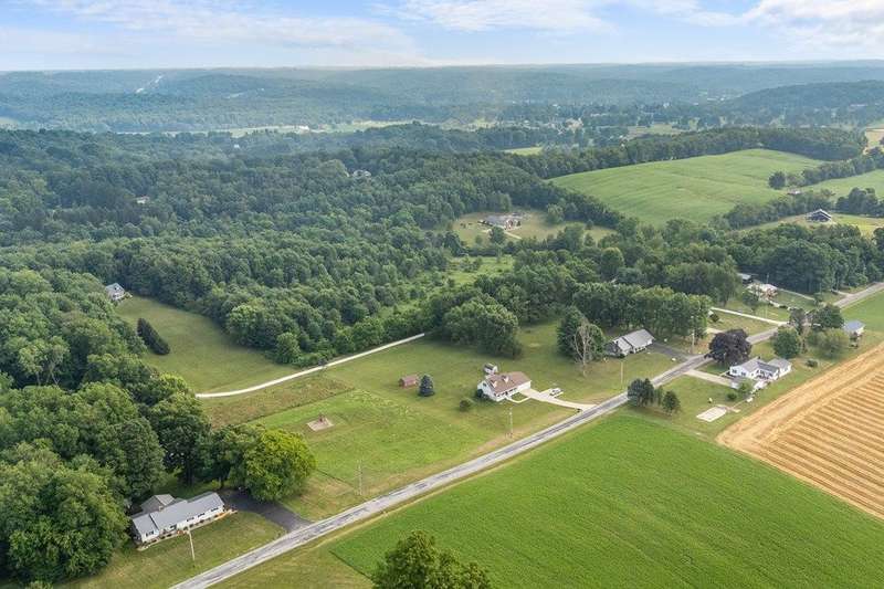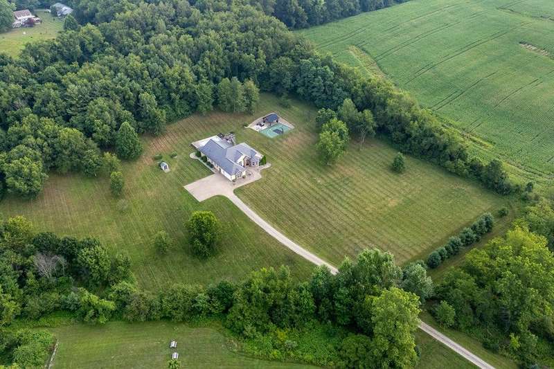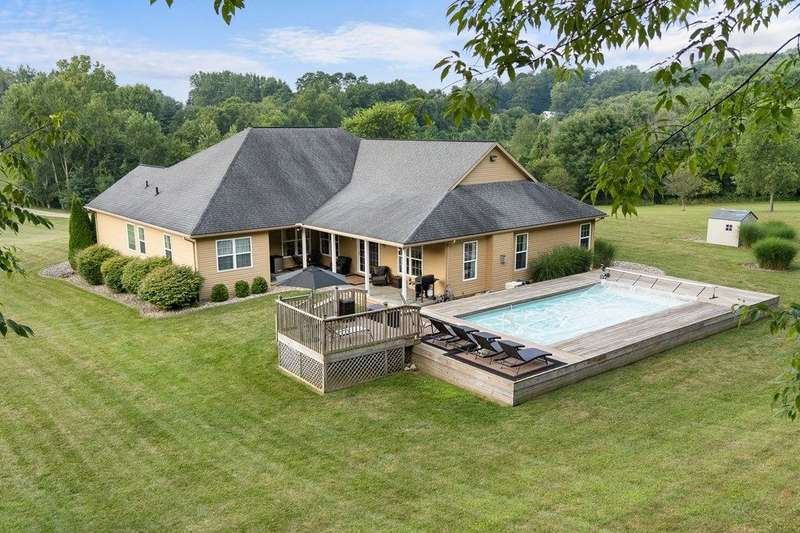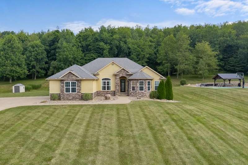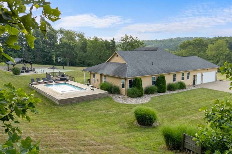 Discover your dream retreat on 21 secluded acres with this stunning 3,500 sq ft ranch in the Bellville countryside! This custom-built home features 4 spacious bedrooms and 4.5 baths, including a luxurious primary suite with a sitting area, walk-in closet, dual vanities, huge shower, and private porch access. The chef's kitchen flows into a massive living room with soaring ceilings and a cozy gas fireplace. Work from home in the large office! Open dining room and additional sitting area -- great for hosting! Enjoy main-floor laundry and tons of storage! Additional 2,000 sq ft of finished basement space -- including gym, wet bar, and gaming areas! Outside you will find an above-ground pool with deck, basketball court, pavilion, and scenic trails through wooded acreage. 3-car attached garage with separate basement entrance! This one-of-a-kind property is designed for comfort, privacy, and entertaining. Great location close to I-71 & St Rt 13!