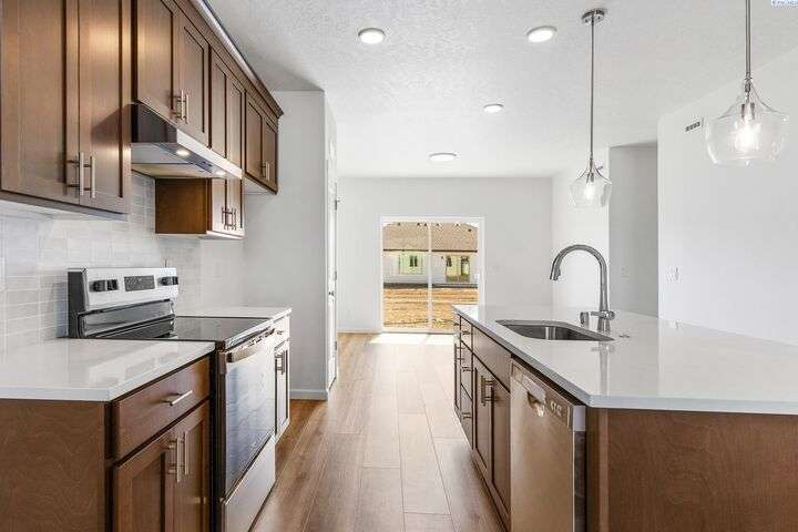 MLS# 287740 Grandridge Estates is located in Grandview, WA. Welcome to The Parker, this single-story floorplan offers 3 bedrooms and 2 bathrooms. As you step through the front door, you’re welcomed into a bright and spacious open-concept living space. The heart of the home is the kitchen, featuring a large island and pantry. The kitchen seamlessly flows into the dining area and great room. The Owner’s Retreat offers an ensuite bathroom. The two additional bedrooms are perfect for guests, children, or a home office, providing versatility to suit your lifestyle. Step outside to the backyard covered patio, where you can envision weekend barbecues or tranquil evenings under the stars. This home is Energy Star Next-Gen, featuring LED disk lighting, energy efficient appliances, water conserving faucets, blown in bibb insulation and more.
