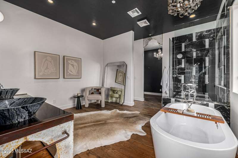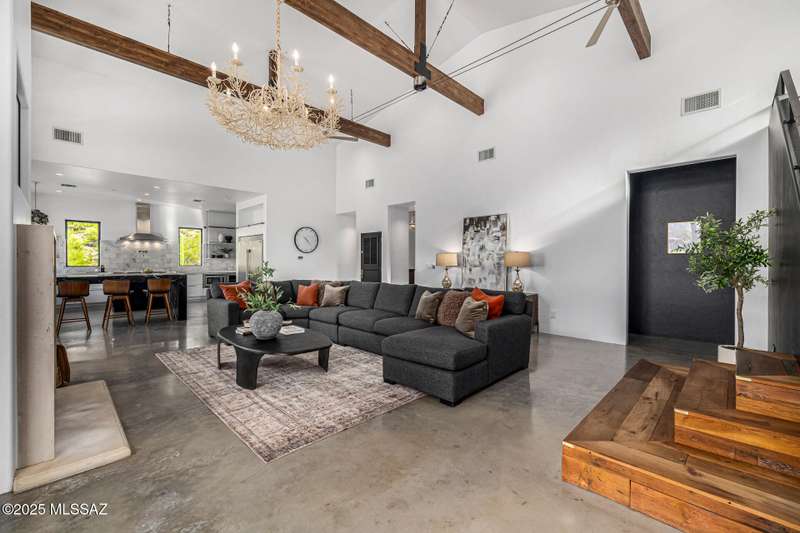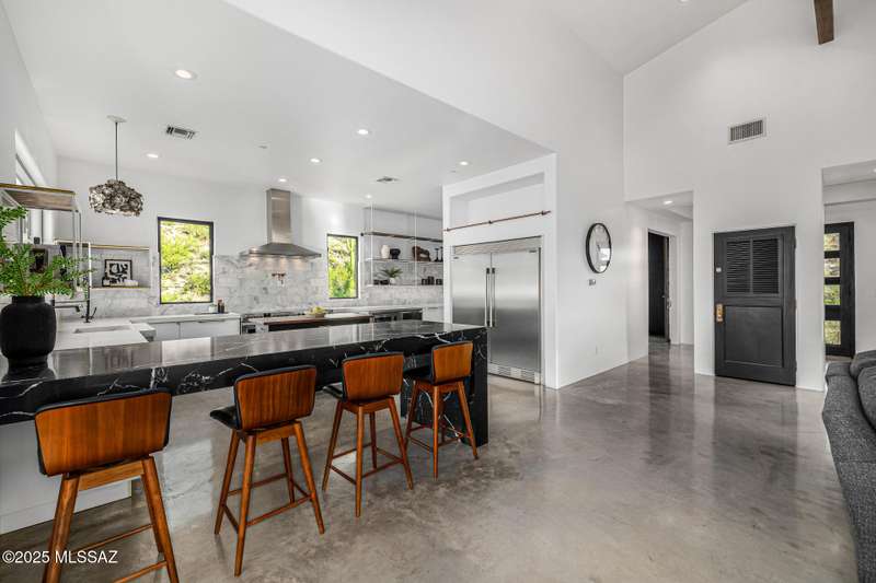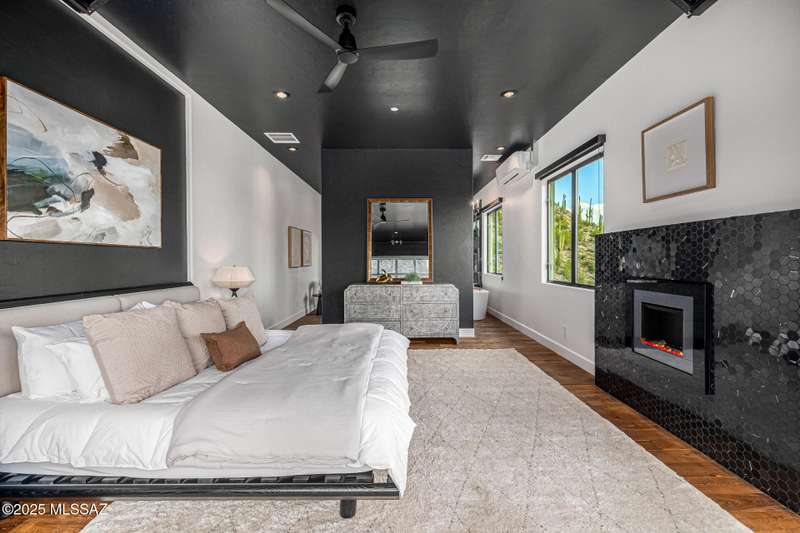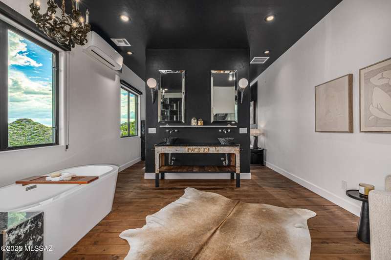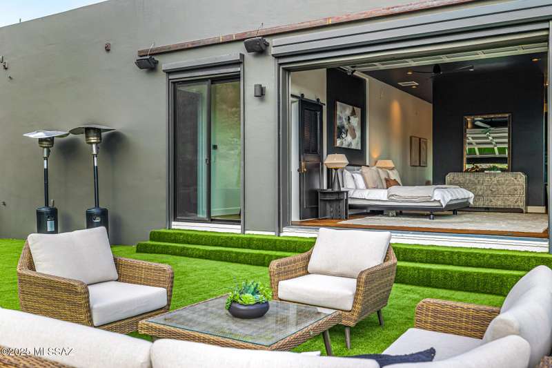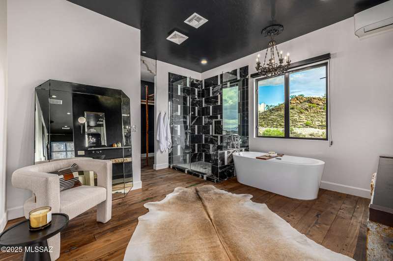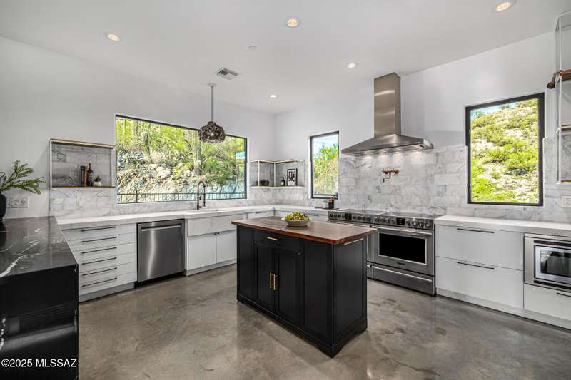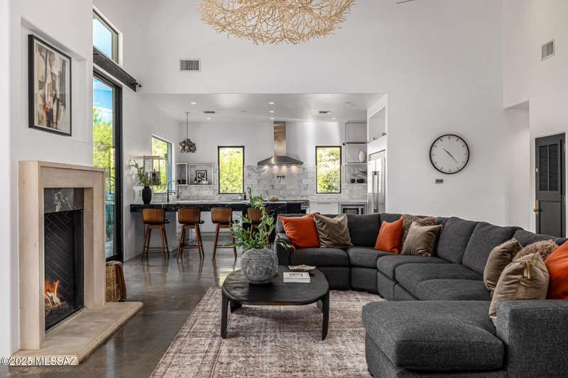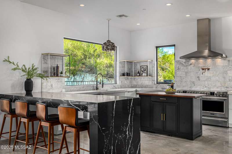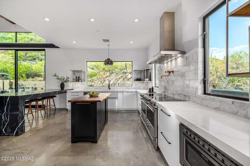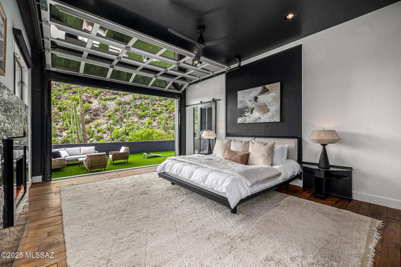 Nestled deep in the scenic Tortolita Mountains, this fully custom-built 2018 estate combines refined design with extensive upgrades inside and out. The property welcomes you with an asphalt driveway, elegant paver accents, and professionally landscaped grounds featuring outdoor lighting, solar lamps, a decorative fountain, and a custom-finished front entry. All the doors used in the home were from the historic Hotel Hidalgo! The roof has been resealed and the exteriors freshly repainted. Enjoy resort-style outdoor living with a sparkling pool (new heater), a mesquite-mantle fireplace with a custom screen, propane starter, built-in barbecue mechanics, and decorative fencing. Set against a backdrop of untouched desert beauty, the estate offers breathtaking 360-degree panoramic views of