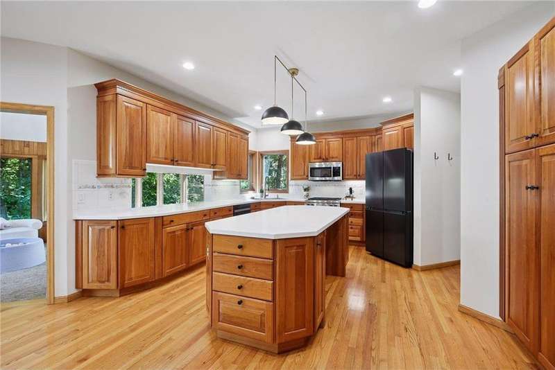 Nestled in a peaceful wooded setting, this immaculate 5-bedroom, 5-bathroom home offers exceptional space, comfort, and style in Burnsville’s Summit Oaks neighborhoods. From the moment you arrive, you’ll be captivated by the lush landscaping, stone paver patio, and private backyard oasis complete with a tranquil koi pond and multiple outdoor gathering spaces, including a cozy firepit ideal for evening entertaining. Step inside a grand vaulted foyer that opens to a formal sitting room and dining room, highlighted by custom millwork and a decorative gas fireplace. The living room features expansive picture windows, built-in cabinetry, and another gas fireplace, ideal for cozy evenings or relaxed gatherings. The heart of the home is the gourmet kitchen, boasting cherry cabinetry, a massive center island, stainless steel appliances, decorative tile backsplash, and butler’s pantry. Peek-through to the sunroom, with rich wood detailing, drenched in natural light. Upstairs, the primary suite is a true retreat, with dual sided fireplace, a huge walk-in closet and a spa-like bathroom featuring a jetted soaker tub and walk-in shower to help you relax and recharge. Four additional bedrooms, one which offers its own private ¾ bath, plus an extra full bathroom add to the home’s functionality. The lower-level walkout includes a spacious great room and inviting sitting area, ideal for family gatherings or movie nights. The wet bar features a beverage cooler and wine fridge, complementing the adjoining game or exercise room with a private wine cellar tucked in the closet for connoisseurs. The additional bedroom and 3/4 bathroom on the lower level provide versatile space for guests or a home office. The oversized 4-car garage with storage loft provides ample space for hobbies or gear. This one-of-a-kind home blends elegance, space, and lifestyle in a prime location close to schools, parks, and easy freeway access. The home inspection has been completed for you. See supplements for photos, tour, Matterport Floorplan, and more. Don’t miss this opportunity to make this remarkable home your own, schedule your private tour today!