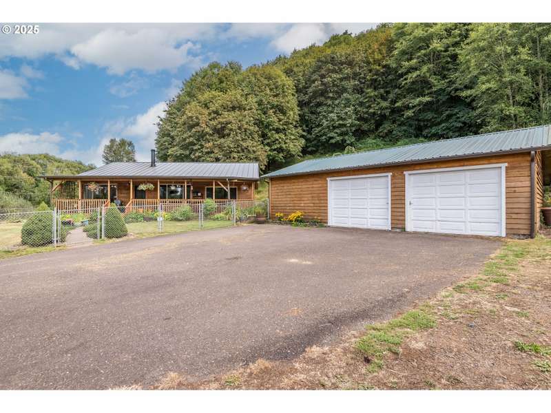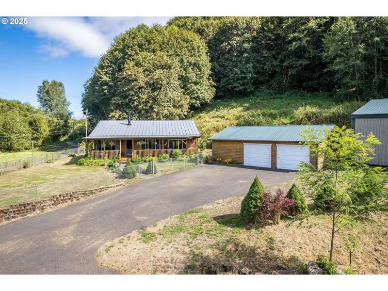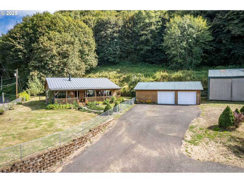 Charming Country Home on 5+ Acres – priced to sell. If you've been dreaming of the perfect rural lifestyle—this is it! Welcome to peaceful country living on over 5 acres with everything you need for a mini farm or hobby homestead. This cozy, well-cared-for home features a covered front porch to enjoy your morning coffee or evening sunsets.Inside, you'll find: Warm hardwood flooring in the living room, a pellet stove for efficient heating during the cooler months, a bright, spacious kitchen with access to a large laundry room—perfect for storage, a second fridge/freezer, or even space to add a second bathroom, a large family room that opens to the fully fenced backyard.Recent UPDATES include a new electrical panel and new septic tank, giving you peace of mind and modern efficiency.But the real magic is outside: Oversized garage (1,440 sq ft) with space for a studio or office...Massive shop (1,600 sq ft) with RV parking...6-stall barn for animals or storage...49 raised planter boxes for gardening—or remove them and use the area for pasture...Fruit trees, raspberries, figs, and more!This property offers endless possibilities—whether you're into gardening, raising livestock, or just enjoying wide open space. Located conveniently between Portland and Astoria, you’ll enjoy rural living without feeling too far from town.Don’t miss this opportunity! Schedule your private showing today and start living the farm life you've always imagined.