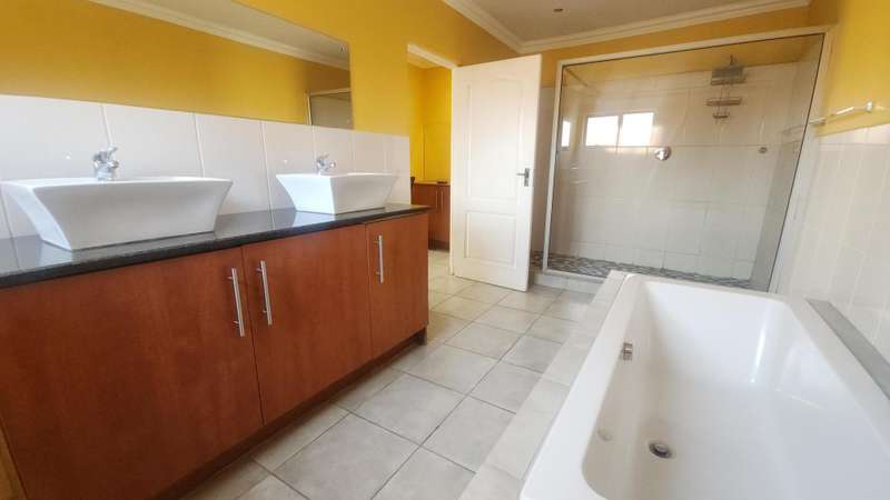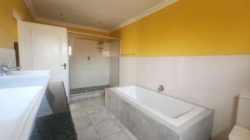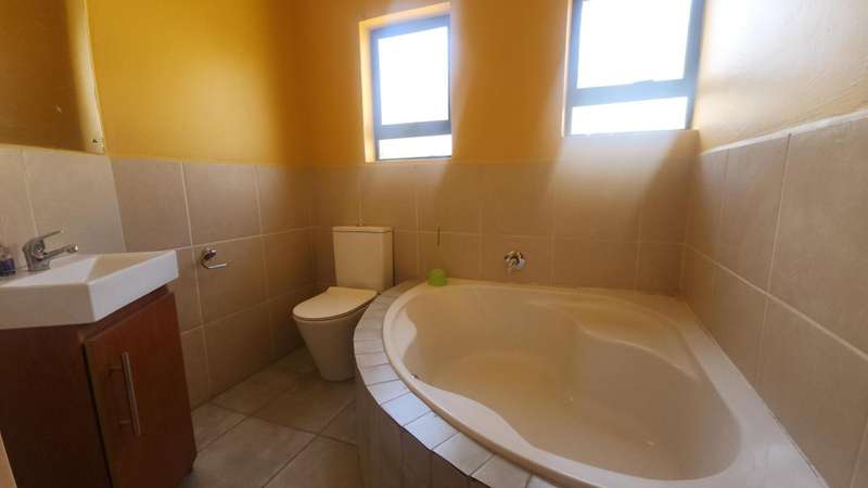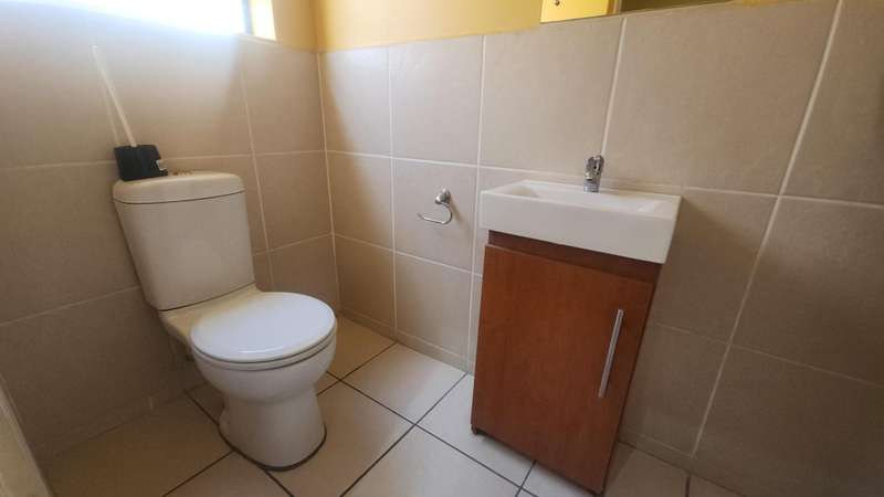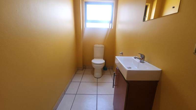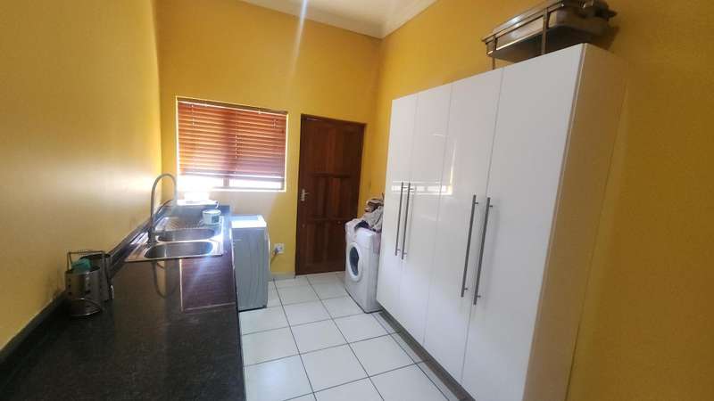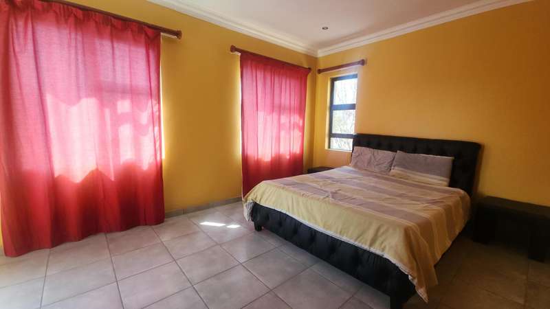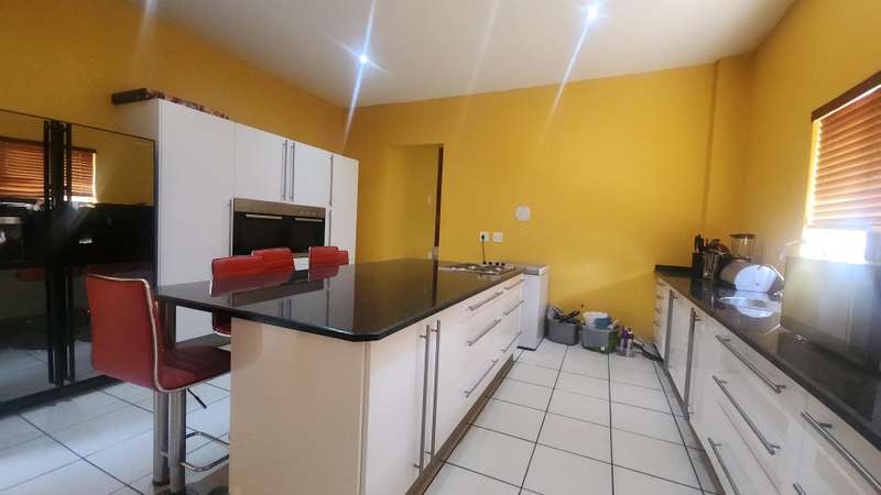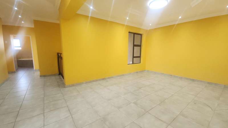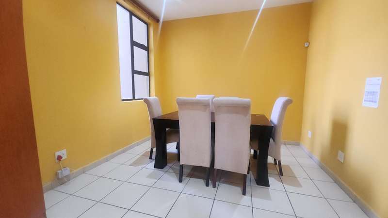 This spacious town house offers you not two or three bedrooms but FIVE bedrooms! Two bathrooms and a guest toilet as an extra. Three living areas with ample space. The kitchen with tiled floors and granite tops. Staff quarter consisting of 1 bedroom. Double wooden door garage. Water tank and pump. Sparkling swimming pool and well kept garden A townhouse of such space is hard to come by, so call me now to view