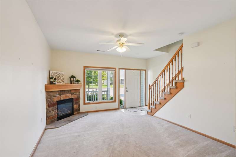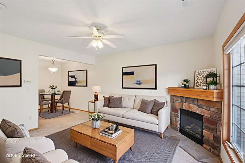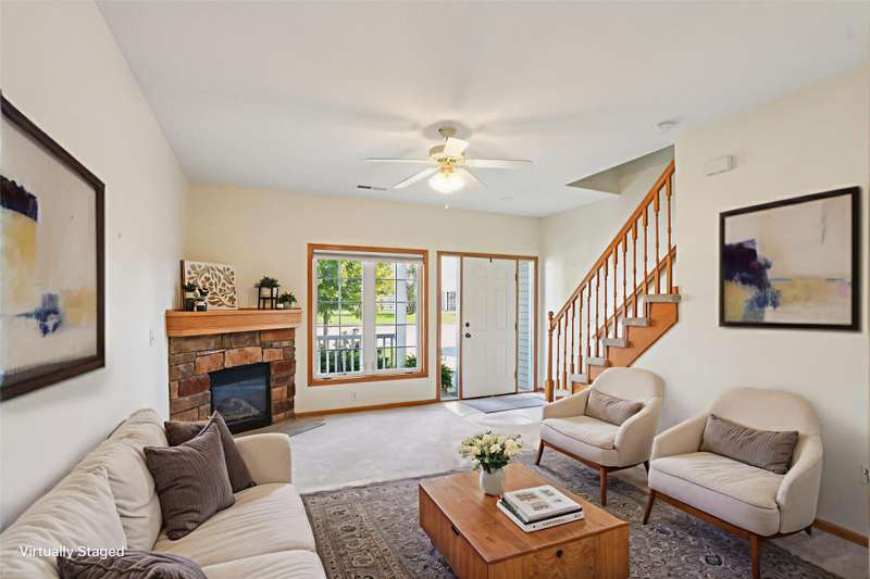 Welcome to this charming and well-cared-for home offering 2 bedrooms, 2.5 bathrooms, and 1,195 sq. ft. of comfortable living space designed to suit many different lifestyles. A quaint front porch is perfect for morning coffee or evening relaxation, while inside youll find a spacious kitchen that opens to a large living area with a cozy fireplace and convenient half bath. Upstairs, both bedrooms feature their own en-suite bathrooms and walk-in closets, providing comfort and privacy. Peace of mind comes with recent updates including a new furnace (Feb 2024), new water heater (Feb 2024), and new roof (2023), New Stove (2022), New Dishwasher (2021). This home also offers easy, worry-free living with no mowing or shoveling requiredtruly move-in ready and waiting for its next happy owner!