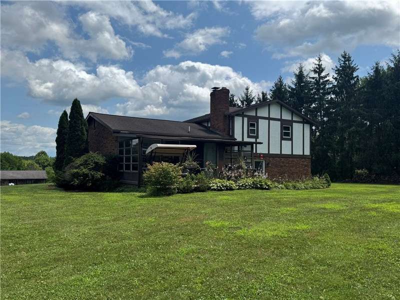 A long, paved driveway leads to this aesthetically pleasing Tudor-Style home where the formal entry opens into a cozy family room anchored by a classic brick fireplace. Just a few steps up, the main level unfolds with a gorgeous, fully equipped oak kitchen, a spacious dining room that flows seamlessly into a bright 3-seasons room overlooking the serene backyard, and a large, sun-drenched living room. Upstairs, comfort and tranquility await in three well-appointed bedrooms. The primary suite features an en-suite bath with a ceramic-tiled shower, while a second full bath serves the additional bedrooms. The basement has been professionally waterproofed by Champion Waterproofing and comes with a lifetime transferable warranty?offering peace of mind and potential for future finished living space. Set on nearly three-quarters of an acre, this property combines timeless charm with modern convenience?just minutes from Routes 108, 19, 388, and I-76/I-79.