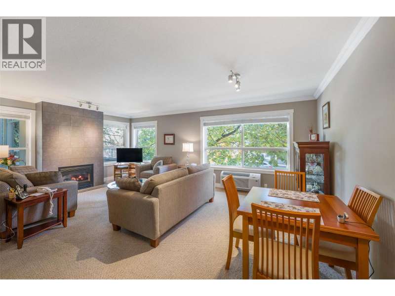 Spacious, bright, and move-in ready! This updated 2-bedroom, 2-bath corner unit in Copperstone Gate offers approx 1,281 sqft of thoughtful, comfortable living in a quiet 55+ community just minutes to Downtown Kelowna, KGH, the Capri Centre Mall and Pandosy Village! Inside, the open floor plan features updated floors, stainless steel appliances, a gas fireplace and a new split unit for efficient comfort year-round. The kitchen with breakfast nook opens to an expansive living area with easy access to an oversized balcony — including a large enclosed space ideal for morning coffee or evening reading, and a covered southwest corner deck tucked into the trees! The primary bedroom also offers balcony access, a walk-in closet and 4-piece ensuite with accessible shower. The second bedroom makes for the perfect home office or guest room equipped with its own private balcony adjacent to the secondary 3 piece bathroom. This condo has its own laundry room and secure covered parking in a well-kept, pet free, community-minded building with an amenity room! Step outside to the Ethel Street pedestrian corridor—perfect for walks, cycling, and effortless lock-and-leave living in the heart of town! Close to city transit, this condo is a short drive to coffee shops, restaurants, parks, doctors offices and all the amenities Kelowna has to offer! (id:7434)