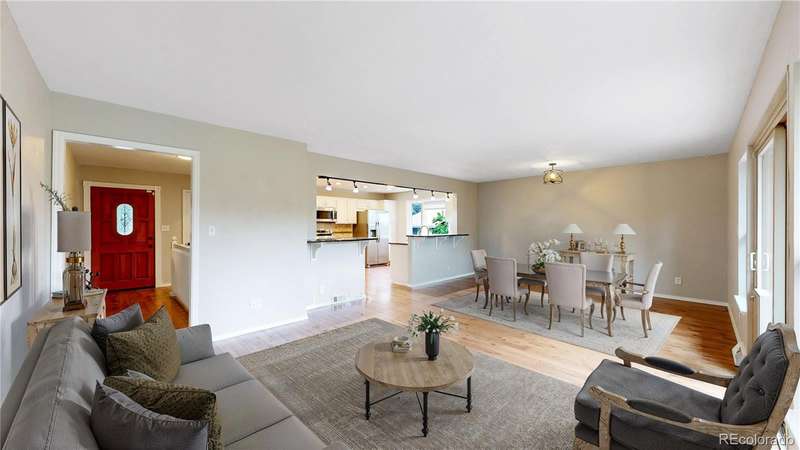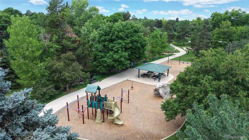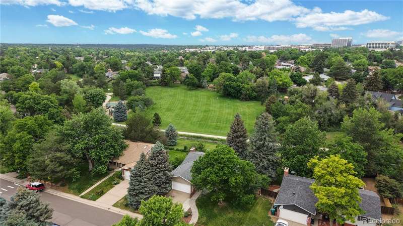 WELCOME TO WALNUT HILLS & this 4 Bed/3 Bath Home Backing to Walnut Hills Park! One of the Rare Homes that not only Backs to this Quiet, Interior Neighborhood Park but also boasts a Fantastic Walk Out Basement that will offer any Buyer added room & function. There's not one but Two Beautiful Decks to enjoy Serene Views of the Park and Peak-thru Views of the Mountains! Beautifully landscaped with Mature Trees, this Enormous 9,322 SF Lot has garden areas, Flat, low maintenance Turf perfect for family, friends, kids & pets, a Gorgeous Upper Composite Deck right off the Main Great Room, a Huge Lower Level Extended Wood Deck perfect for Entertaining or Install a Spa, since Electric is already wired. The Fully Fenced Backyard comes with an Outdoor Shed and has a Back Gate which allows you to extend your living enjoyment right out into the Park & Walking Trails. The Main Level is a Great Floorplan w an Open Concept Family Room, Dining Room & Huge Kitchen with ever appealing white cabinets, Stainless Steel Appliances, Undermount Beverage Cooler, Granite Tile Counters & Convenient Bar Seating too! The entire home provides a neutral palette throughout that was newly painted in 2023. The Bathrooms have all been updated & the upper and lower Level Full Baths have New Shower Door Enclosures & Refinished Tile. The Walkout Basement is a Fantastic Feature of this home w a 4th Conforming Bedroom & Cedar Lined Walk In Closet and a Large Family Room that walks right out to the Lower Level Deck & Yard. The Utility Rm has HVAC Equip that is all New, Radon Mitigation, Utility Sink, Newer Washer & Dryer and Tons of Storage! Sellers Installed an Additional Electrical Panel & had the Aluminum Wiring in this 1971 Home entirely Mitigated w Copper Pigtails in 2023. There is NO HOA-No Costly Monthly Fees but Walnut Hills has a Civic Assoc w Year Round Community Events. Award Winning Cherry Creek HS and Campus MS. *Be Sure to Watch the Drone Video Link*