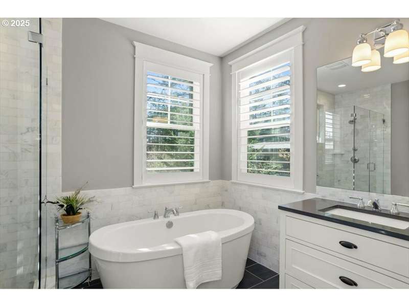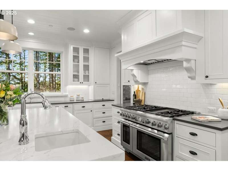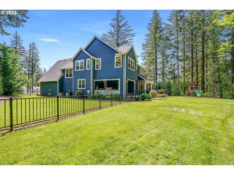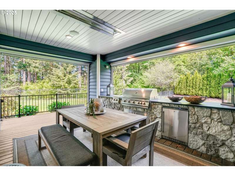 This immaculate, custom designed traditional home with elegant details will delight the most discerning buyers. Situated on a quiet, .87 ac estate size lot, it is a private oasis located just minutes from downtown or the Sunset corridor. The dramatic great room floor plan with 20' ceilings opens with a 16' expandable glass wall to a flat backyard bordered by tall trees. Every detail has been carefully thought out from the chef's center island kitchen w/Thermador & Miele appliances, a butler's pantry, in-home office/library with custom built bookcases and box beam ceiling, luxurious primary suite and a secret door opening to a large bonus room with a wet bar. Outside living offers a large wrap around deck with a gas fire pit and a covered dining area with a built-in barbeque. It's all here for you to enjoy! [Home Energy Score = 6. HES Report at https://rpt.greenbuildingregistry.com/hes/OR10155194]