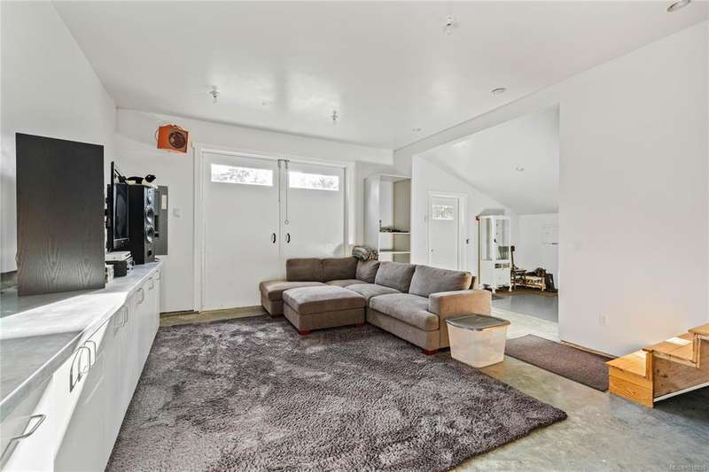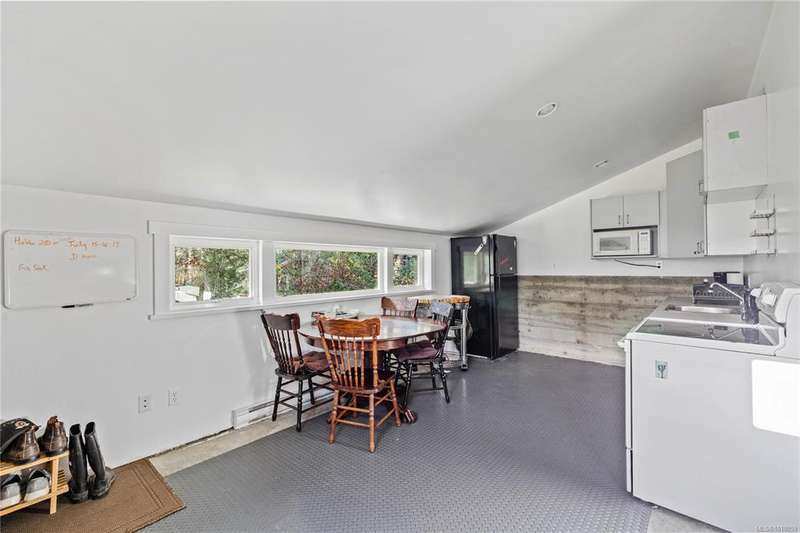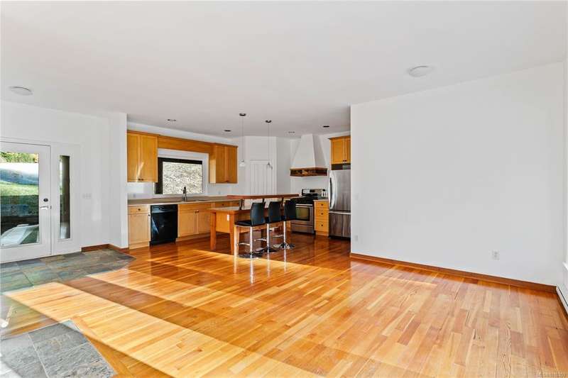 A stunning 1.9-acre oasis, glorious south-facing sunshine and lush greenery views. The well-maintained, split level light-filled home has an open kitchen, windows welcoming the natural light. Sunny decks for outdoor enjoyment and a pretty fenced yard area to play, which can be easily expanded for a market/hobby garden or sustainable “grow your own” lifestyle. A studio/workshop/garage is a great flexible space waiting for you and your imagination. Additionally the poll barn is equipped with pluming for a travel trailer/RV. All this and a quick drive to town or a 10 minute walk!
