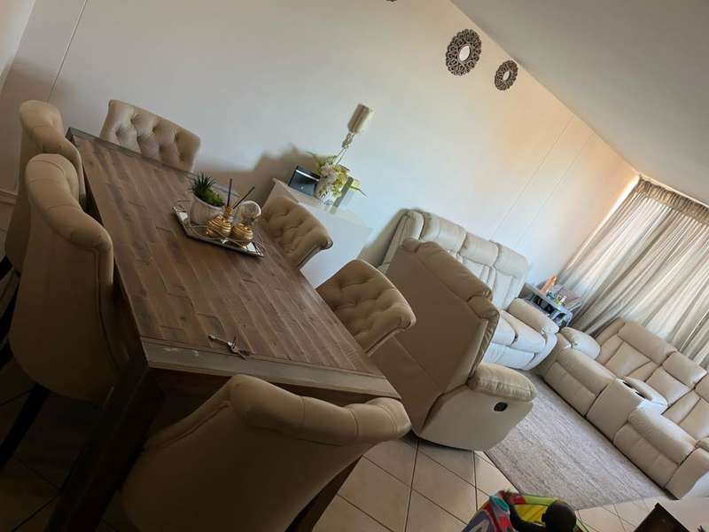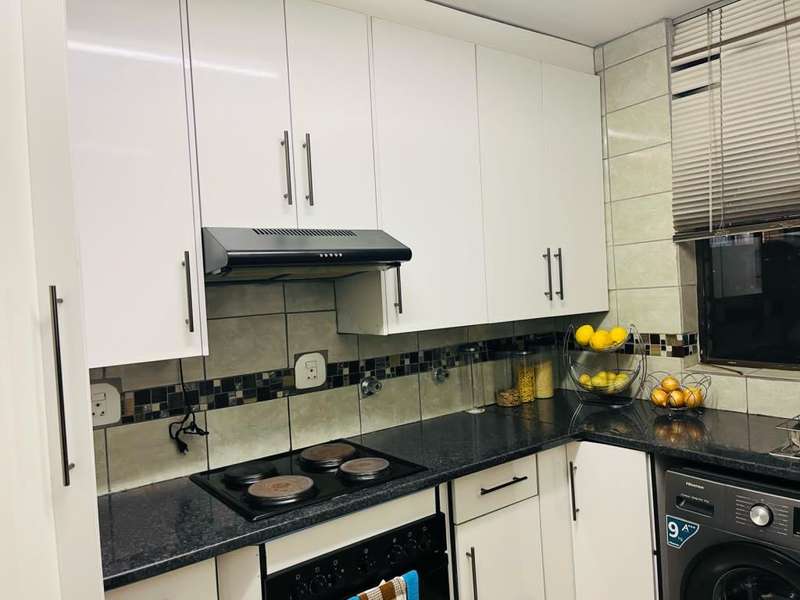 The 3 Bedroom flat offer a spacious dining area and living room. In the kitchen you greeted with a relax atmosphere to enjoy your cooking whilst catching up on your day with loved ones. It is furnished with modern kitchen built in cupboards. Making it enjoyable to test out your Master Chef cooking skills and be the next Jamie Oliver in the making, who knows. Down the long passage you find a full bathroom with bathtub, basin and toilet. The spacious main bedroom offers the En suit bathroom with toilet and build in cupboards with lots of packing space. The other two bedrooms also has build in cupboards. The entire flat is tiled with white walls. The flat is situated in the center of all major transport routes and easy access to highways. Loadshedding free area as it located next to Jaccaranda hospital. A walking distance from schools, shopping malls, police station and many more to name. All amenities in close reach whether you mobile, walking or simply making use of public transport. Book your appointment to see what the flat has to offer.