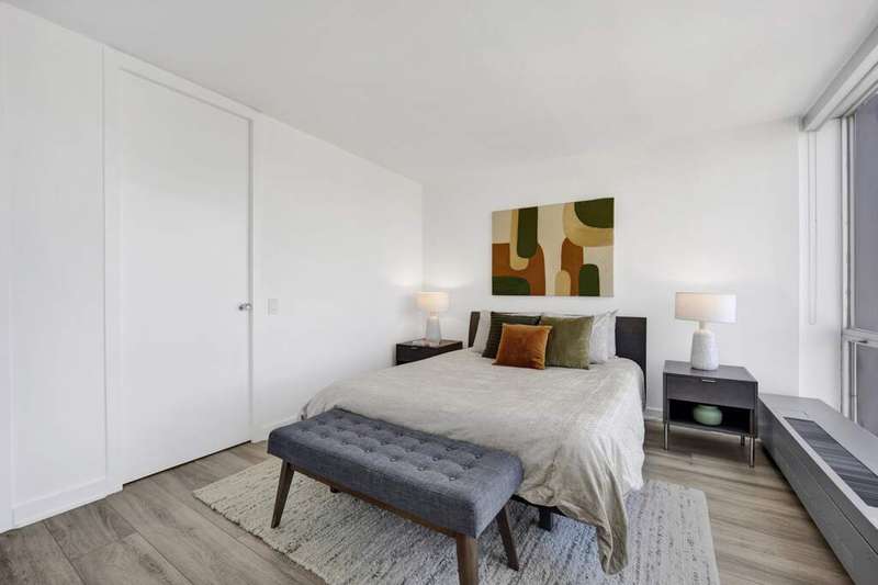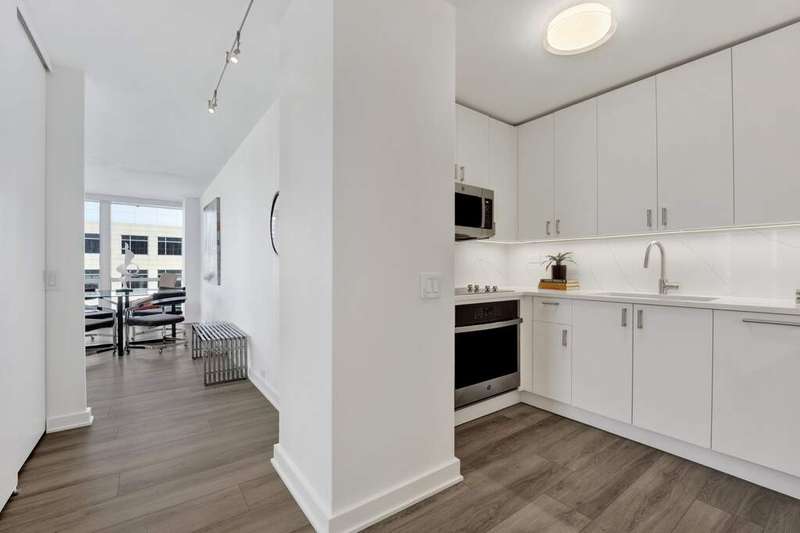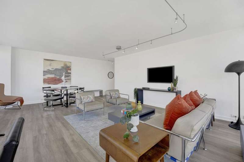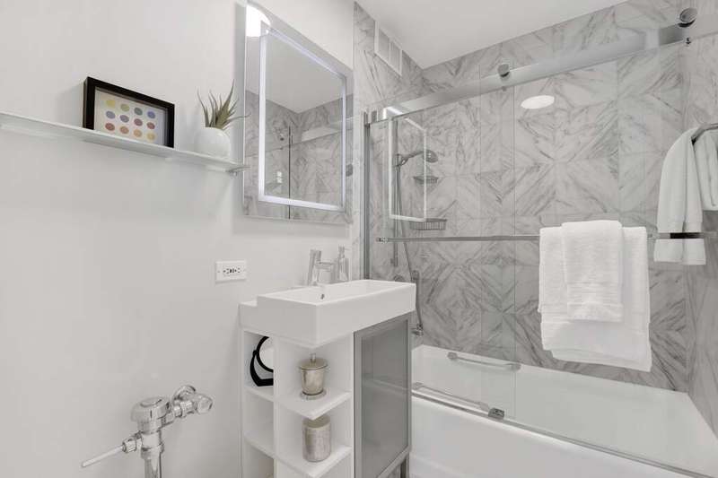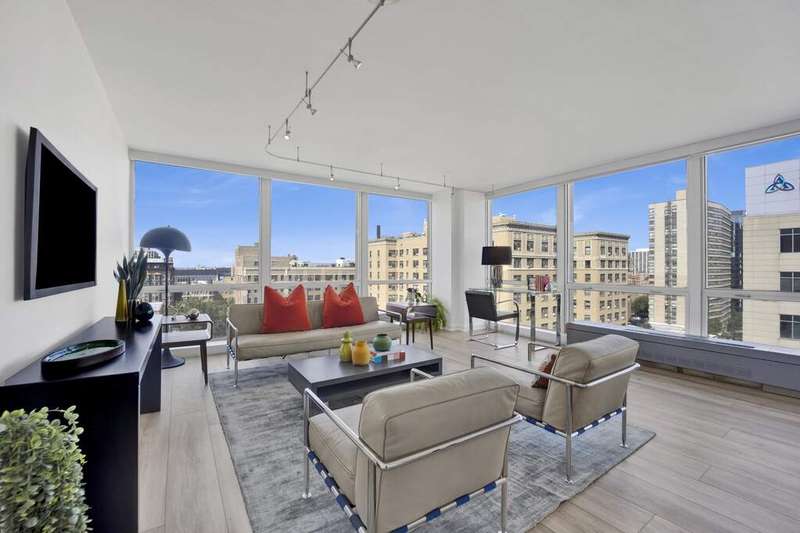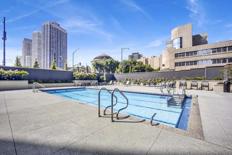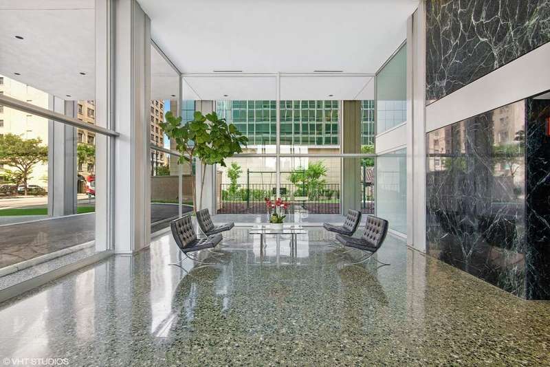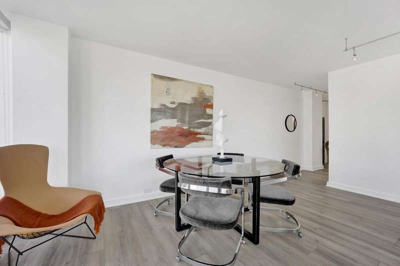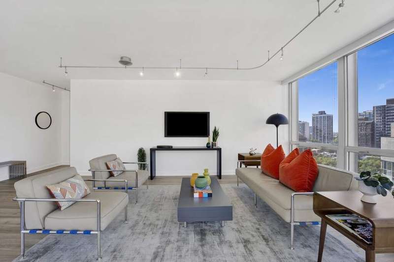 Fall in love with this newly renovated residence at Mies van der Rohe's iconic Commonwealth Plaza. The dramatic corner living room is bathed in natural light by day and glows with sparkling city views by night from two walls of floor-to-ceiling windows, creating an inspiring backdrop for both entertaining and relaxing. Thoughtful updates elevate the home throughout, including a sleek, brand-new kitchen with stainless steel appliances, updated bathroom features, luxe pale oak laminate flooring, updated lighting and chic window treatments. This is the one-bedroom you've been waiting for-modern, stylish, and move-in ready. Perfect as an in-town getaway, smart investment, or full-time residence depending on your needs. Strong condo association with amazing amenities and recent projects that enhance daily living, including the nearly completed surface and landscaping project of the pool and outdoor plaza areas and recently renovated party/hospitality room. This is an A+ location for public transportation and the best that East Lakeview has to offer, with proximity to lakefront trails, Diversey Harbor, Broadway and Diversey retail and nightlife corridors and more. Broker-Owned.