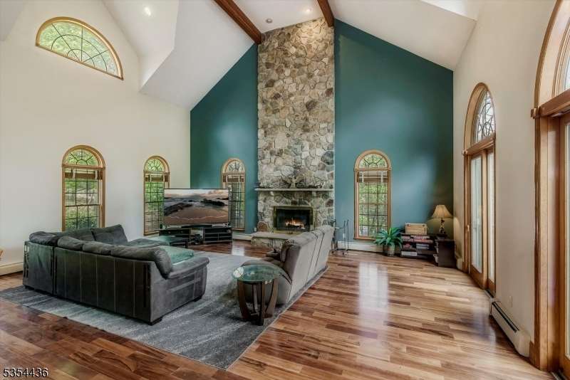 Beautiful oversized colonial and spacious estate in the desired Sunset Lakes community. This home features a gorgeous kitchen that is highlighted by granite counter tops, a large center island with ample storage, stainless steel appliances and sliders to the deck. Then step down to the great room with 30ft vaulted ceilings, a stone fireplace and French doors leading to the massive deck overlooking the property line and Sunset Lake! Once you walk through the double doors to foyer you are greeting by a stunning staircase welcoming 4 bedrooms upstairs. The primary suite entails an oversized sitting room, sleeping areas, two closets and a luxury bath with a jetted tub. The ground level hosts an optional in-law suite with 5th bedroom and full bath, full bar area, viewing room, utility room and storage which also walks out with French doors. The property is lake front, private and secluded.*4 bedroom septic*