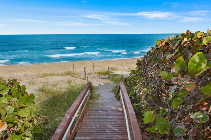 **Direct Oceanfront Community** Available February-April 2026. Located at the beach in Jupiter, this beautifully renovated 2nd floor residence is located steps to the beach, pool & tennis courts. Light & bright condo offering 2 large bedrooms, 2 renovated baths, custom kitchen with quartz countertops & stainless steel appliances, plantation shutters & tiled floors. Relax on the screened wrap-around porch while listening to the sounds of the Ocean & experiencing amazing sunrises. Walk miles of beach, fishing on the jetty at the Jupiter Inlet, pool, hot tub, tennis, pickle ball, fitness center, 24-hr manned gate. Golf next door at Jupiter Dunes GC. Walk to numerous waterfront restaurants & shops. A perfect beach retreat in a lovely resort setting in the sand on Jupiter Beach.