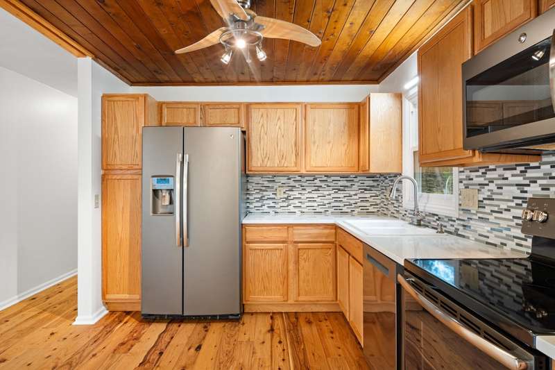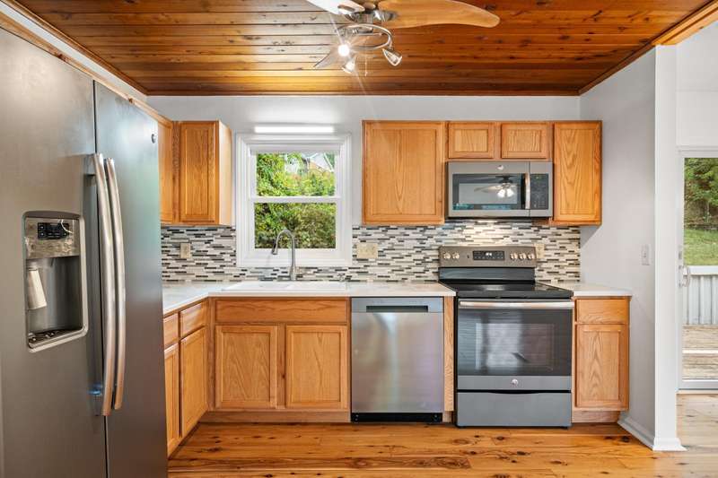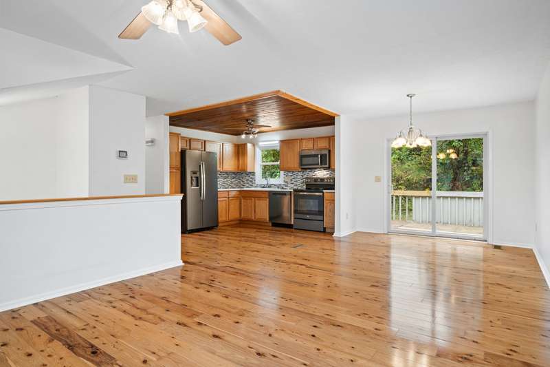 Welcome to this move-in ready split-foyer home in the Walnut Grove neighborhood of Christiansburg! Featuring 3 bedrooms and 2 full baths on the main level plus 2 additional bedrooms, full bath, and large family room on the lower level, this spacious layout offers over 2,000 sq ft of living. The remodeled kitchen boasts solid-surface countertops, oak cabinets, and stainless appliances, flowing seamlessly to the dining area perfect for entertaining. Enjoy beautiful Australian Cypress hardwood floors on the main floor and a cozy lower-level den. A laundry room with tile flooring, extra storage, and outside access add convenience. Just minutes from downtown Christiansburg, I-81, VT, and Radford, this home blends comfort, convenience, and location!