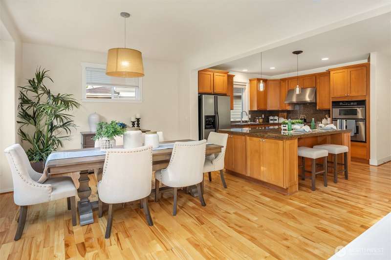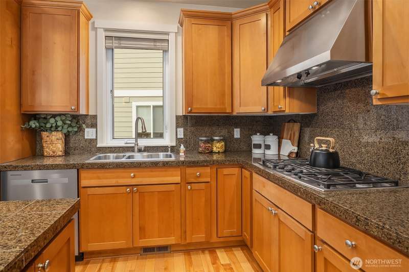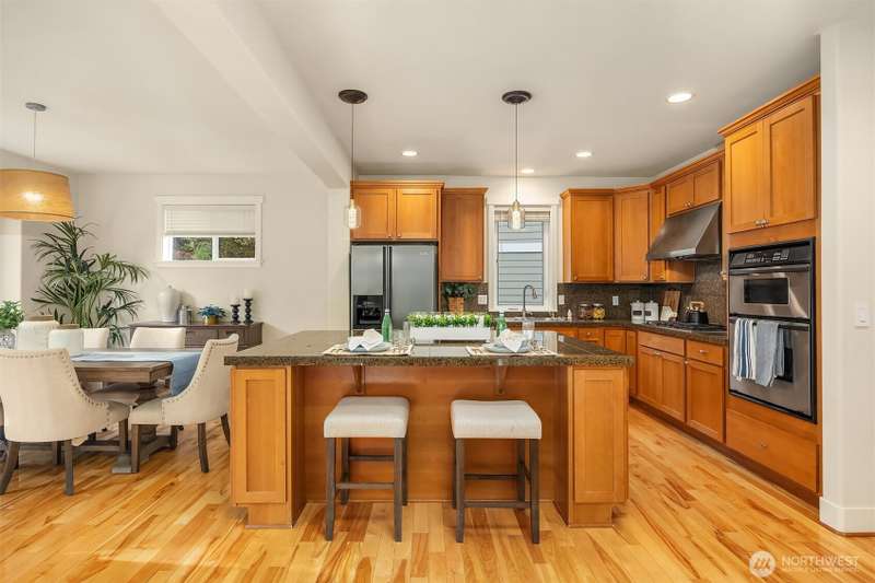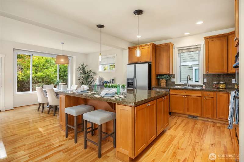 Impeccable Burnstead resale offering rare privacy and a spacious backyard—yet just steps from the energy of Issaquah Highlands. Set in a peaceful community, 3 BED+DEN+HUGE LOFT, it welcomes with a grand vaulted entry, French doors to the den, and rich hardwoods. The chef’s kitchen features granite counters/backsplash, an island, stainless appliances, and a gas range with hood. The great room centers on a cultured-stone gas fireplace. Double doors open to a serene primary suite with cathedral ceiling, walk-in closets, and a 5-piece tiled bath. Upstairs, enjoy mountain views. Outside: partial greenbelt outlook, organic veggie beds, and fruit trees. Minutes to Grand Ridge Plaza, parks, and trails—live serene, stay connected!