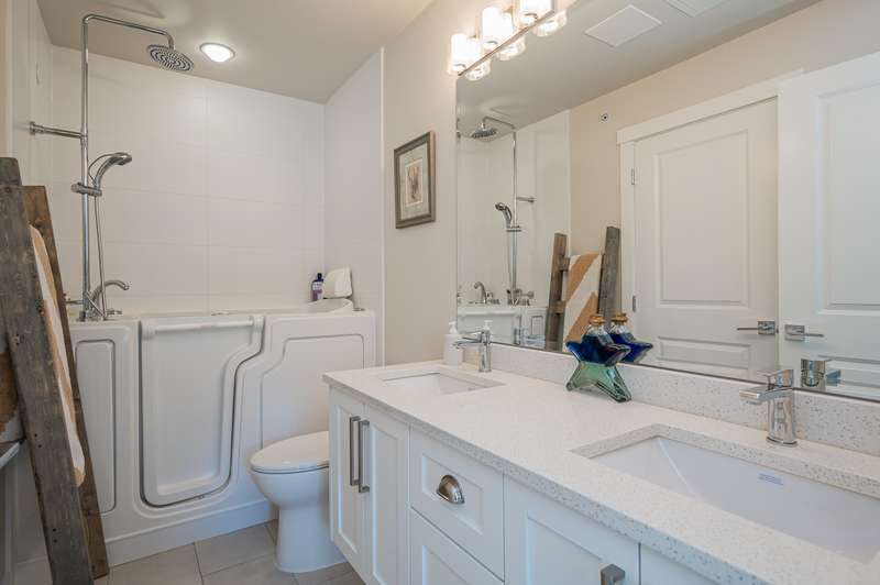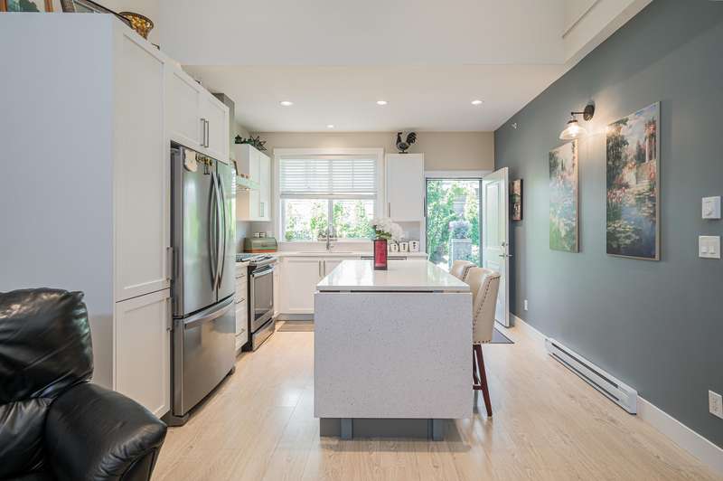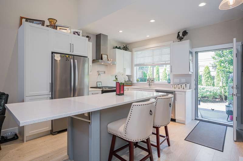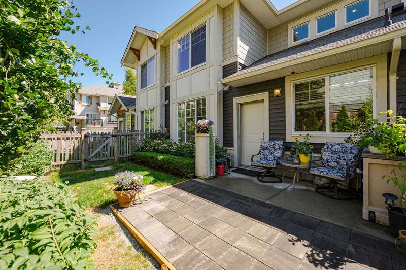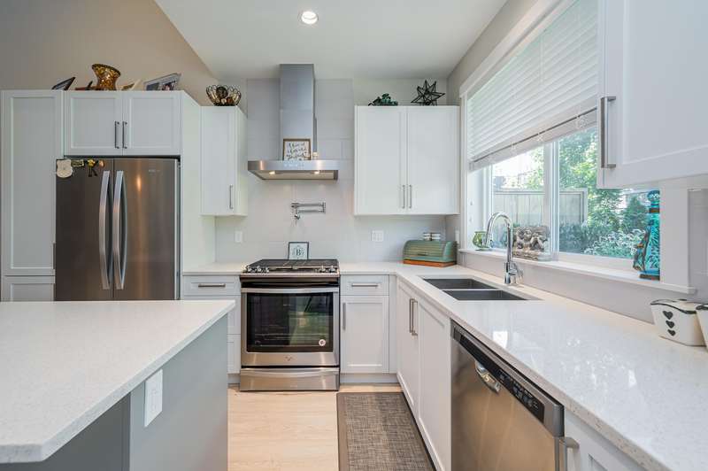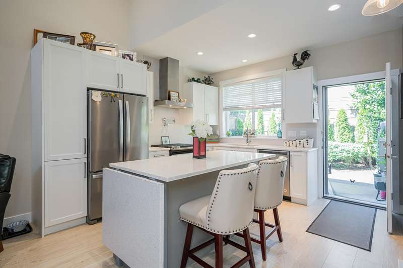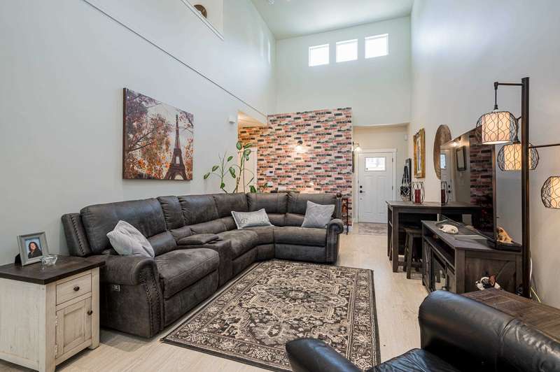 Georgie Award-Winning GABRIOLA PARK – Built by Royale Properties. Rare Primary Suite on the MAIN! This 2-level townhome features 3 beds, 2.5 baths, and a side-by-side garage. The open-concept main floor boasts soaring 17’5 cathedral ceilings and a chef’s kitchen with a gas range, quartz countertops, shaker-style cabinets, SS appliances, and an oversized window overlooking the fully fenced, west-facing backyard. The primary bedroom on the main includes a walk-in closet and a spa-inspired ensuite with double sinks, a soaker tub, and a frameless glass shower. Upstairs, find two spacious bedrooms, one with a cheater ensuite and private patio. A must-see home in sought-after Gabriola Park!