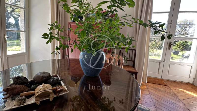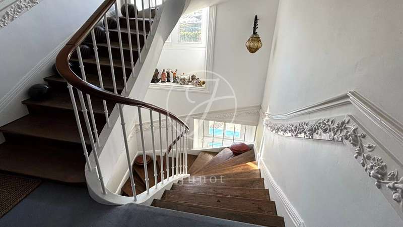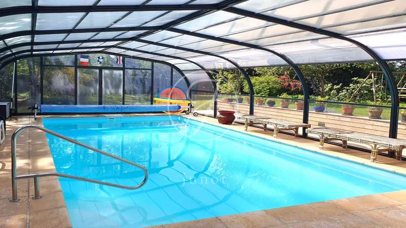 Old stone, authentic charm and exceptional natural light characterise this unique property which can be divided into two independent sections to accommodate a professional office or a rental flat of approximately 90sqm. The building plot allows for attractive extensions. The house The bright entrance hall with cloakroom and toilet leads harmoniously to the various rooms. To the left, a large double reception room with fireplace opens onto the garden. To the right, the dining room connects to a fitted kitchen which also opens onto the outside. A study with bookcase and a utility room complete the ground floor. On the first floor, you will find a master suite with dressing room and bathroom, five spacious bedrooms, a bathroom, a shower room, a dressing room and a toilet. The second floor offers four rooms to be fitted out as well as an attic. The basement houses a boiler room and a wine cellar. The outbuilding and outdoor spaces A 75sqm annexe comprises a studio with kitchen and bathroom opening onto a terrace, a floor that can be converted and a tool shed. The 40 m² heated swimming pool is protected by an 80 m² retractable enclosure and integrates beautifully into the landscaped garden, partly enclosed by stone walls. A wood store, glass greenhouse and well complete this ensemble.