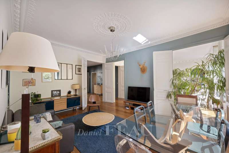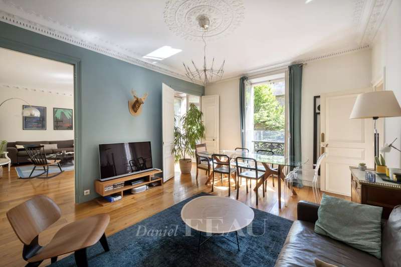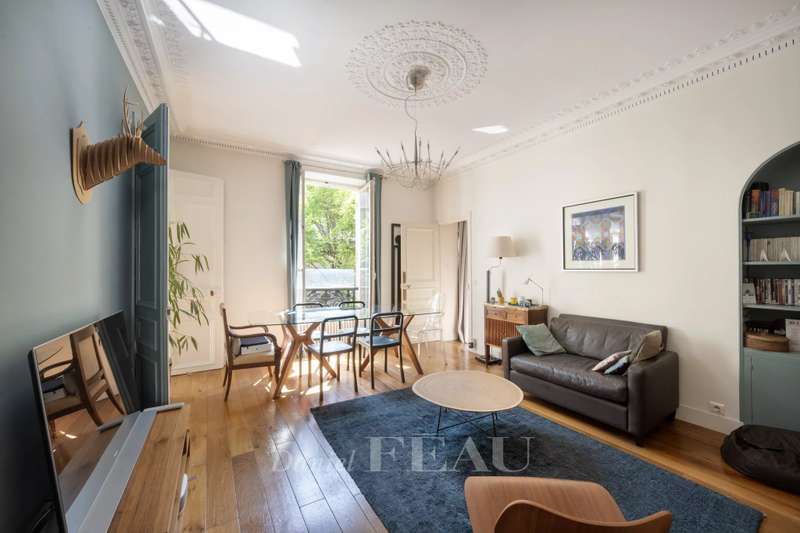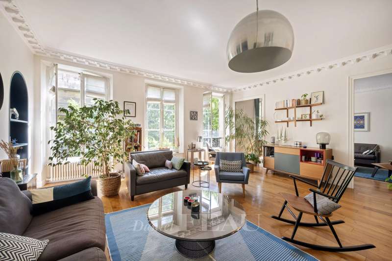 Rue Bourdaloue. This bright and peaceful family apartment is on the 2nd floor of a fine mid 19th century building with a lift. It comprises a spacious living/reception room, a dining room, a kitchen with dining facilities, three bedrooms (two overlooking a courtyard), a bathroom with an adjacent dressing room, and a shower room. With a cellar.