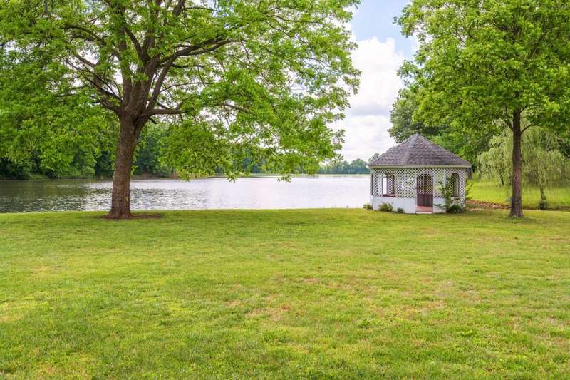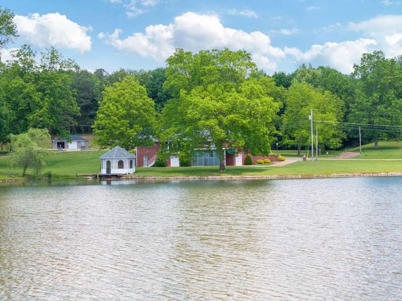 Over 460' Lake Frontage & Custom Home! Located on a park like 2+ acre lot in the desirable Cedar Lake Estates, this home was built by developer/builder & WW2 Veteran Ralph Rogers, and has so many custom touches! Custom concrete designs greet you upon driving into this well manicured/landscaped property. A formal entry w/parquet hardwood flooring leads to the large living area-connected to the sunroom-with all the water views! Plentiful custom cabinetry in the roomy kitchen, featuring all appliances, & breakfast bar. Adjoining is the pretty formal dining room. The primary BR adjoins the double vanity BA. 2 additional BRs are across the hall. A well placed half BA is near the kitchen & connects to the roomy laundry w/pantry closets. Down the stairs leads to the partially finished basement. The den is a great flex room-perfect for the kids gaming room or a private office area. You will find a storm shelter room w/double doors to the outdoors. Also there is a workshop w/garage door which leads to the 2nd concreted drive-also an R.V. storage area/carport. A easy walk down to the water leads to the custom gazebo w/electric and an area to fish. Pecan & pear trees adorn the park like grounds. Truly a unique property very close to town & all city services! KY Lake is nearby with all its water sports/fishing opportunities-or just kick back and fish at home on your park like lot! Located 20 mins from I-40-between Memphis & Nashville.