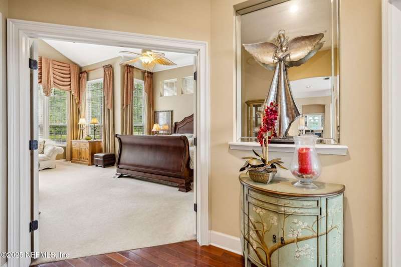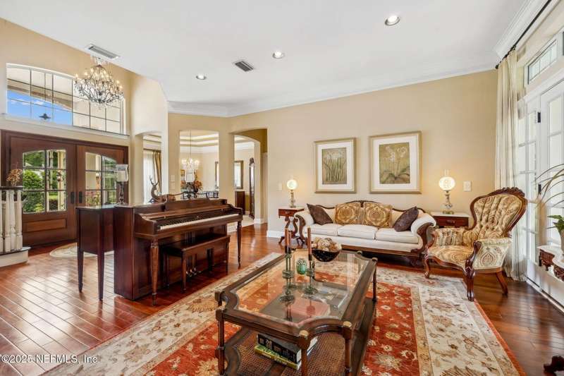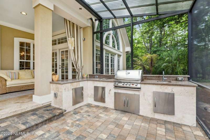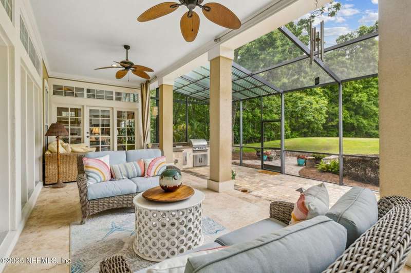 Showcasing timeless elegance and stunning curb appeal, this exquisite 3,934 square foot custom home within the prestigious Deercreek Country Club community boasts impeccable updates and beauty. Floor-to-ceiling windows frame sweeping views of the 8th tee, fairway, and surrounding nature preserve. A welcoming foyer ushers you into a realm of soaring ceilings and gleaming wood floors. The formal living room, dining room, and wet bar create the perfect setting for entertaining. A gourmet kitchen features granite countertops, a center cooking island, a breakfast bar, 42'' cabinets, and quality appliances. The breakfast nook is adjacent to the family room, featuring a vaulted timber-beamed ceiling, a mantled gas fireplace with built-ins, and a gorgeous floor-to-ceiling palladium window that brings in ample natural light. French doors afford lanai access. A first-floor primary suite is a private sanctuary boasting a sitting area with a vaulted ceiling, a huge walk-in closet, and a luxurious spa-inspired bath. A first-floor office/2nd BR features a vaulted ceiling. The upstairs loft includes a built-in bookcase, a study nook, a cedar-lined storage room, and access to two spacious bedrooms with a Jack & Jill bath. A second staircase leads to a generously sized Bonus RM/5thBR. The outdoor space is elevated to the next level, featuring a covered screened lanai with a travertine flooring. A fabulous summer kitchen has a paver deck, a fern garden, and a water feature. The paver patio accents the backyard. Meticulous landscaping frames the property as a paver driveway guides you to a courtyard entry, 2-car garage, and more! Recent updates include a Tankless gas water heater (2024), 2nd gas water heater (2024), New water softener (2024), HVAC's (2017) (2024), New kitchen tile backsplash (2024), under-cabinet lighting (2024), Freshly painted kitchen, family room, bonus room, and garage. (2024-2025). Paver patio and driveway. This prestigious golf course community provides 24-hour manned gated security that boasts lifestyle, location, and convenience. Enjoy exclusive country club facilities and amenities by opting for a fee-based membership. Contact us today to arrange a private tour.