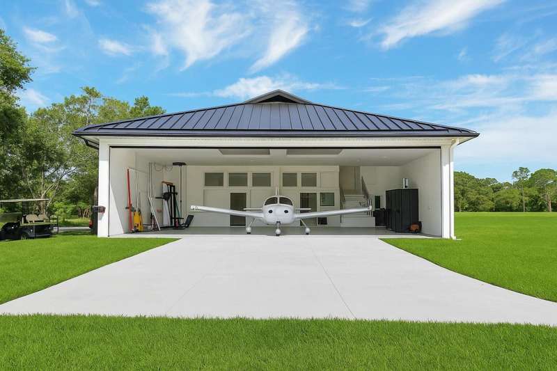 Tailwinds Aviation community. Jupiters exclusive fly-in community, offers 5-6 acre estate properties with taxiway easements, a 2,700 paved runway + 300 overrun, Main home has 2,982 sq ft. Decorator ready with high ceilings, floor-to-ceiling fireplace, open-concept great room, 4BR/3.5BA, dining room, breakfast nook, and cabana bath. Renovations include new impact windows, wiring, drywall; pool with new finishes/equipment. The Hangar is 2,989 sq ft fully Air conditioned. New kitchen, impact windows, living area, open entertaining bar with cooler, 1 or 2 Bedroom/1.5BA. A rare aviation lifestyle in a gated community with several private golf courses and equestrian area. More photos coming soon.