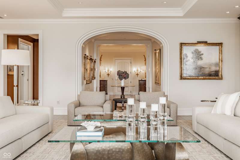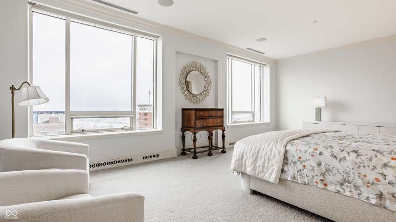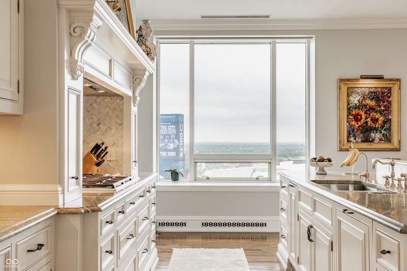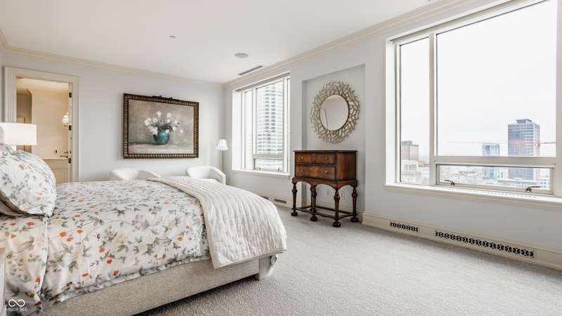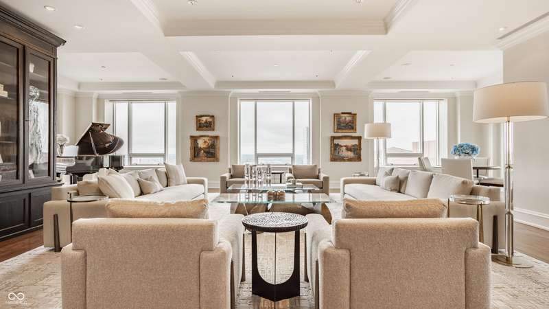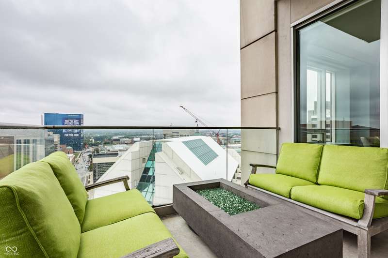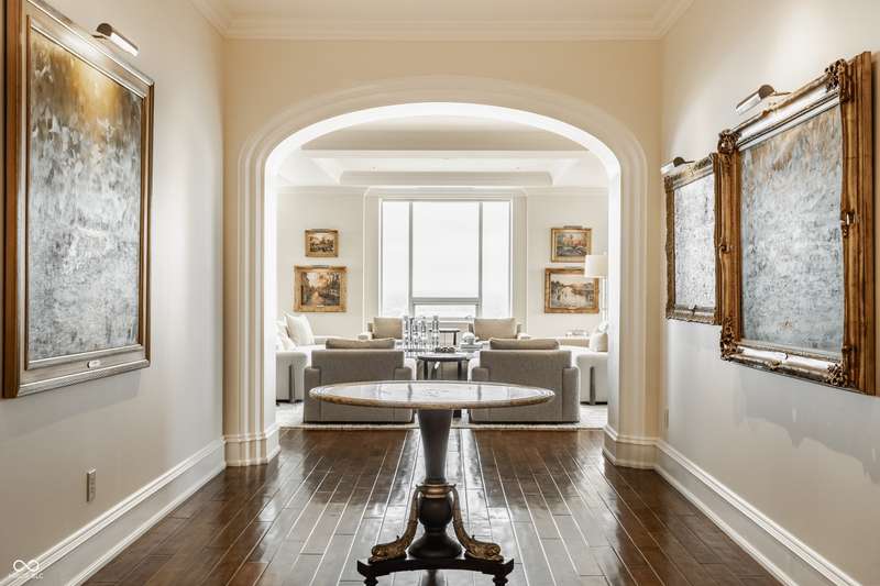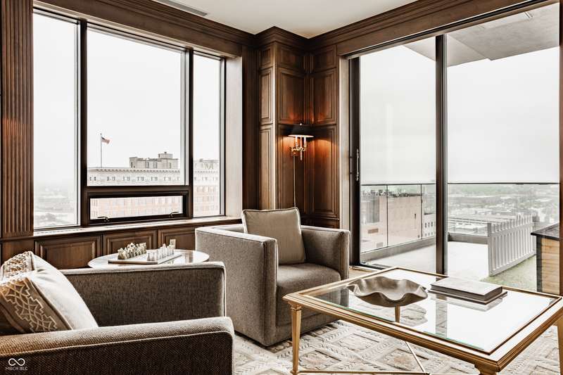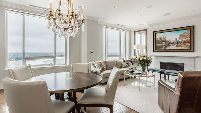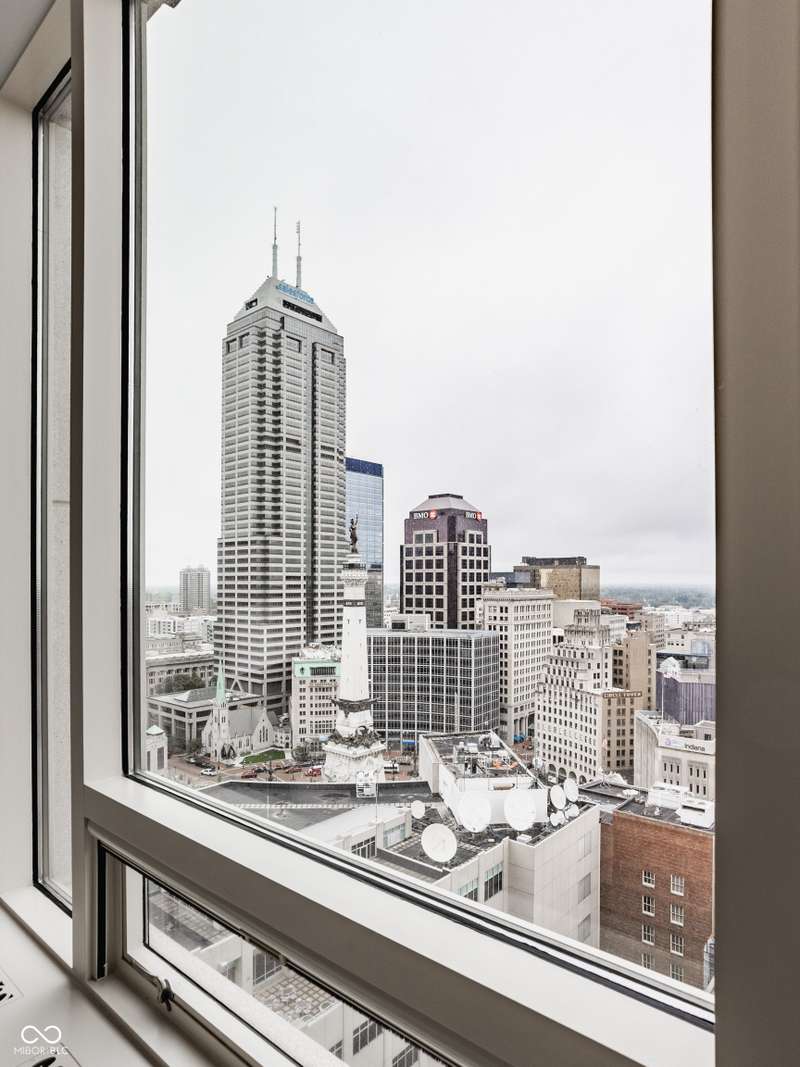 Perched high above the heart of downtown Indianapolis, Residence #11 at the iconic 1 N. Illinois Street inside the Conrad Indianapolis offers a level of sophistication, privacy, and luxury that is simply unrivaled. Encompassing over 5,000 square feet of exquisitely curated living space, this sky-high residence features nearly 360-degree panoramic views of the city's skyline. A stately 30-foot gallery-style entryway sets the tone for this extraordinary home, where refined craftsmanship and timeless design are found at every turn. The gourmet kitchen is a chef's dream, outfitted with top-tier appliances including Wolf double ovens and gas range, Sub-Zero integrated refrigeration, and Miele dishwasher, all seamlessly integrated into custom cabinetry and generous stone countertops. A large center island anchors the space, which flows effortlessly into a sunlit hearth room with gas fireplace - the perfect spot for relaxed mornings or quiet evenings. An adjacent butler's pantry provides discreet service access between the kitchen and the formal dining room, while two outdoor terraces, including one with a gas firepit, invite year-round al fresco enjoyment. The grand living room offers breathtaking vistas and abundant natural light, while a richly paneled library with bespoke built-ins and access to a private terrace provides a warm and contemplative retreat. The primary suite is a true sanctuary, featuring a generous bedroom with stunning views, dual walk-in closets, and a spa-like bath with garden tub, double vanities, and elegant finishes. Additional guest suites each offer private en-suite baths and ample closet space, ensuring comfort and privacy for all. Located within one of Indianapolis' most exclusive and secure residential communities - home to just 14 residences - this property includes two private parking spaces in a secured garage and access to a full suite of amenities; 24-hour security, full-time concierge, private entrance, spa, fitness center, and pool.