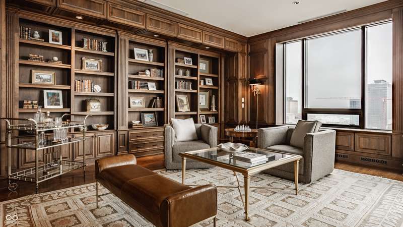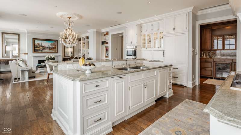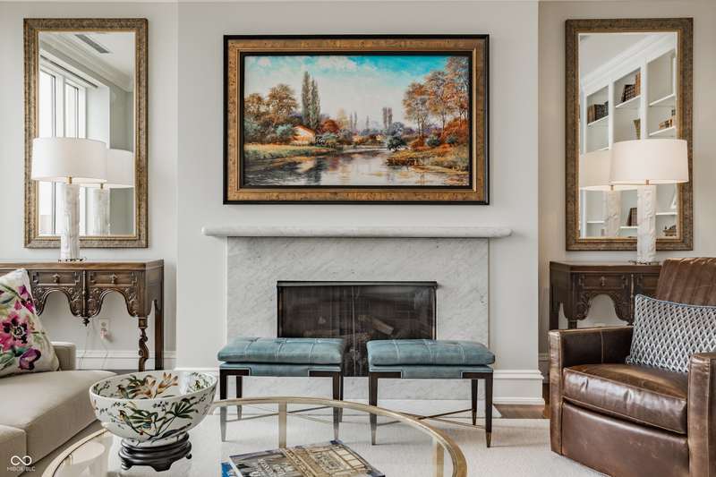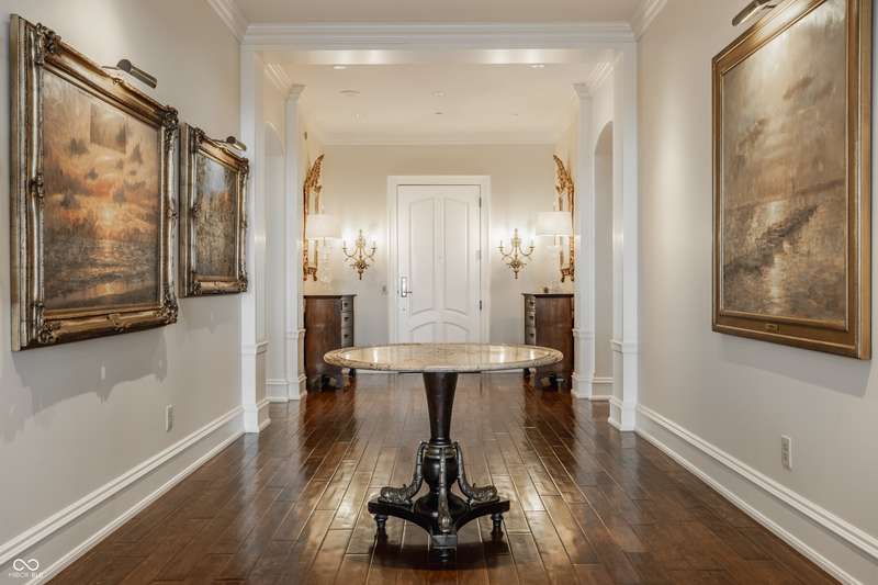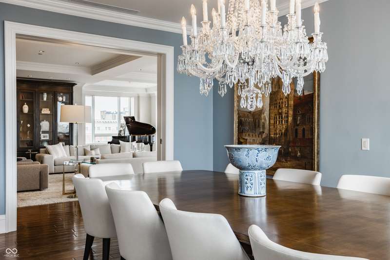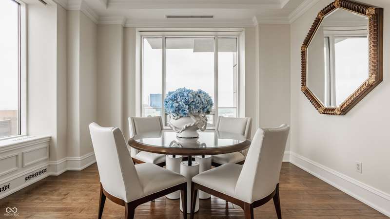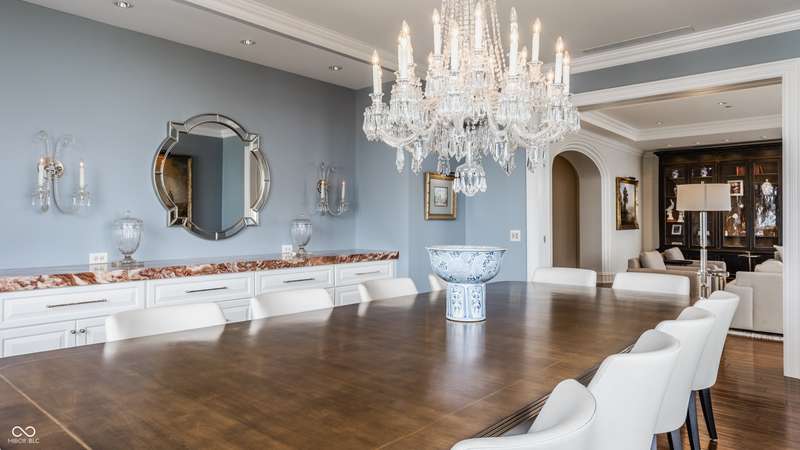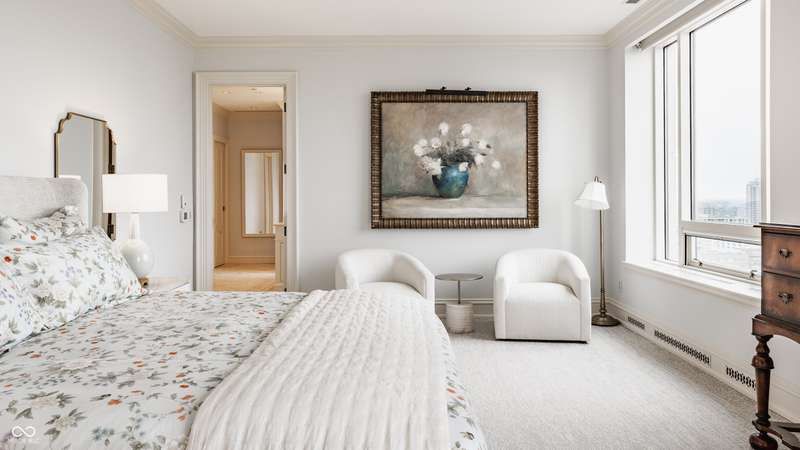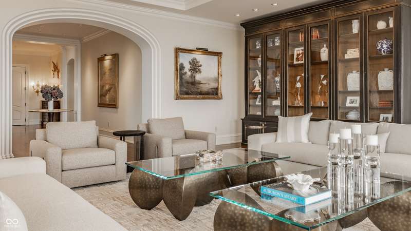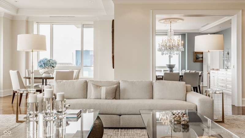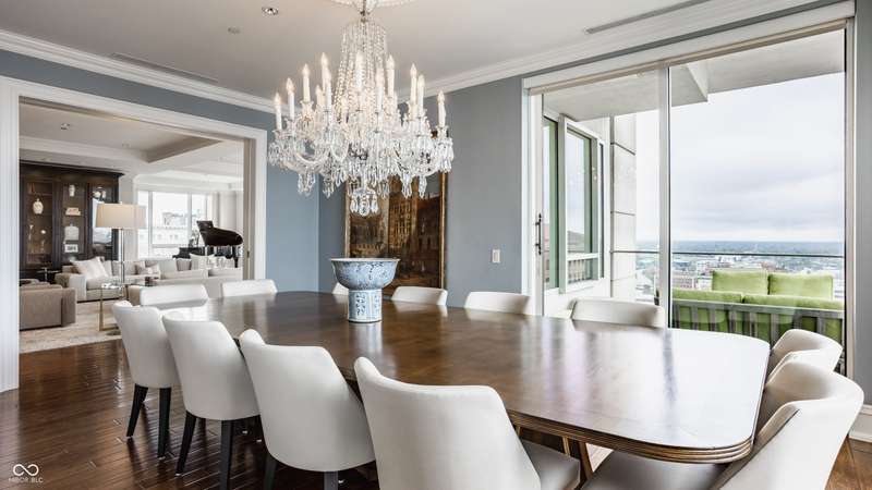 Perched high above the heart of downtown Indianapolis, Residence #11 at the iconic 1 N. Illinois Street inside the Conrad Indianapolis offers a level of sophistication, privacy, and luxury that is simply unrivaled. Encompassing over 5,000 square feet of exquisitely curated living space, this sky-high residence features nearly 360-degree panoramic views of the city's skyline. A stately 30-foot gallery-style entryway sets the tone for this extraordinary home, where refined craftsmanship and timeless design are found at every turn. The gourmet kitchen is a chef's dream, outfitted with top-tier appliances including Wolf double ovens and gas range, Sub-Zero integrated refrigeration, and Miele dishwasher, all seamlessly integrated into custom cabinetry and generous stone countertops. A large center island anchors the space, which flows effortlessly into a sunlit hearth room with gas fireplace - the perfect spot for relaxed mornings or quiet evenings. An adjacent butler's pantry provides discreet service access between the kitchen and the formal dining room, while two outdoor terraces, including one with a gas firepit, invite year-round al fresco enjoyment. The grand living room offers breathtaking vistas and abundant natural light, while a richly paneled library with bespoke built-ins and access to a private terrace provides a warm and contemplative retreat. The primary suite is a true sanctuary, featuring a generous bedroom with stunning views, dual walk-in closets, and a spa-like bath with garden tub, double vanities, and elegant finishes. Additional guest suites each offer private en-suite baths and ample closet space, ensuring comfort and privacy for all. Located within one of Indianapolis' most exclusive and secure residential communities - home to just 14 residences - this property includes two private parking spaces in a secured garage and access to a full suite of amenities; 24-hour security, full-time concierge, private entrance, spa, fitness center, and pool.