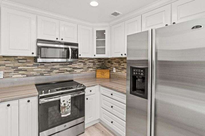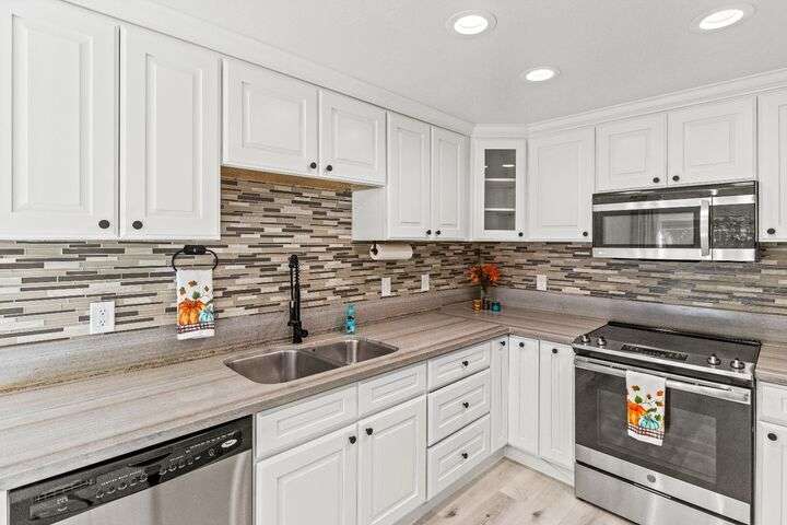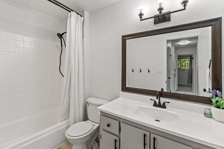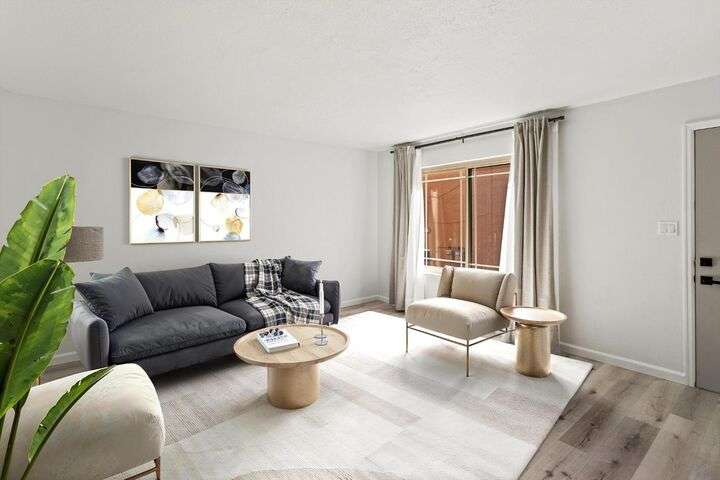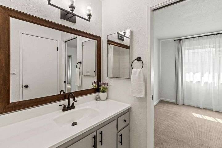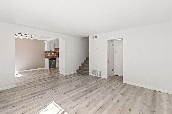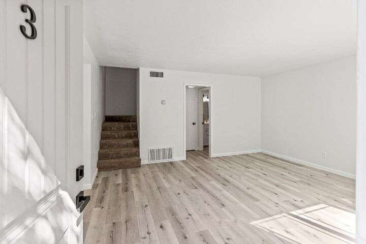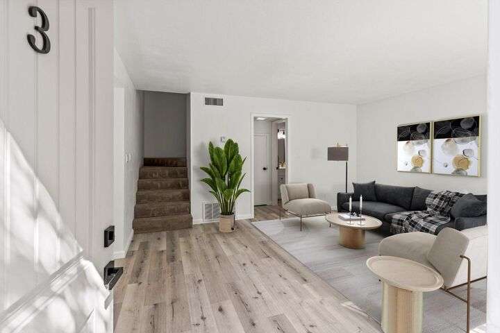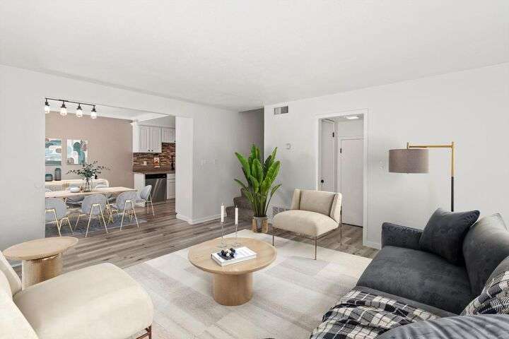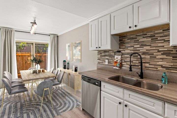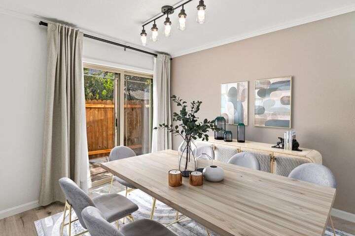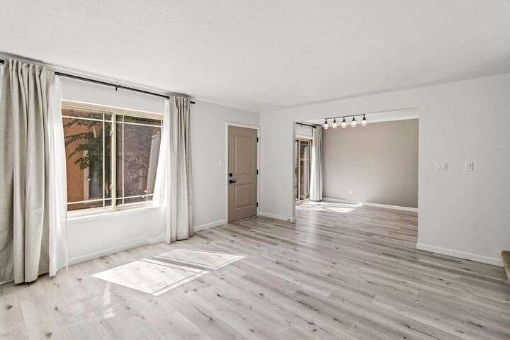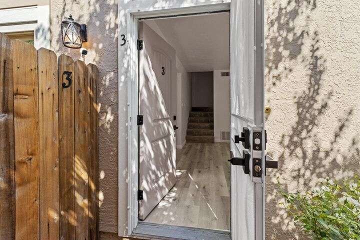 Welcome home! This recently refreshed 3 bedroom, 1.5 bath condo delivers 1105sf of thoughtfully updated living space. Highlights include a contemporary neutral color palette, LVP flooring on the main level and bathrooms, and fresh paint, new hardware, light fixtures, and curtains throughout. The updated kitchen features stone counters, custom cabinets, and stainless steel appliances, and flows into a spacious dining room, perfect for gatherings. The primary bedroom connects to the full bathroom, which, along with the downstairs half bath, has recently refinished sinks and tub/surround. The private patio is the perfect place to relax, and gives enough space to plant a small garden as well. There is a dedicated covered carport space plus a driveway space, and additional private storage in the carport. Each 4plex has a shared laundry room, and the HOA pays for hot water for the shared water heater. The well-kept community provides easy living with the affordable HOA dues that cover a sparkling pool, roof/exterior/grounds maintenance, trash, and insurance on the structure. Conveniently located close to shopping, schools, dining, parks, and public transportation, this home blends convenience, comfort, and style. *Some photos have been virtually staged to show potential.