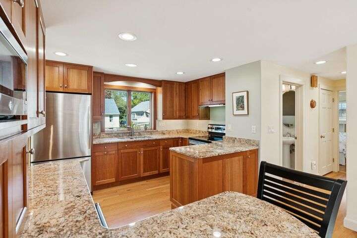 Nestled in the desirable North Deering neighborhood of Portland, this charming Cape offers comfort, flexibility, and an abundance of natural light. With three bedrooms, there's room for guests, a home office, or a cozy den. From the bright and spacious entryway, step into a beautifully updated kitchen featuring cherry cabinetry, granite counter tops, modern appliances, gleaming hardwood floors, and thoughtful storage—perfect for everyday living or entertaining. This home has been meticulously maintained with thoughtful updates throughout, making it truly move-in ready. Step outside to enjoy the private fenced yard with Concord grape vines and apple trees, or relax on the patio—an ideal setting for morning coffee or summer gatherings. Situated on an oversized lot with space for an ADU if desired, the property blends charm, function, and opportunity. Conveniently located near shopping, restaurants, golf, the highway, and Portland Trails, it's a perfect balance of neighborhood living and accessibility.