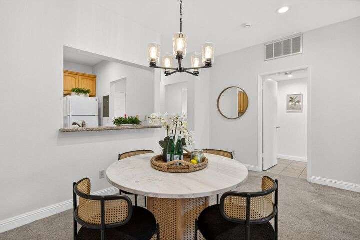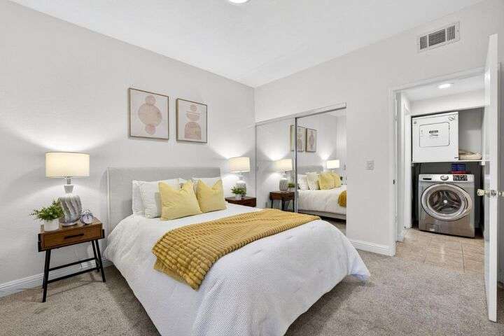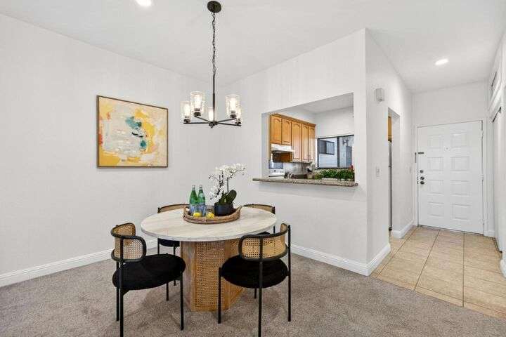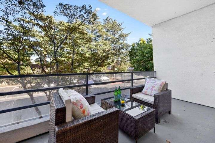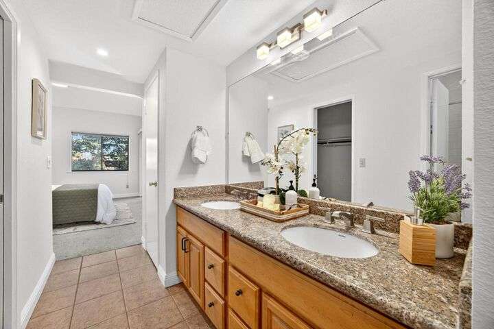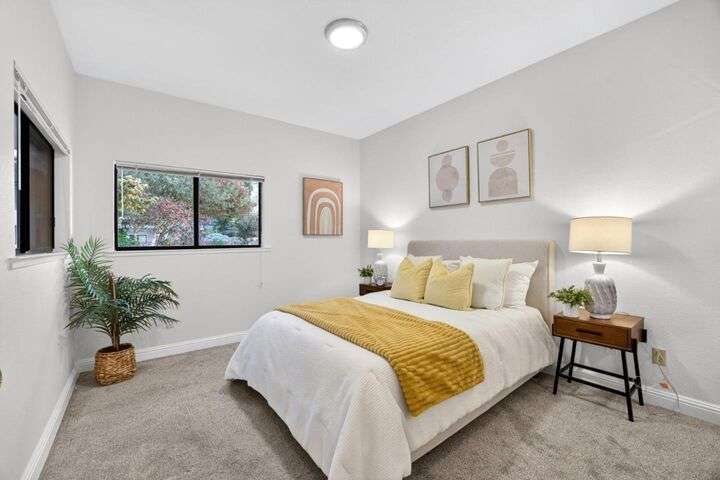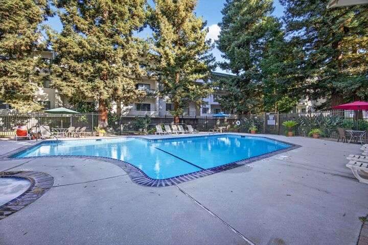 Welcome to this beautiful 2-bedroom, 2-bathroom condo in a highly desirable gated community, facing a tranquil courtyard with a soothing water fountain. This ground-level unit boasts a spacious open-concept layout that seamlessly blends comfort and style, enhanced by fresh paint throughout. The kitchen features granite countertops, while both bathrooms have been tastefully renovated. The generous primary suite offers a dual-sink vanity and a large walk-in closet. Enjoy the private patio tucked behind mature treesperfect for relaxing or entertainingplus the convenience of in-unit laundry and two assigned covered garage spaces with elevator access, a rare find in the area. Central A/C and heating ensure year-round comfort, and water and garbage are included in the HOA fee for added ease.Community amenities include a pool, fitness center, and secure entry. Ideally located just minutes from Apple, Santana Row, downtown Cupertino, and major highways (280, 85, 101), and served by top-rated Cupertino schools. A rare opportunity not to be missed!