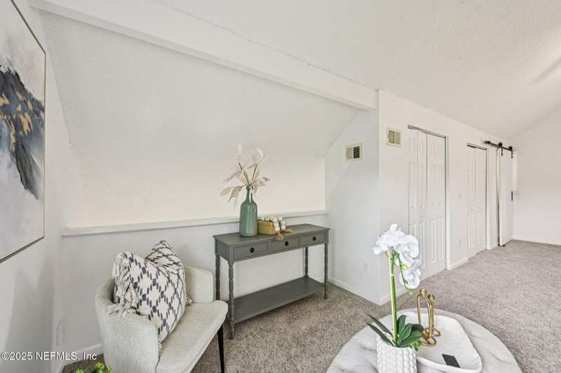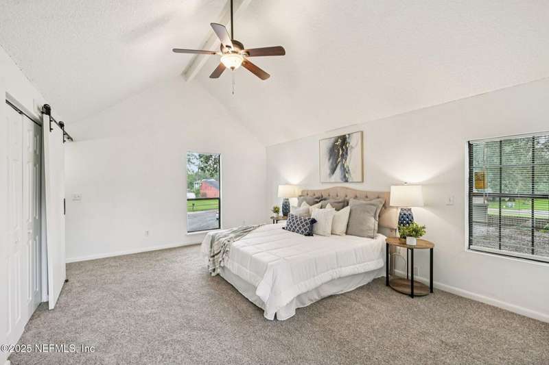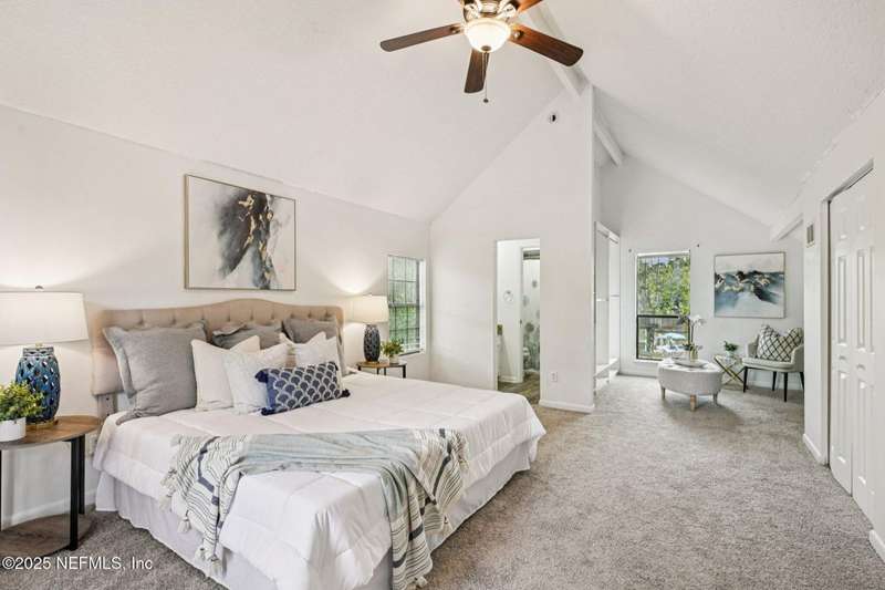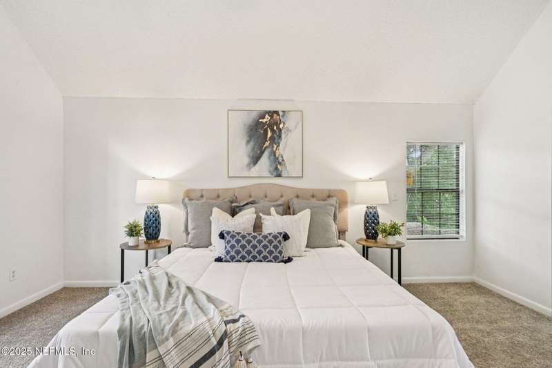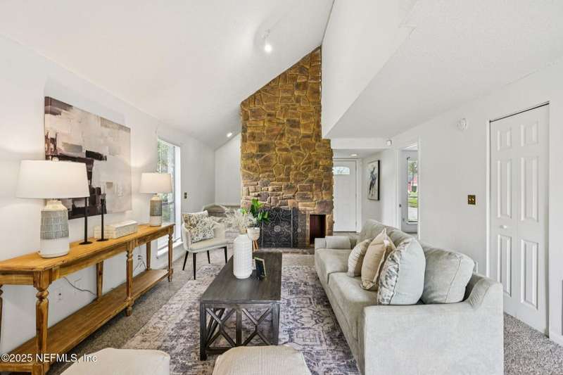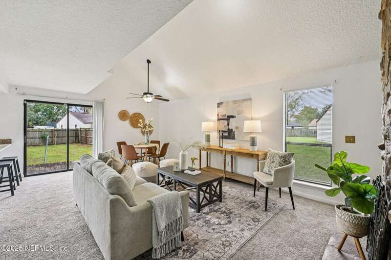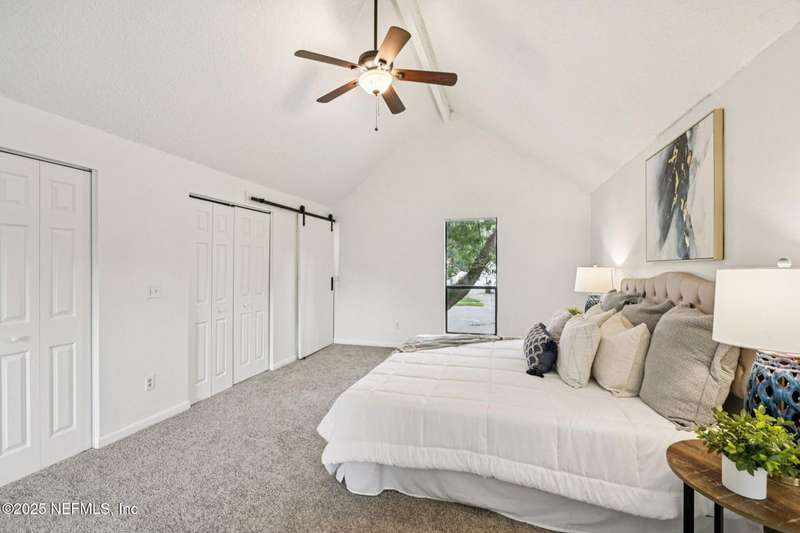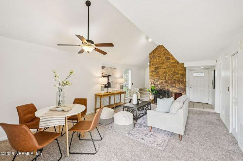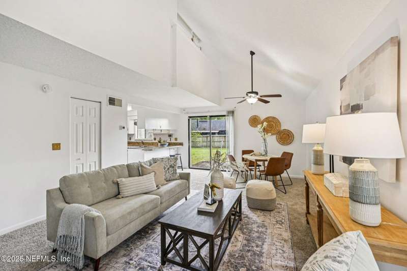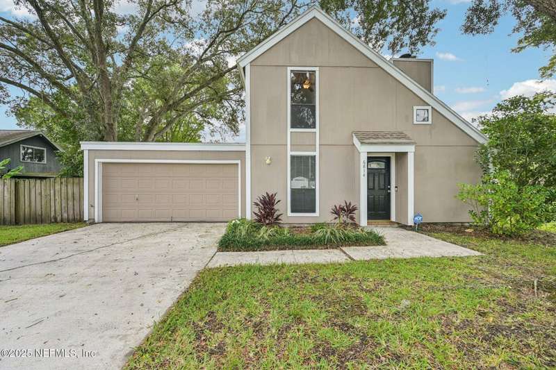 FRESH PAINT & NEW CARPET! If you are ready to make your move, then you need to tour this adorable and affordable home in the well established Candlewood neighborhood. This cutie is conveniently located near shops, restaurants and I-295 to make your day-to-day routine easy and its quiet cul de sac lot, fenced backyard, 2 car garage, and ample parking will make you smile when you return. Inside, you'll find lots of natural light, vaulted ceilings, a split floor plan with 1 bedroom and 1 bathroom on the 1st floor along with open concept living, dining and kitchen spaces. Upstairs is the Primary Suite with large closets and space for an office or cozy reading nook. 6814 Clover Ct. has charm and conveninece, but NO HOA OR CDD. Schedule your tour today!