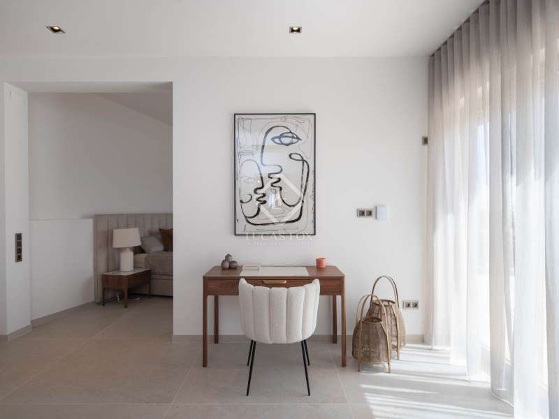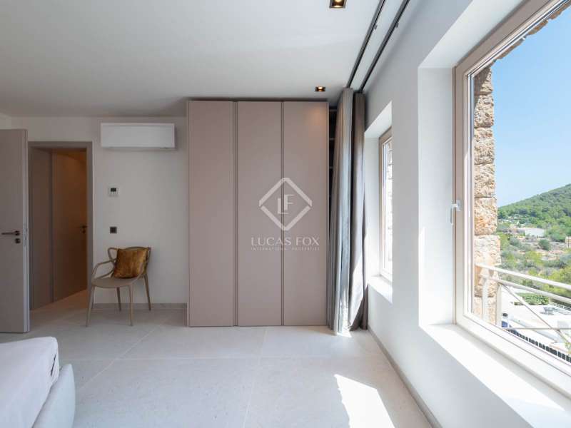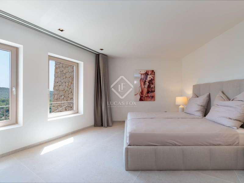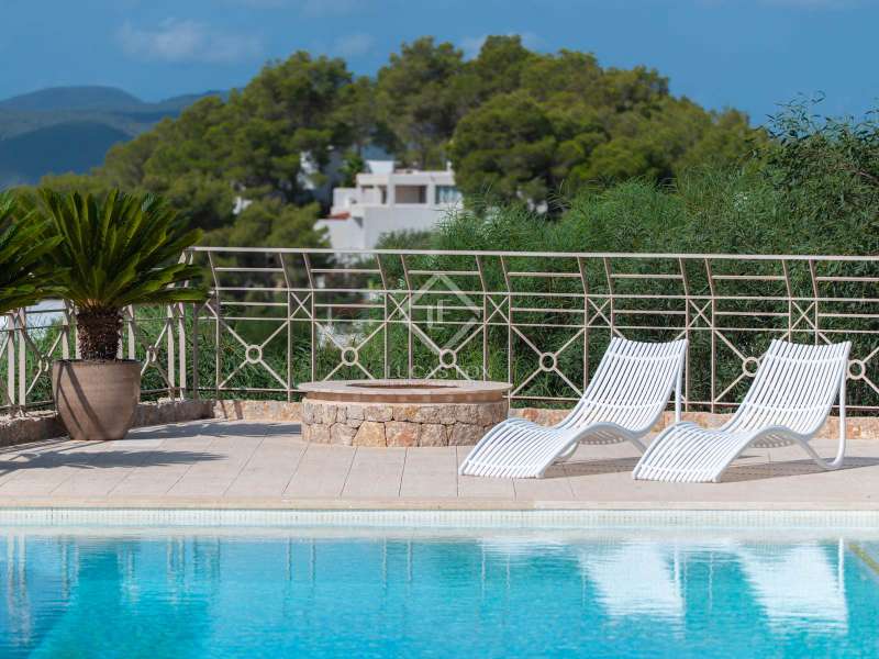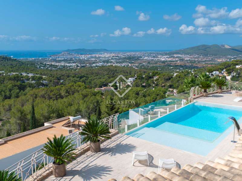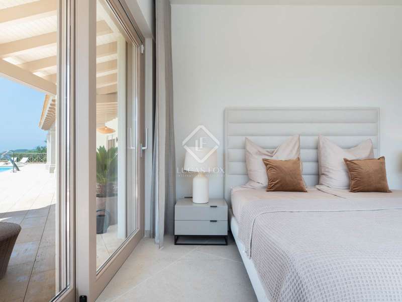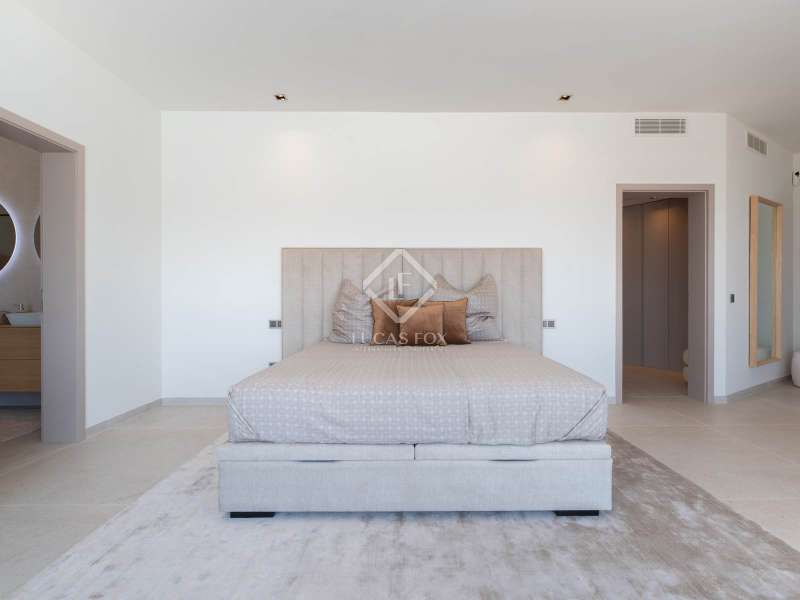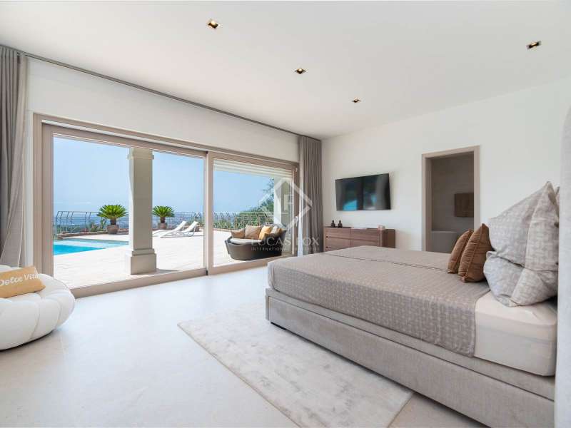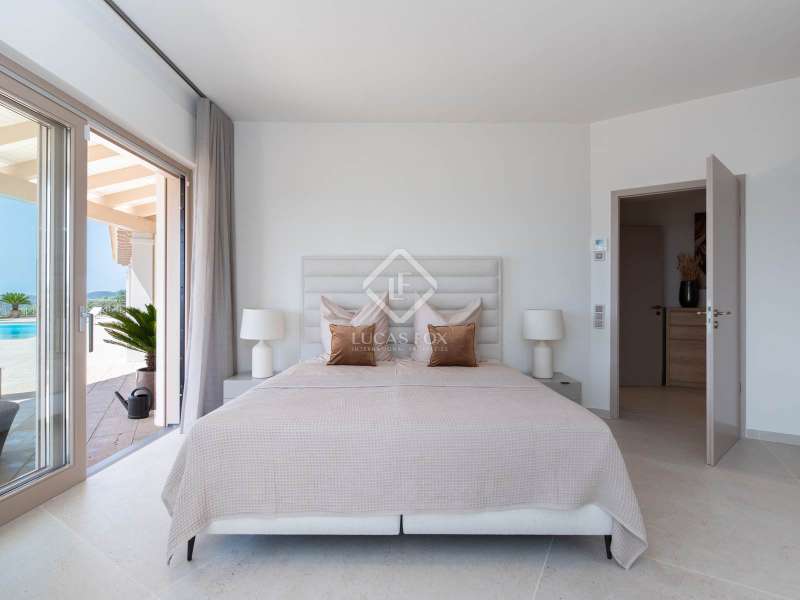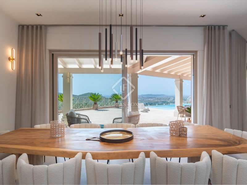 This stunning villa, originally built in 2005 and recently renovated to the highest standards, is perched atop the prestigious Can Furnet development, offering unparalleled views of the sea, Formentera, and Dalt Vila. Boasting a total of 786 m² of construction, including a 100 m² garage, the property provides 534 m² of usable space, mostly distributed on a single level—an architectural rarity in Can Furnet that ensures a seamless flow throughout the home. As you descend from the garage to the villa, you are immediately greeted by breathtaking sea views, with the island of Formentera on the horizon. To the right, you'll find a spacious living area and one of the master suites. On the left, the kitchen and dining area lead to two additional bedrooms, with a second master suite situated at the far end. The home opens up through expansive floor-to-ceiling windows to a 70 m² covered terrace, seamlessly connecting to the impressive 150 m² pool area. On the lower level, there are three more double bedrooms, along with various rooms that can be adapted for multiple uses, offering flexibility to meet the needs of any lifestyle. Space is abundant in this villa, where natural light, soft colors, and the essence of the Mediterranean merge to create an exceptionally inviting and luxurious atmosphere, making this a true haven for those seeking the finest in island living.