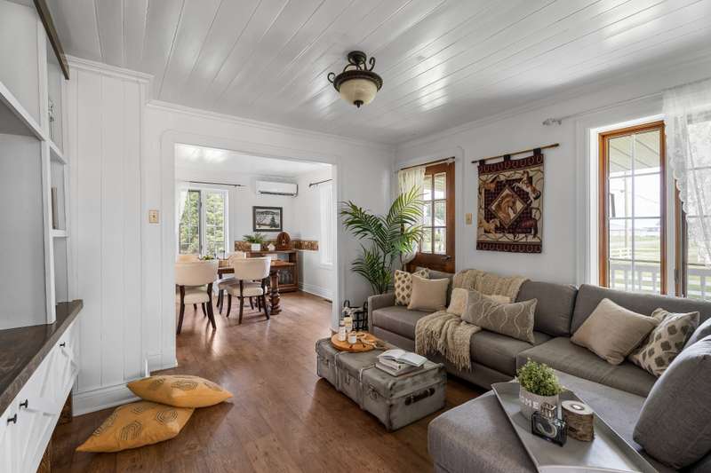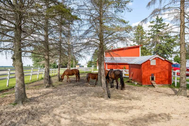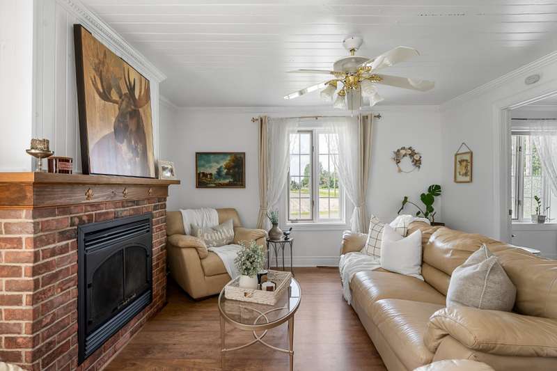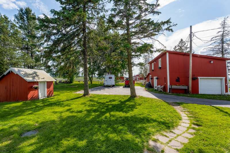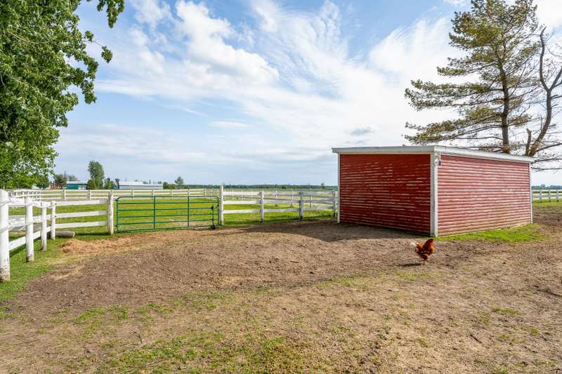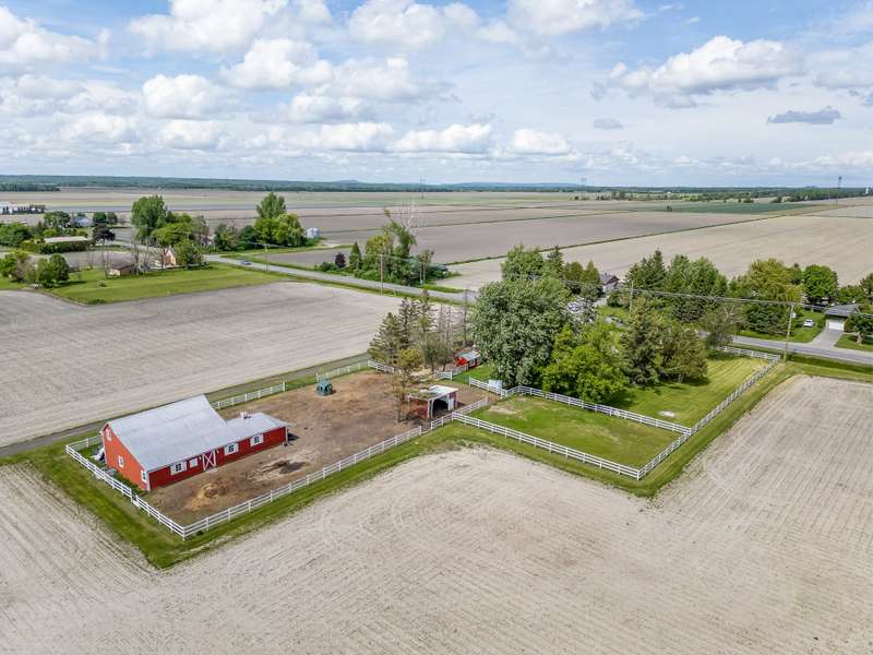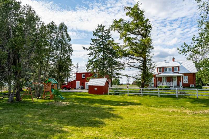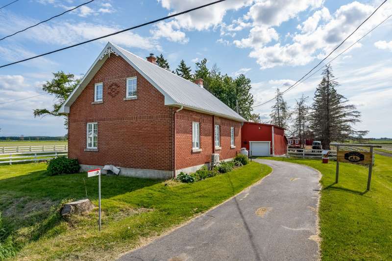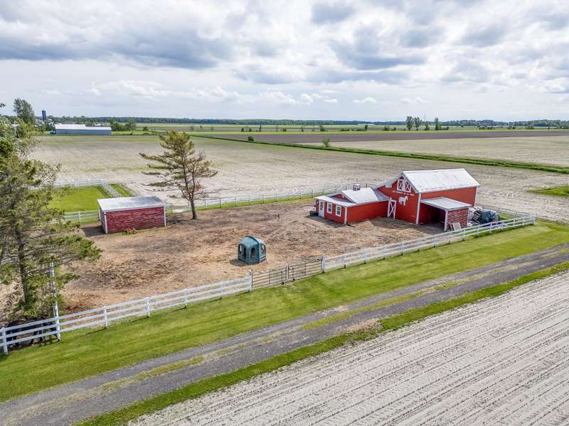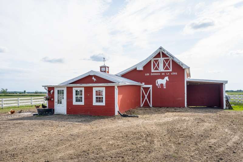 Turnkey hobby farm in Coteau-du-Lac just 5 mins from Les Forestiers equestrian trails. Over 50,000 sq. ft. of land with 3-bed, 2-bath farmhouse, large garage with loft, and fully equipped barn with 5 stalls, heating, water, electricity, and ventilation. Hay loft, tack room, chicken coop, and 3 paddocks with potential for a 4th. One paddock has a sand base ideal for riding. Perfect for horse lovers seeking rural living close to amenities.