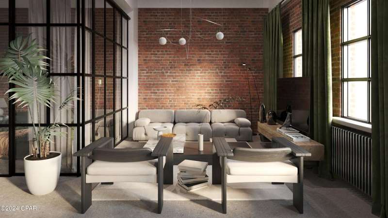 Introducing The Mashburn Building, an iconic structure featuring four stories and 27,000 square feet of historical charm, offering 18 industrial-style residential lofts. Located in the vibrant heart of Historic Downtown Panama City, this distinctive development features a dynamic fusion of commercial and residential spaces spread across multiple levels. Providing versatile layouts tailored to diverse preferences, encompassing co-working spaces, a restaurant, an inviting members-only lounge, and the potential addition of a rooftop lounge.Experience elevated living on floors three and four. Presenting Loft 11, boasting two bedrooms and 1,100 square feet of space, offering breathtaking vistas of St. Andrews Bay and Downtown Panama City. Enjoy panoramic views facing North, South, and West, including a picturesque overlook of Harrison Avenue. This loft seamlessly combines classic allure with modern sophistication, featuring industrial-inspired design elements such as concrete floors complemented by nearly 12-foot-tall ceilings. The kitchen will showcase sleek stainless steel appliances and elegant quartz countertops, adding to the allure of these exceptional spaces.Step right onto Harrison Ave and immerse yourself in the vibrant atmosphere of Downtown Panama City. Explore a plethora of dining options, breweries, coffee shops, boutique shopping, art and photo galleries, pilates and boxing club, a marina, and much more just moments away.The first purchaser to secure a loft under contract will receive a complimentary one-year ''1909 Membership'' at History Class. Additionally, the initial five buyers who sign and place their deposit will enjoy a year of complimentary leasing for a private parking spot.An enticing opportunity awaits investors seeking a second home, vacation retreat, or income-generating property at an attractive price point.Presently, the renderings are in the conceptual stage, characterized by artistic interpretation. More precise renderings will be developed as construction progresses. Construction to be completed by end of 2025.