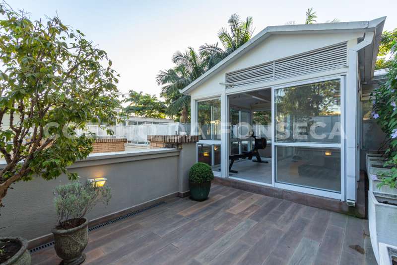 Linda casa reformada com duas confortáveis salas que dão para um jardim com uma bela área gourmet; no andar superior há três amplas suítes e uma sala intima. A casa também possuí um solário com uma área externa com banheira de hidromassagem, uma academia e um escritório com banheiro.