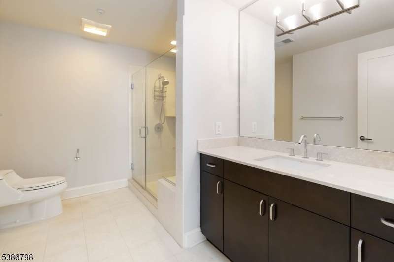 NYC-style living awaits at 40 Park, Morristown's premier luxury residence on the Green. This sophisticated 1-bedroom, 1.5-bath home with den is perfectly positioned on the 3rd floor, offering a modern open-concept layout and sunlit interiors. The kitchen has been thoughtfully updated with a new dishwasher, quartz countertops, and stylish light fixtures, and includes a rare eat-in dining area in addition to a breakfast bar that opens seamlessly to the spacious family room with oversized windows. The primary suite features a spa-like bath with a seamless glass shower, large vanity, and generous storage, while the versatile den and powder room provide flexibility for today's lifestyle. A standout feature of this unit is the valuable extra storage space, accessible directly from the powder room, an uncommon perk among one-bedroom residences. Gleaming hardwood floors, ample closet space, and deeded garage parking (space #62) further enhance comfort and convenience. Residents enjoy concierge service, a private fitness center, and the exclusive Club Room Lounge with a catering kitchen, wide-screen TVs, billiards, and a gas fireplace. All of this in the heart of downtown Morristown, just steps from fine dining, shopping, vibrant nightlife, and the direct train to New York City.