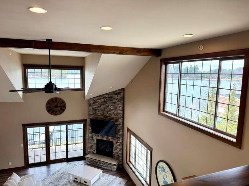 Experience lakefront elegance in this distinguished 3 bedroom, 3 bath condo perched above downtown Minocqua. With 1,718 square feet of gracious space, the residence combines design and comfort. From your private covered balcony, panoramic westward views that bring the warmth of sunset right into your home. Inside, vaulted ceilings and a spacious lofted bedroom create a captivating open feel. Convenience meets exclusivity with a private elevator and a drive-under garage with storage devoted just to you. Positioned ideally for both leisure and lifestyle, this residence places you steps from restaurants, shops, and scenic walking paths. Whether as a year-round retreat or a refined getaway, this condo epitomizes the Northwoods lifestyle.