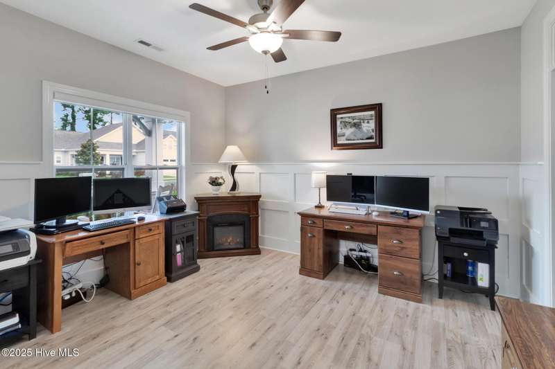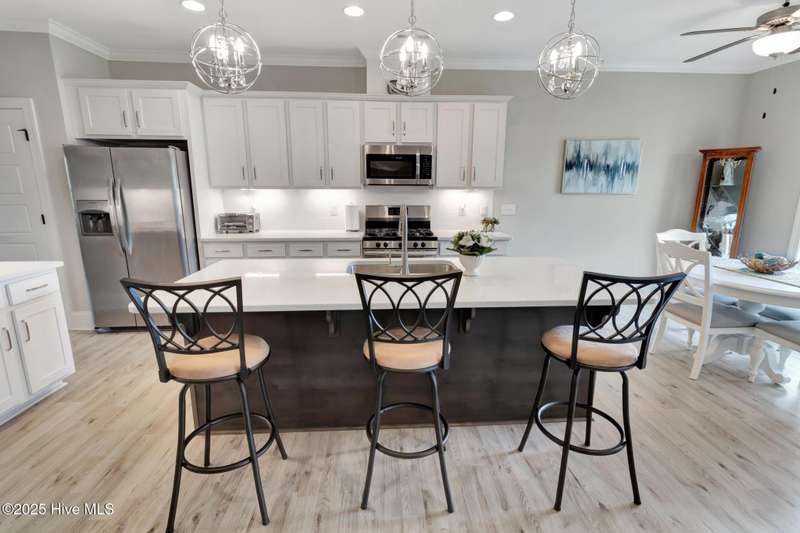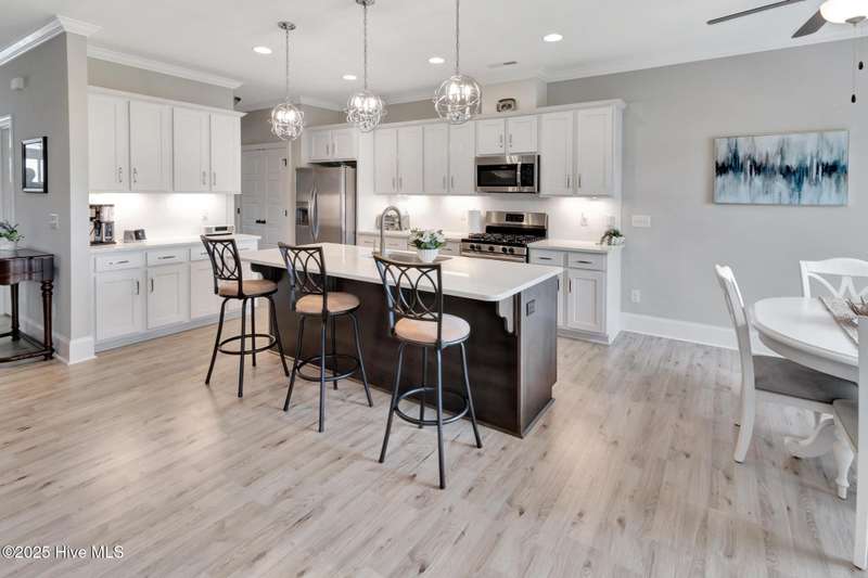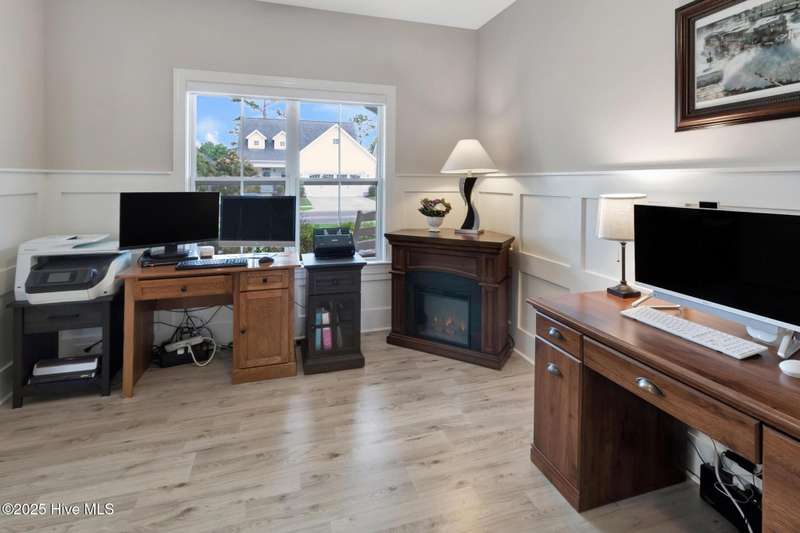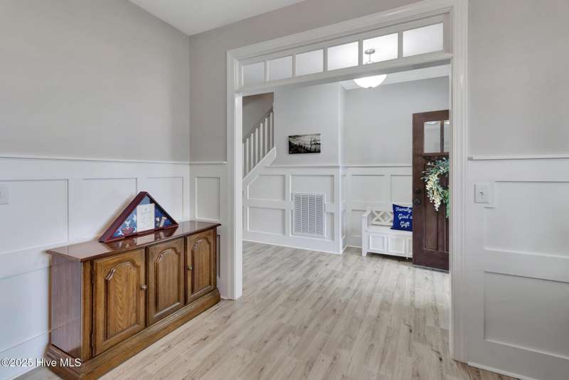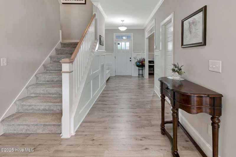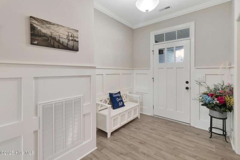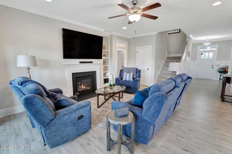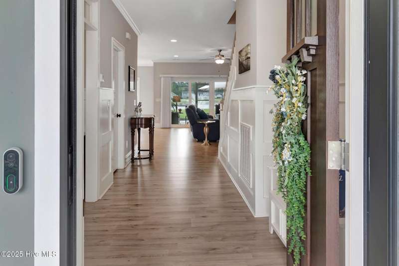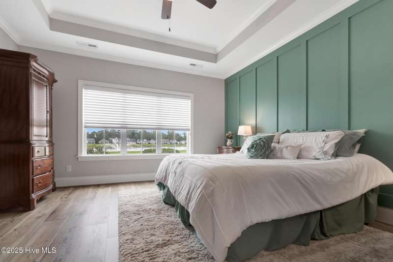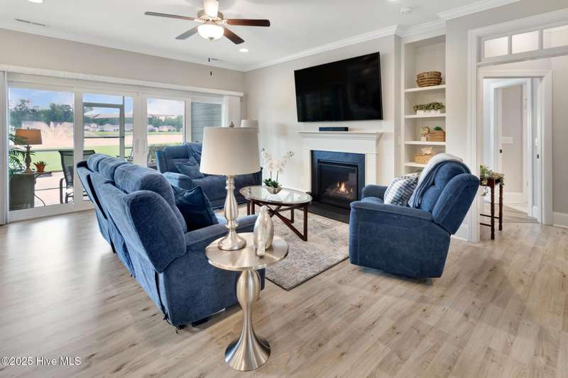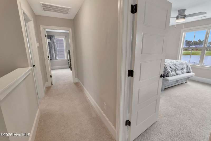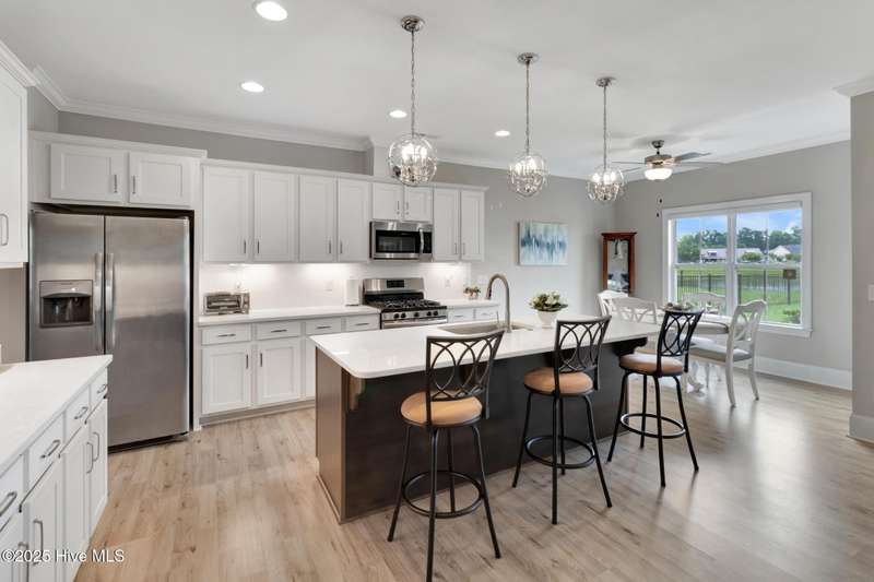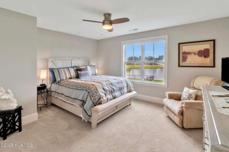 Welcome Home!Step inside and take in the stunning backyard view of Hanover Lake and its beautiful fountain, visible the moment you enteror while you relax on your screened-in porch.This home offers an open-concept layout, featuring a spacious owner's suite with a tray ceiling and two closets. Thoughtful details include transom windows above the doorways, wainscoting in the entryway and flex room, and elegant finishes throughout.The fabulous kitchen boasts a pantry for extra storage, a gas stove, and a spacious dining nook. The living room is anchored by a natural gas fireplace and built-in bookcase, creating a perfect gathering space.Convenience meets style in the laundry room, complete with cabinets and a hall tree with bench and storage. Upstairs, you'll find three additional bedrooms and two full bathsplenty of space for family or guests.The two-car garage features a premium epoxy floor and storage cabinets, while a whole-house generator offers added peace of mind.
