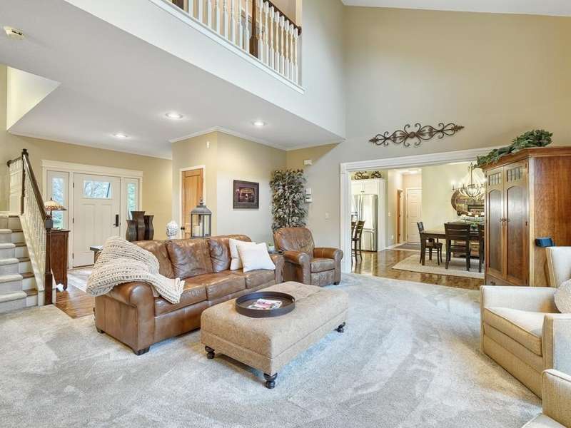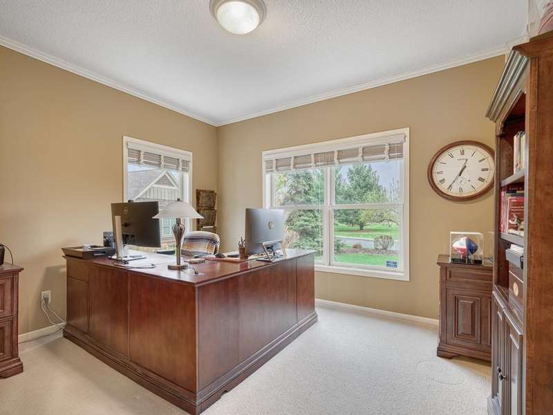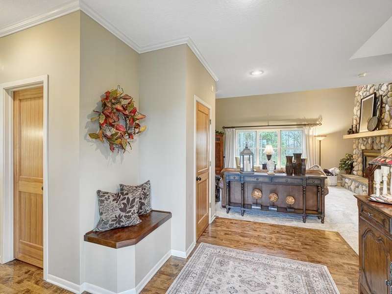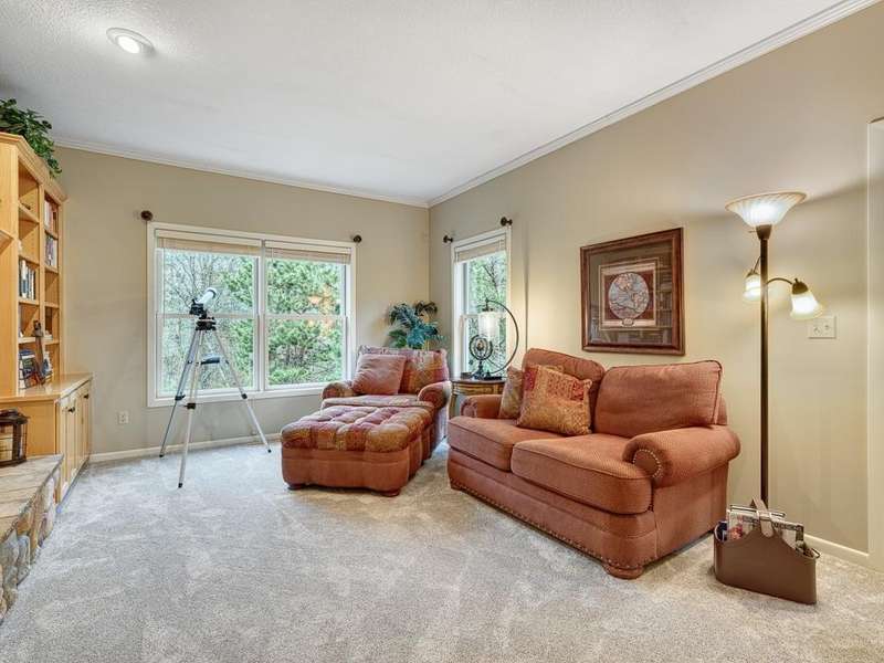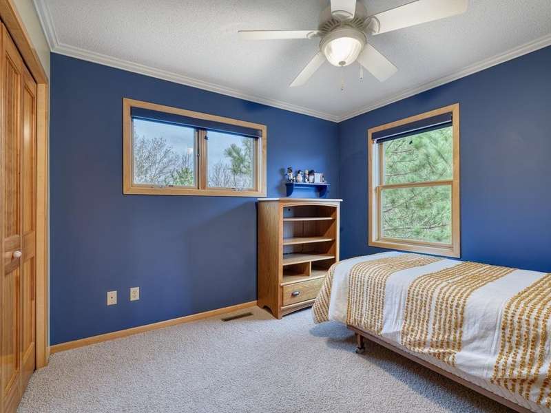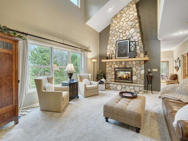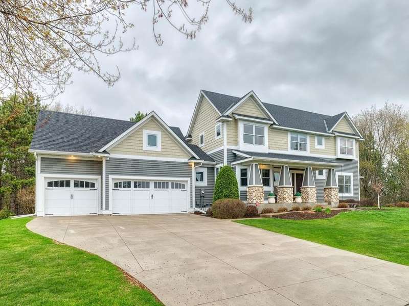 Welcome to the Meyers Pineridge development of Lake Elmo! There are 21 homes in this tranquil neighborhood, located only 20 minutes east of St. Paul. Each home sits on about an acre, offering ample space and privacy. The neighborhood also offers a trail system ideal for walking, jogging or biking. This fully-finished walkout 2-story home sits at the end of the street and is a former model. The acre lot is nicely landscaped with private views in front and in back. There are four bedrooms upstairs, a 5 th in the lower level and a main floor office space with French doors. The owners ensuite full bathroom has dual sinks, walk-in closet, a lovely spa soaking tub and separate shower. There is a gas stone 2-sided fireplace which is the focal point of the main floor and a 2nd gas stone fireplace in the lower level family room. You will love star gazing from the 3-season porch or den on the main floor as well! There is a large composite deck off the dining room which was recently replaced and the exterior was also recently painted. The updated eat-in kitchen has a breakfast bar, walk-in pantry, stainless appliances, lovely farmhouse sink and beautiful hardwood floors. One of the upstairs bedrooms is set up as a study room for the kids to work on homework or it could be another home office space. Family game or movie nights will definitely be in the lower level where you have space for just about anything!
