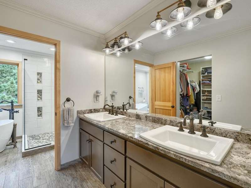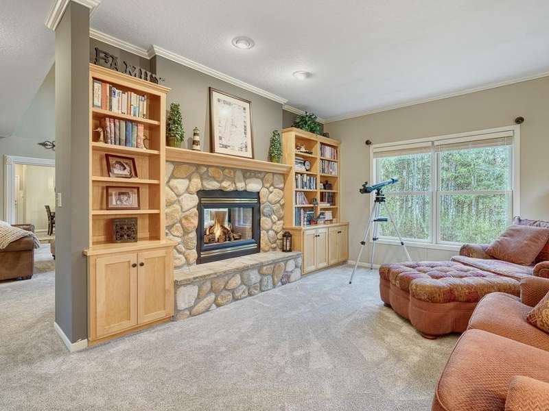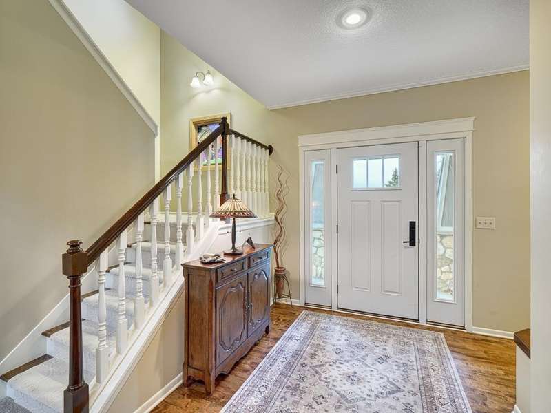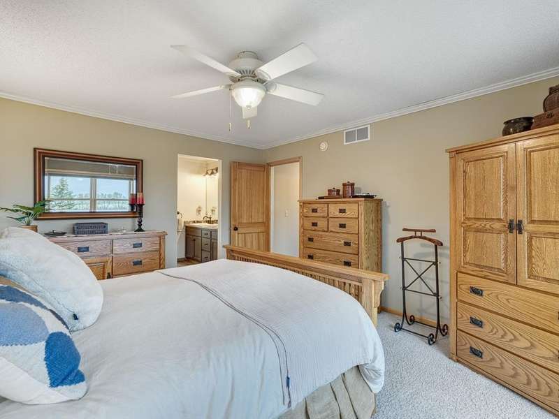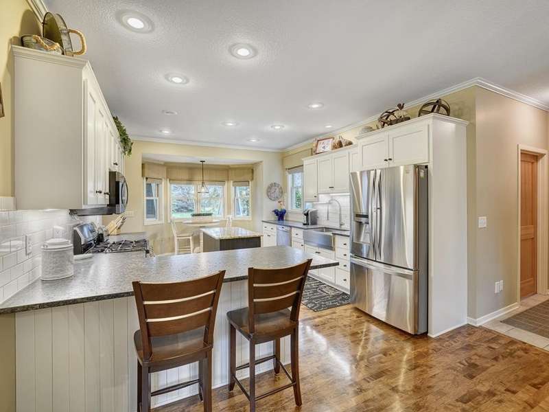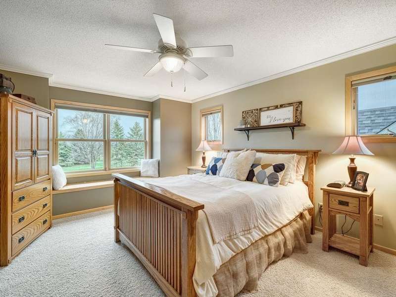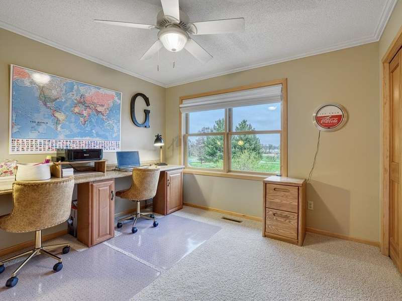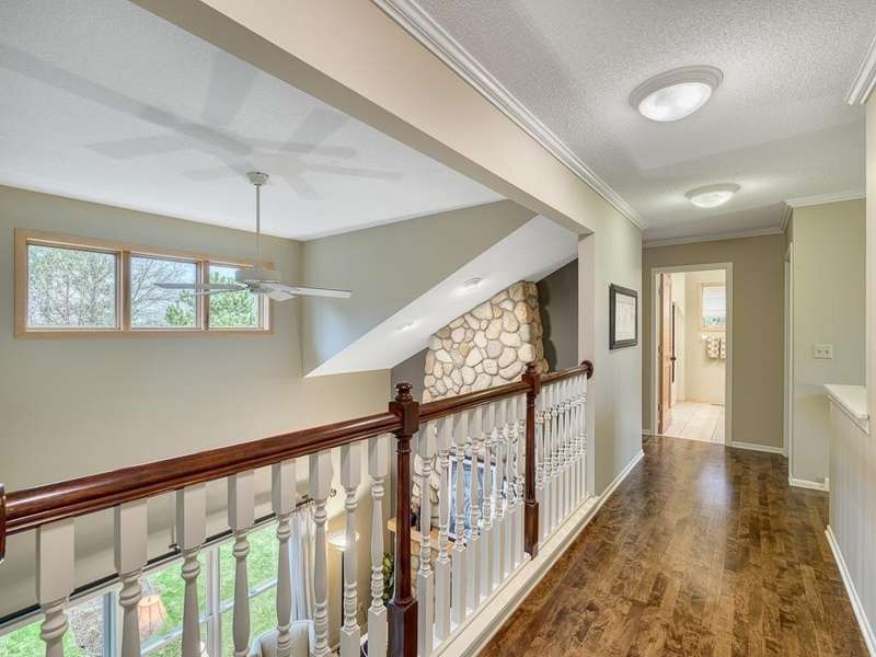 Welcome to the Meyers Pineridge development of Lake Elmo! There are 21 homes in this tranquil neighborhood, located only 20 minutes east of St. Paul. Each home sits on about an acre, offering ample space and privacy. The neighborhood also offers a trail system ideal for walking, jogging or biking. This fully-finished walkout 2-story home sits at the end of the street and is a former model. The acre lot is nicely landscaped with private views in front and in back. There are four bedrooms upstairs, a 5 th in the lower level and a main floor office space with French doors. The owners ensuite full bathroom has dual sinks, walk-in closet, a lovely spa soaking tub and separate shower. There is a gas stone 2-sided fireplace which is the focal point of the main floor and a 2nd gas stone fireplace in the lower level family room. You will love star gazing from the 3-season porch or den on the main floor as well! There is a large composite deck off the dining room which was recently replaced and the exterior was also recently painted. The updated eat-in kitchen has a breakfast bar, walk-in pantry, stainless appliances, lovely farmhouse sink and beautiful hardwood floors. One of the upstairs bedrooms is set up as a study room for the kids to work on homework or it could be another home office space. Family game or movie nights will definitely be in the lower level where you have space for just about anything!