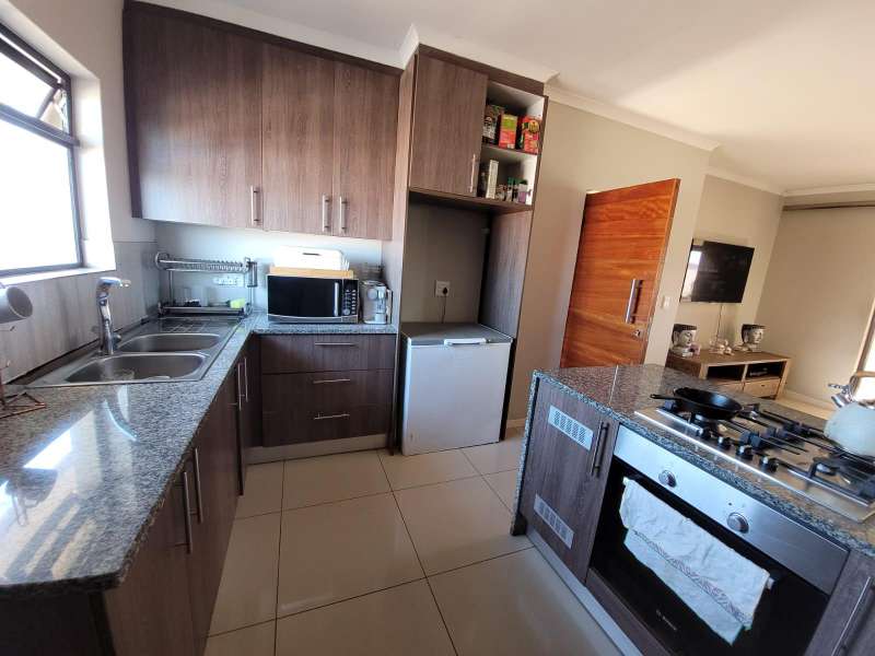 Be part of this quiet, secure Impangele Estate, conveniently situated you near the Beach, retail stores, private schooling, restaurants, and more! This family home offers 3 bedrooms, 2 bathrooms, shower en-suite, open plan lounge and modern fitted kitchen with granite tops, gas hob and with electric oven, pre paid meter. 3 bedrooms with built-in cupboards, 2 bathrooms, guest bathroom shower, master bedroom with plenty of build in cupboards and en-suite bathroom. Enclosed patio with a built in braai to enjoy entertaining friends and family. outside courtyard with water tank double garage with automotive door with a paved driveway. Security is of the highest priority in this 24 hour gated security estate, situated in the country, offering quietness and ambiance of both natural views and proximity to the ocean. Do contact me for an exclusive viewing.