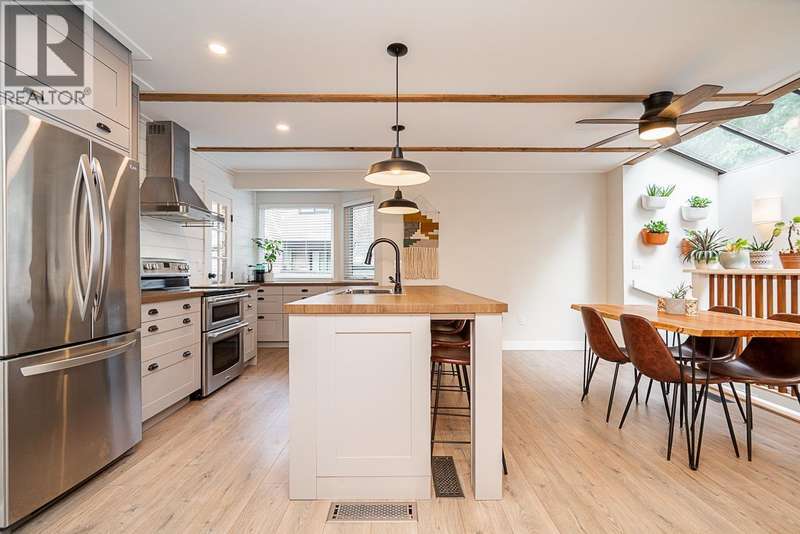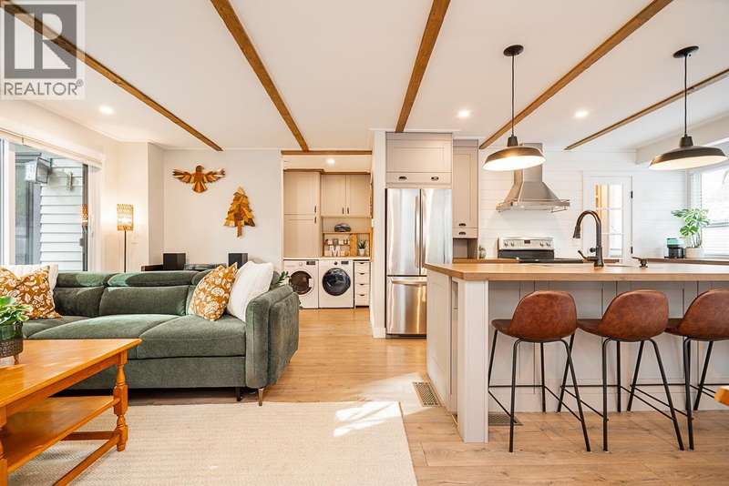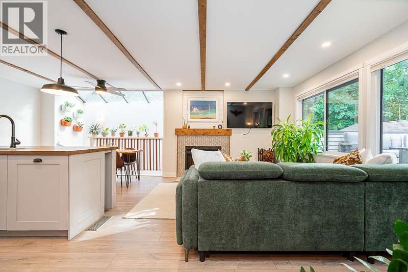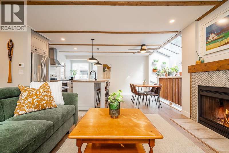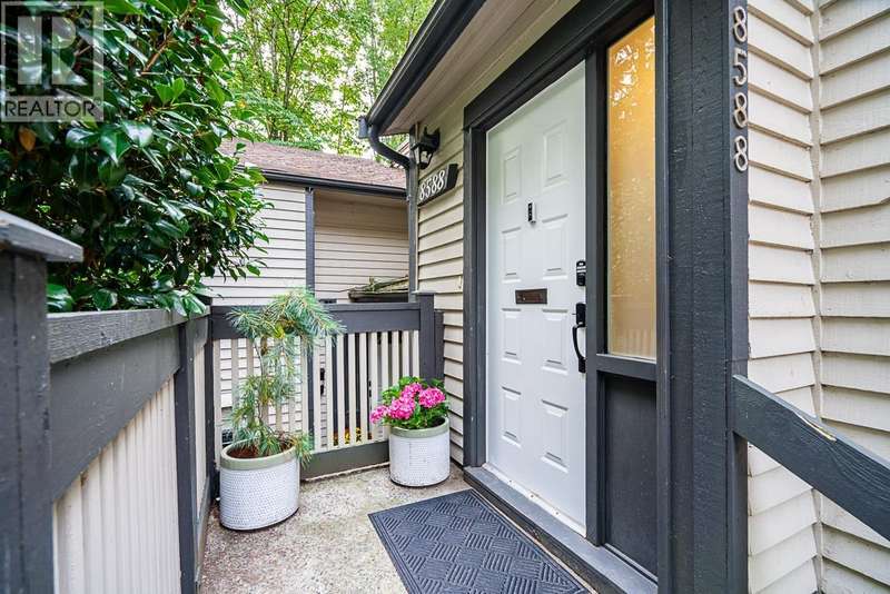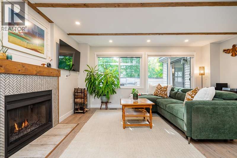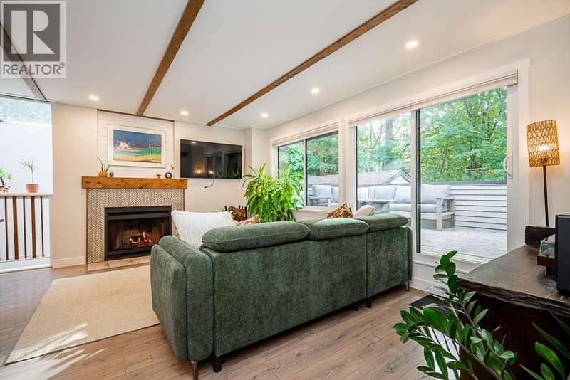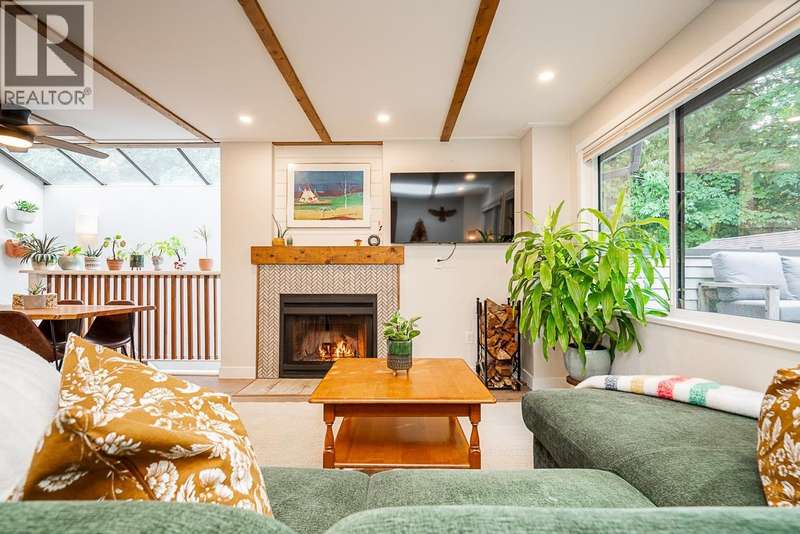 Your Trailside Sanctuary Awaits in Simon Fraser Village! Discover the perfect combination of mountain serenity and urban convenience in this single-level townhome. This beautiful, quiet end-unit property is your private retreat, featuring a large, South-facing deck overlooking a peaceful greenbelt-ideal for relaxing or entertaining in your own nature-filled escape. Inside, this bright and spacious 2-bedroom home is filled with natural light from a skylight and new, expansive windows and sliding doors throughout. The thoughtful, single-level layout is both functional and welcoming, with an open-concept living area that flows effortlessly to the outdoors. You'll appreciate the modern touches, including stainless steel appliances and a warm fireplace to cozy up to on winter nights. The community features a pool, sauna, and squash court. Enjoy an unbeatable location directly across from Forest Grove Elementary, surrounded by hiking trails, and moments from golf, SFU, shopping, and SkyTrain. Pets welcome! (id:58403)