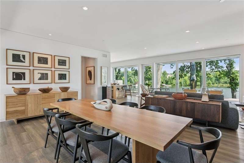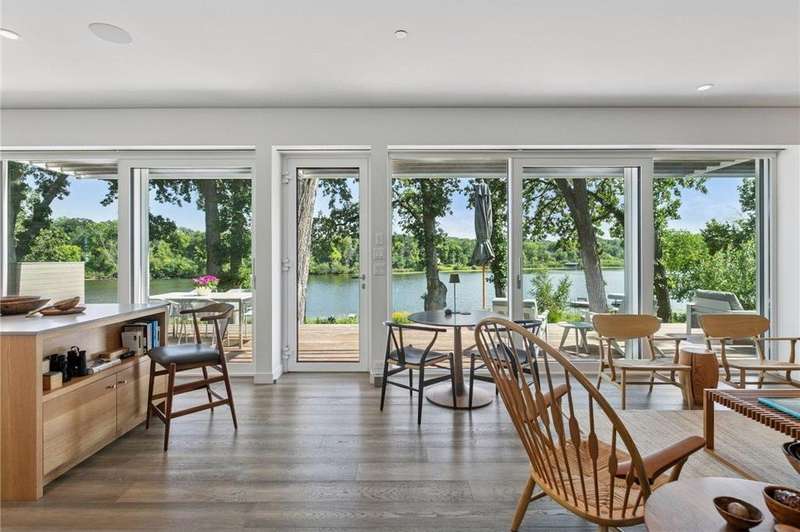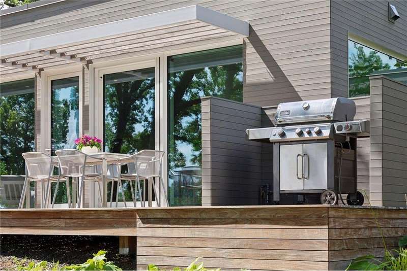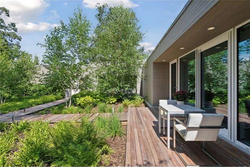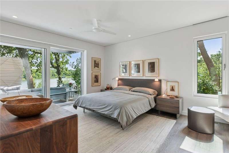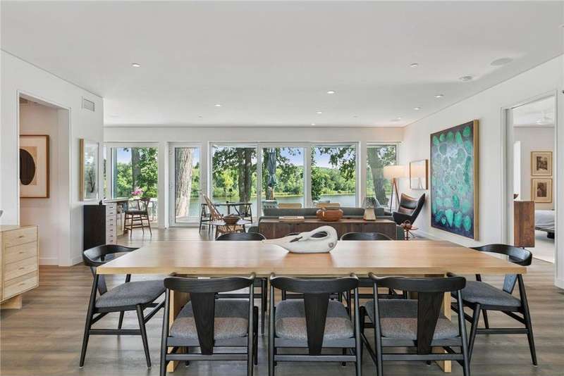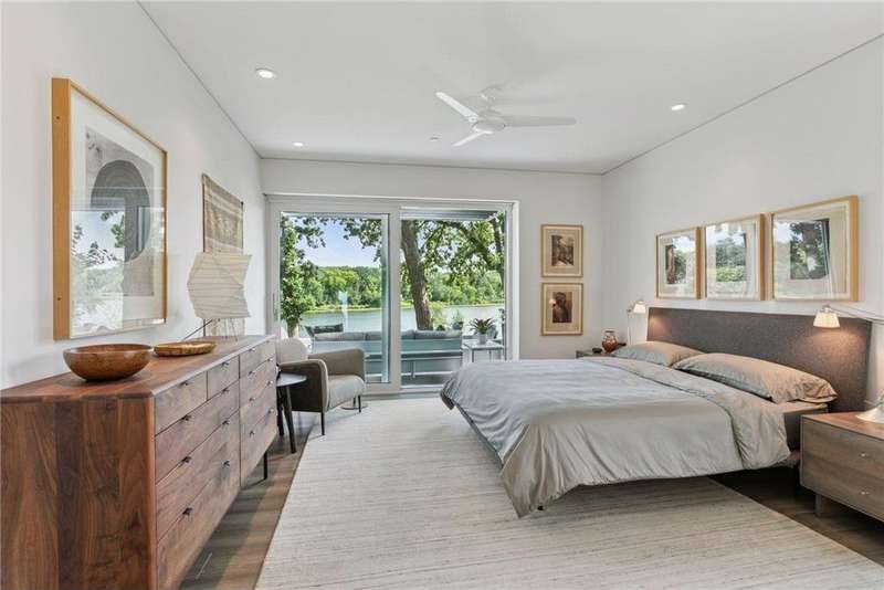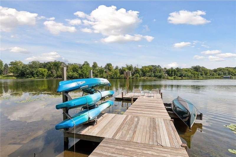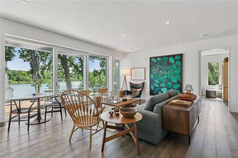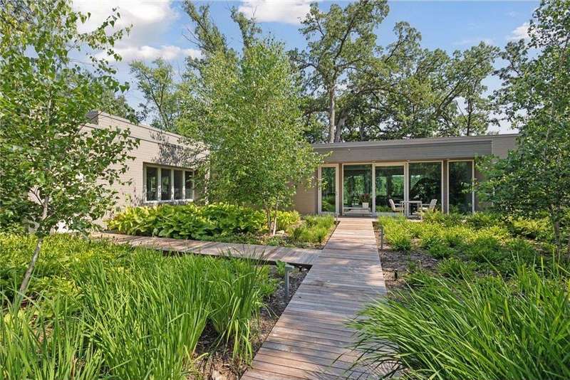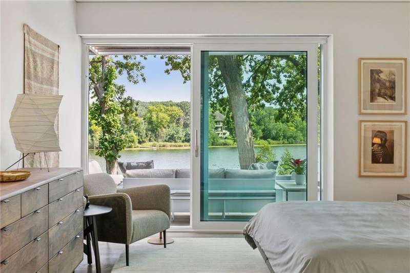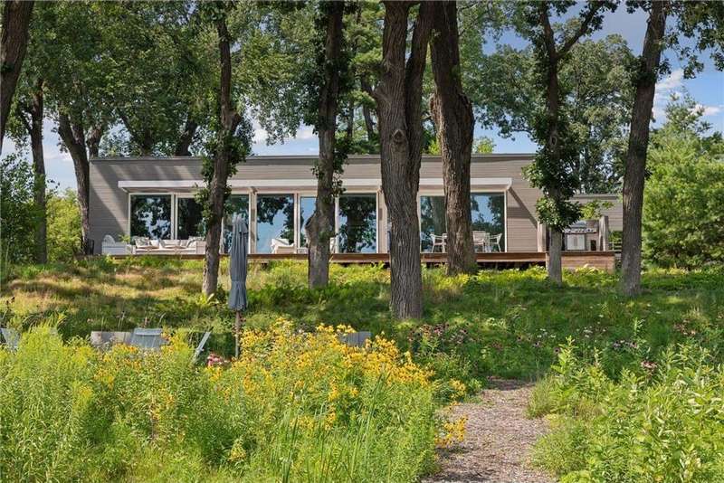 Paradise Found! Modern perfection on Sweeney Lake, exquisitely designed by Kampa Studio and meticulously executed by arguably the Twin Cities’ finest builder, Yerigan Construction. A private road provides access to this magical, 1.24-acre oasis, consisting entirely of blooming native prairie, majestic oaks, red and white pine, and birch. Perfectly sited with 200’ of pristine lakeshore, Sweeney offers full recreation, quiet solitude, and extraordinary wildlife viewing. Created by its owner as a personal getaway minutes from downtown, the energy-efficient residence is nearly self-sustaining and maintenance free. Multiple expansive decks, walkways and dock system are all ipe (ironwood). Full walls of glass, front and lakeside, are state-of-the-art, triple-pane, luxury sliding doors and windows by Yawal. The artful, open design offers sun-splashed nature and water views from every space. Lakeside custom kitchen - Wolf, Thermador, Miele – opens wide to outdoor dining and lake breezes under a canopy of oaks, as does the private owner’s suite. A long gallery with massive custom storage separates the primary living and guest quarters. Home features include wide-plank white oak floors and Lutron lighting throughout, one-touch fully concealed window shades, Toto and Newport Brass fixtures, interior sprinkler system, electric heat pumps for heating and cooling with large capacity solar storage, Rockwool and spray-foam insulation, reverse osmosis drinking system and full irrigation from the lake. An oversized garage, insulated and heated, sports a workshop area and storage. Enjoy four seasons of beauty and privacy; hike or snow ski the lake in winter directly into Wirth Park; boat or paddle board on glassy mornings and moonlit evenings; enjoy fine restaurants and sporting events minutes away or simply dine in with nature. There is nothing like this in the Twin Cities – a personal lifestyle unmatched.