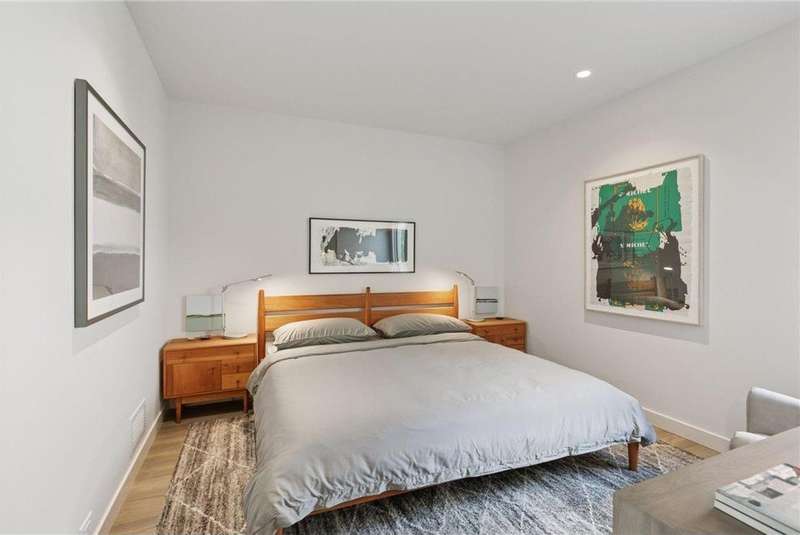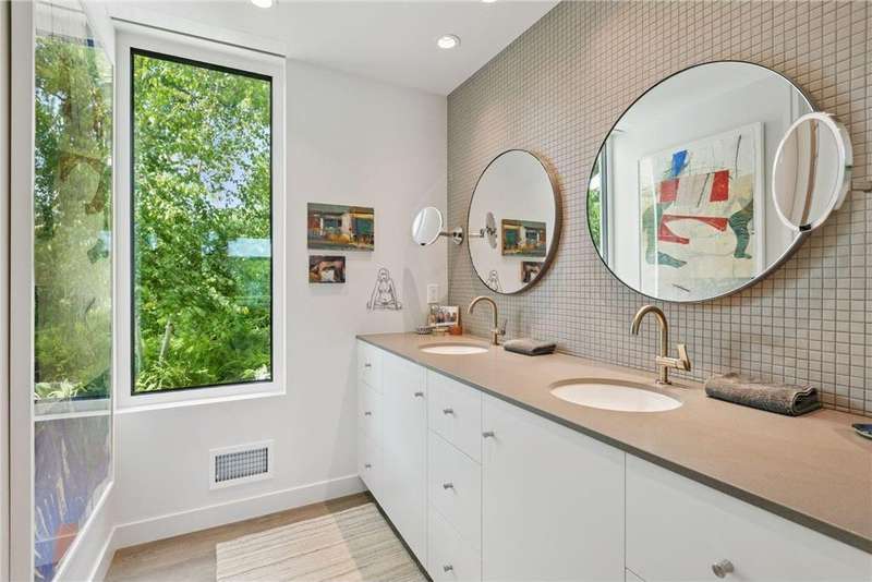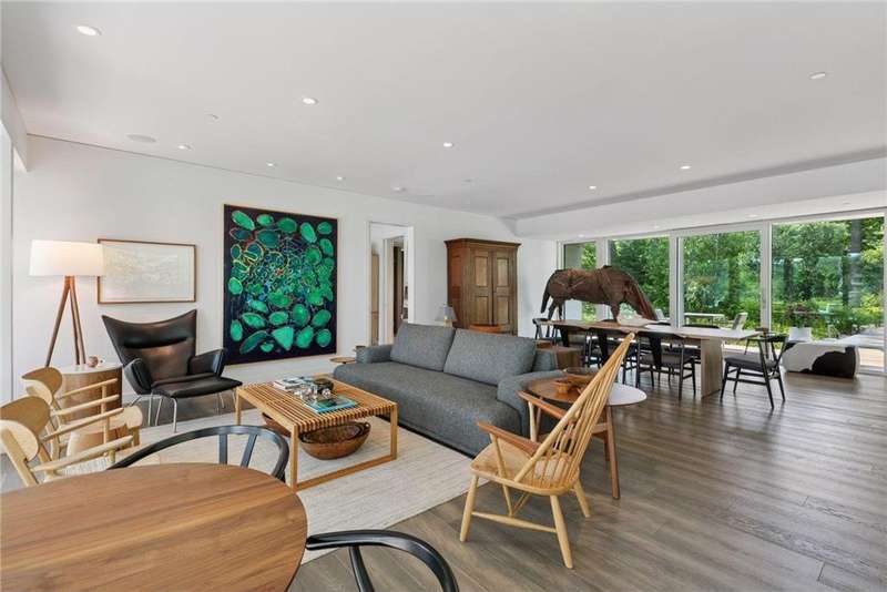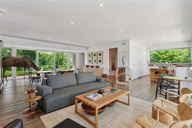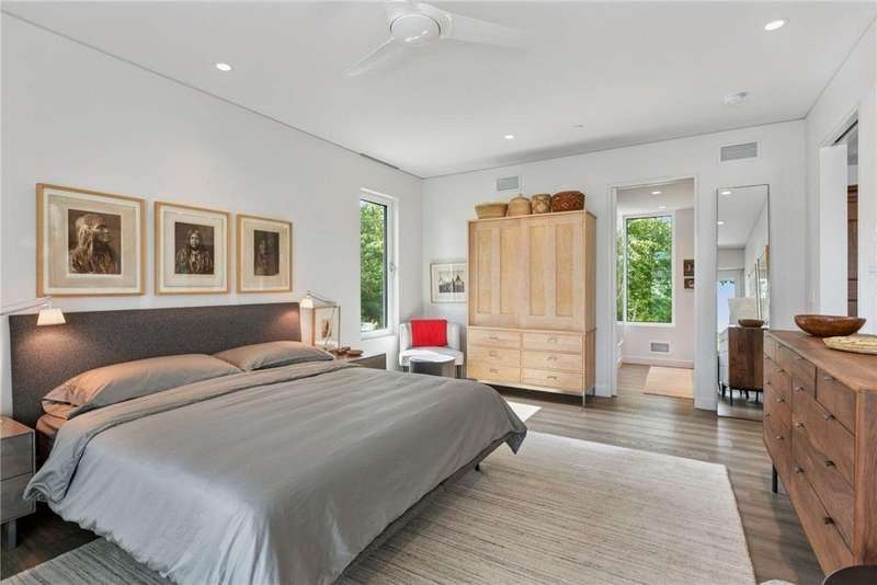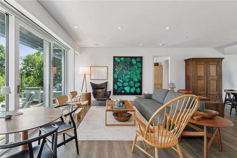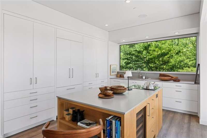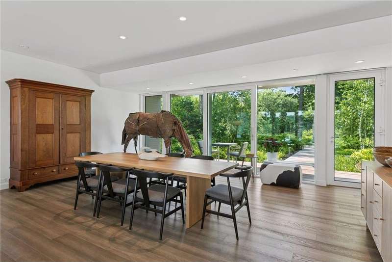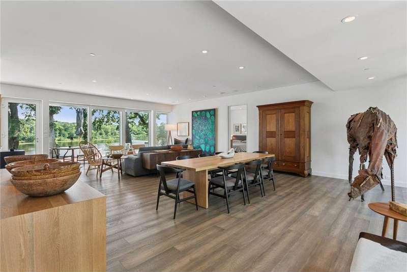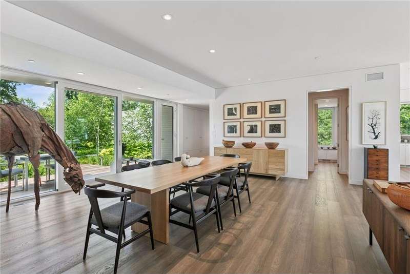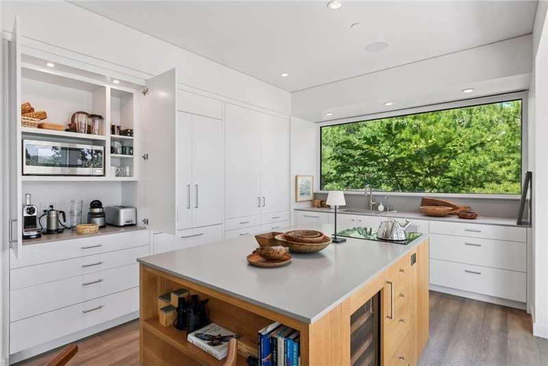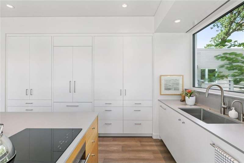 Paradise Found! Modern perfection on Sweeney Lake, exquisitely designed by Kampa Studio and meticulously executed by arguably the Twin Cities’ finest builder, Yerigan Construction. A private road provides access to this magical, 1.24-acre oasis, consisting entirely of blooming native prairie, majestic oaks, red and white pine, and birch. Perfectly sited with 200’ of pristine lakeshore, Sweeney offers full recreation, quiet solitude, and extraordinary wildlife viewing. Created by its owner as a personal getaway minutes from downtown, the energy-efficient residence is nearly self-sustaining and maintenance free. Multiple expansive decks, walkways and dock system are all ipe (ironwood). Full walls of glass, front and lakeside, are state-of-the-art, triple-pane, luxury sliding doors and windows by Yawal. The artful, open design offers sun-splashed nature and water views from every space. Lakeside custom kitchen - Wolf, Thermador, Miele – opens wide to outdoor dining and lake breezes under a canopy of oaks, as does the private owner’s suite. A long gallery with massive custom storage separates the primary living and guest quarters. Home features include wide-plank white oak floors and Lutron lighting throughout, one-touch fully concealed window shades, Toto and Newport Brass fixtures, interior sprinkler system, electric heat pumps for heating and cooling with large capacity solar storage, Rockwool and spray-foam insulation, reverse osmosis drinking system and full irrigation from the lake. An oversized garage, insulated and heated, sports a workshop area and storage. Enjoy four seasons of beauty and privacy; hike or snow ski the lake in winter directly into Wirth Park; boat or paddle board on glassy mornings and moonlit evenings; enjoy fine restaurants and sporting events minutes away or simply dine in with nature. There is nothing like this in the Twin Cities – a personal lifestyle unmatched.