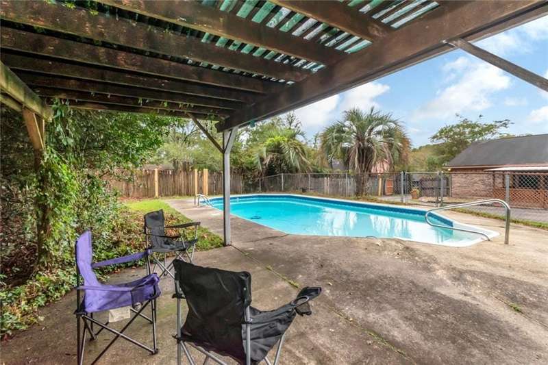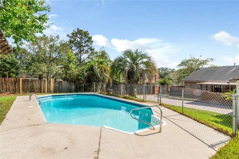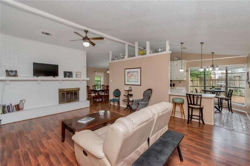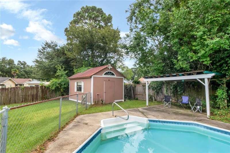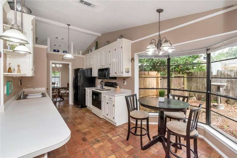 Cul-de-Sac Home with Pool & Pool House in Highly Sought-After Location! Situated on a quiet cul-de-sac in one of the areas most desirable neighborhoods, this 4-bedroom, 2-bathroom home offers 1,800 sq. ft. of thoughtfully designed living space. Step inside to an open-concept kitchen, great room, and dining areaperfect for both everyday living and entertaining. The main living space features raised ceilings, creating a warm, inviting atmosphere. Durable laminate flooring flows throughout, complemented by brick accents in the foyer and kitchen, and ceramic tile in the bathrooms. The bedrooms are generously sized, giving everyone their own space, and the primary suite is a relaxing hideaway after a busy day. Out back, a privacy fence surrounds your own outdoor retreatcomplete with a sparkling in-ground pool and a dedicated pool house, ideal for enjoying the warm Southern days. Located close to shopping, dining, parks, and everyday conveniences, this home combines comfort, style, and a prime location. Book your private showing today. All appliances stay. HVAC 6/2019. Gas water heater 2024. Washer & Dryer 2023. 2 Bathrooms updated 2022. Pool sand filter & chlorine tab feeder 2023. Pool pump 2024, liner 5 years +/-.