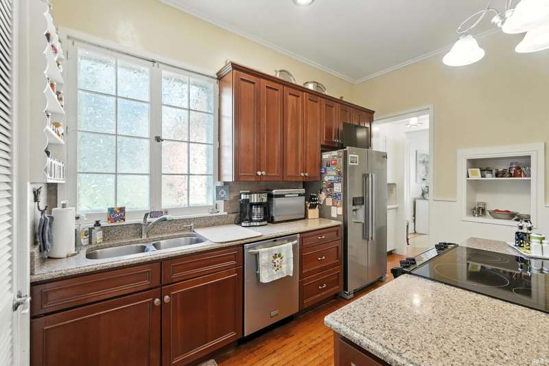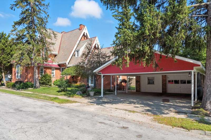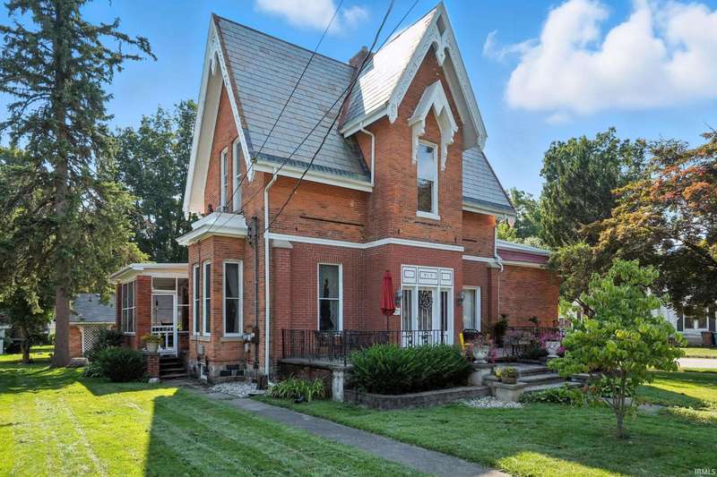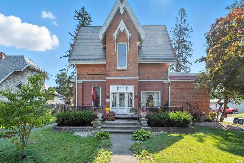 Step into a piece of Angola’s history with this stunning Victorian Gothic Revival masterpiece, known as the Carver House, once home to the city’s first mayor. Built in 1880, this architectural gem seamlessly blends historic charm with modern comforts. Boasting five spacious bedrooms and two and a half beautifully updated baths, the home features a luxurious main-level master suite complete with dual sinks for added convenience. The elegant dining room flows into a thoughtfully designed kitchen showcasing custom cabinetry, granite countertops, a large island with seating, and detailed crown molding throughout, perfect for both everyday living and entertaining. Multiple covered porches and charming sitting areas provide ideal spaces to relax and enjoy the meticulously landscaped grounds. A highlight of the property is the attached in-law suite, offering a private one-bedroom layout with its own full kitchen and great room, along with direct access to the one-car garage, perfect for guests, extended family, or rental potential. Rich in history and loaded with character, this one-of-a-kind home is a rare opportunity to own a true landmark in the heart of Angola.