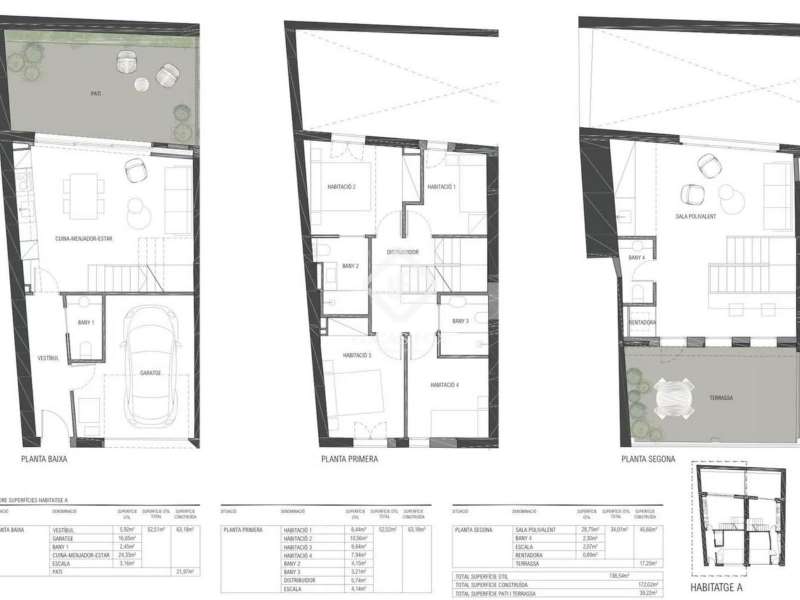 Discover this cosy, modern townhouse set in the heart of L'Escala's charming old town. This newly developed property is just a five-minute stroll (300m) from the town’s beach, surrounded by local restaurants and essential services, offering the perfect blend of convenience and coastal living. The townhouse has been thoughtfully designed with comfort in mind, and spans three floors. On the ground floor, you'll find a bright open-plan living and dining area, a fully-equipped kitchen and direct access to a spacious patio—ideal for outdoor dining and relaxation. This floor also includes a private garage with space for one car and a convenient guest toilet. The first floor is home to a generous area featuring four bedrooms. The main bedroom boasts an en-suite bathroom, while the other three bedrooms share a strategically laid out bathroom. The top floor offers a versatile multifunctional room, perfect for use as a TV room, office or additional bedroom. This floor also includes a large terrace, providing a wonderful outdoor space and a practical second guest toilet. Designed for year-round comfort, this modern townhouse includes all the facilities needed for an enchanting living experience through every season. Private parking and a prime location make this property an exceptional opportunity in L'Escala.